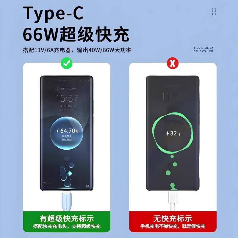 液态硅胶快充数据线适用华为充电线带灯闪充type-c手机充电器线充电线快充线 1米神秘紫TYPEC口