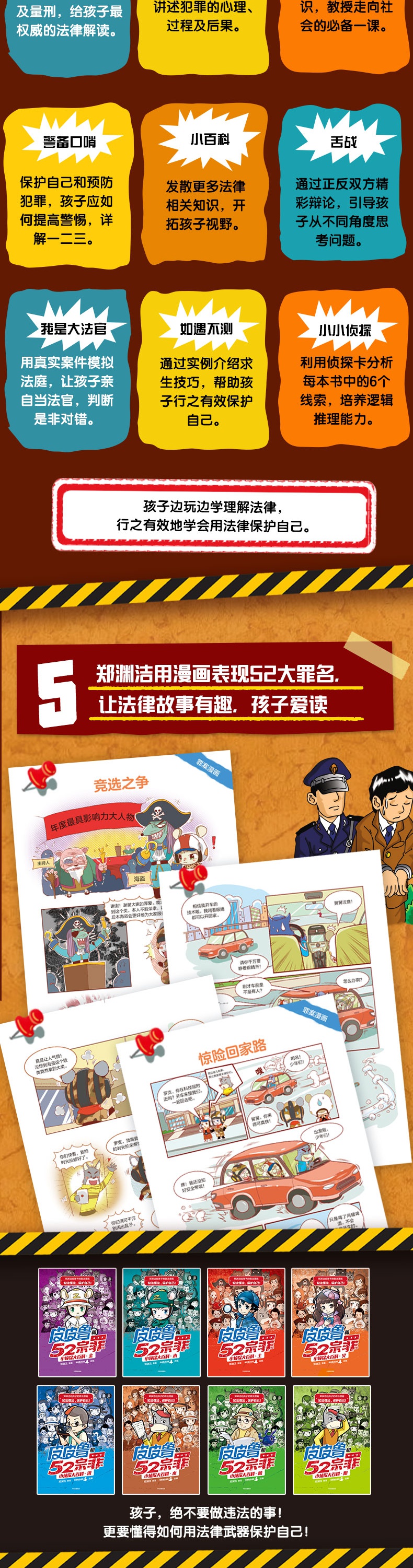 郑渊洁给孩子的普法漫画系列 皮皮鲁和52宗罪小侦探大百科·金 郑渊洁著 6-12岁 儿童科普 中信出版社图书