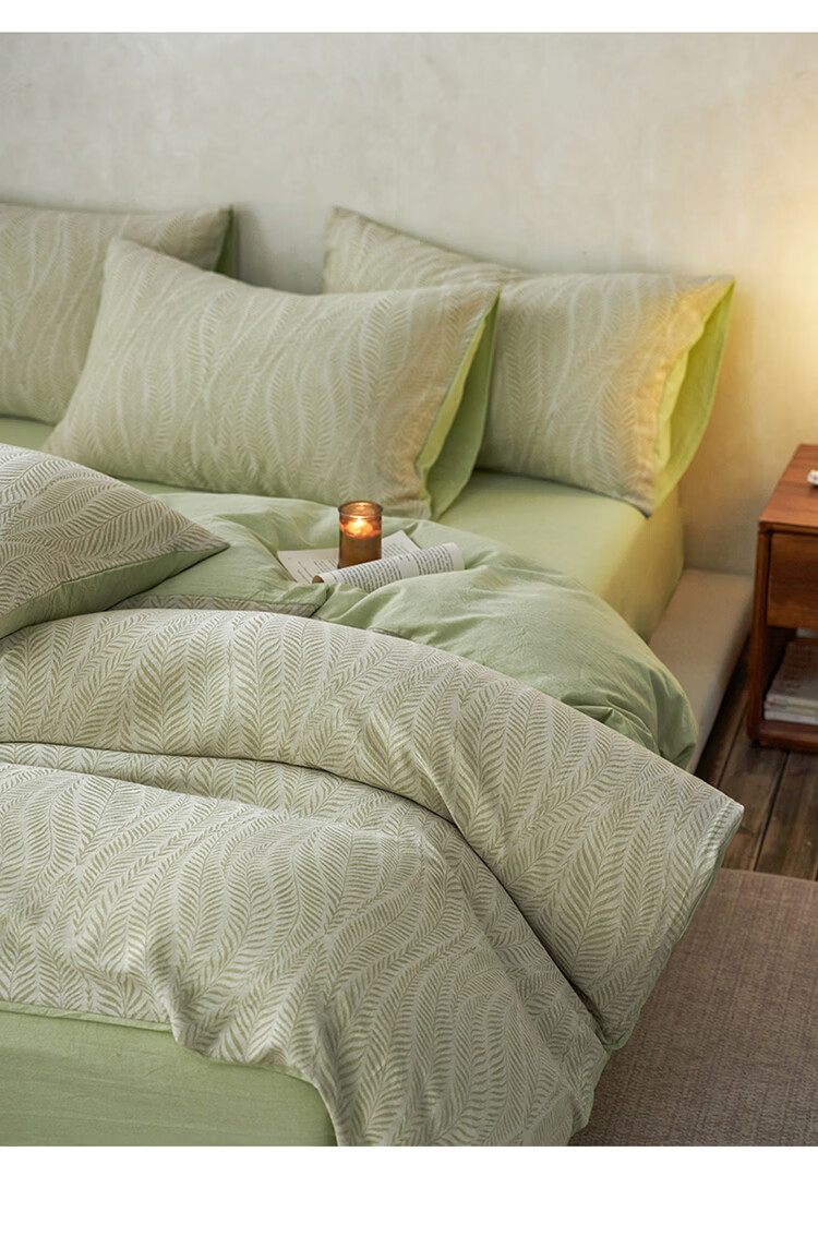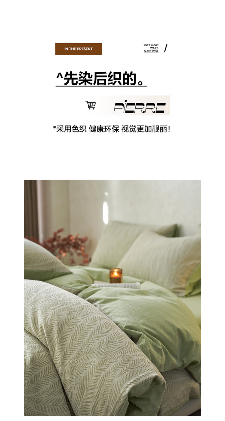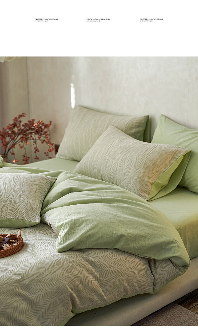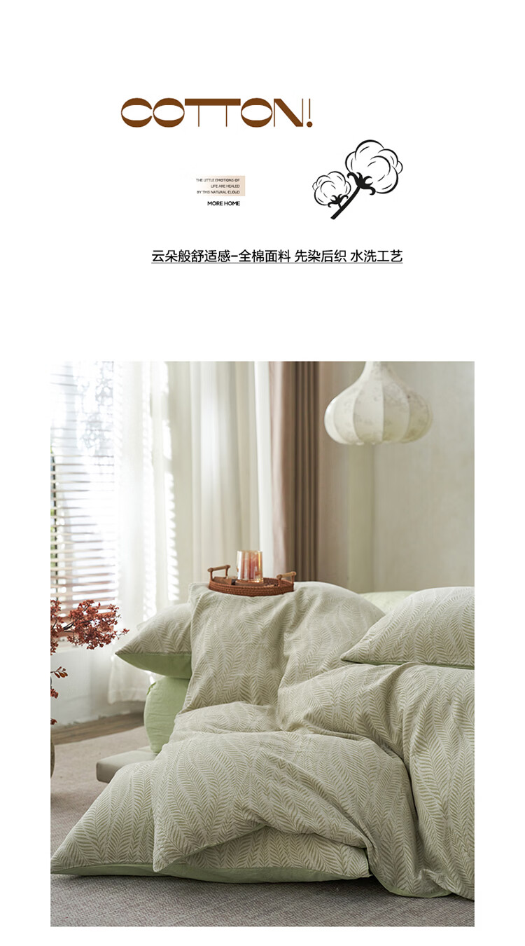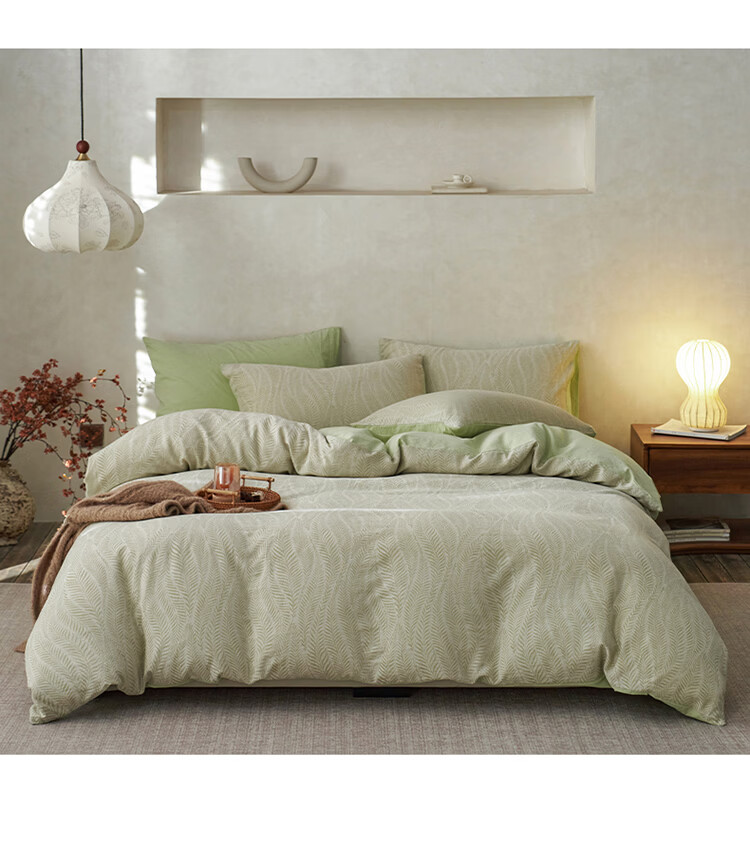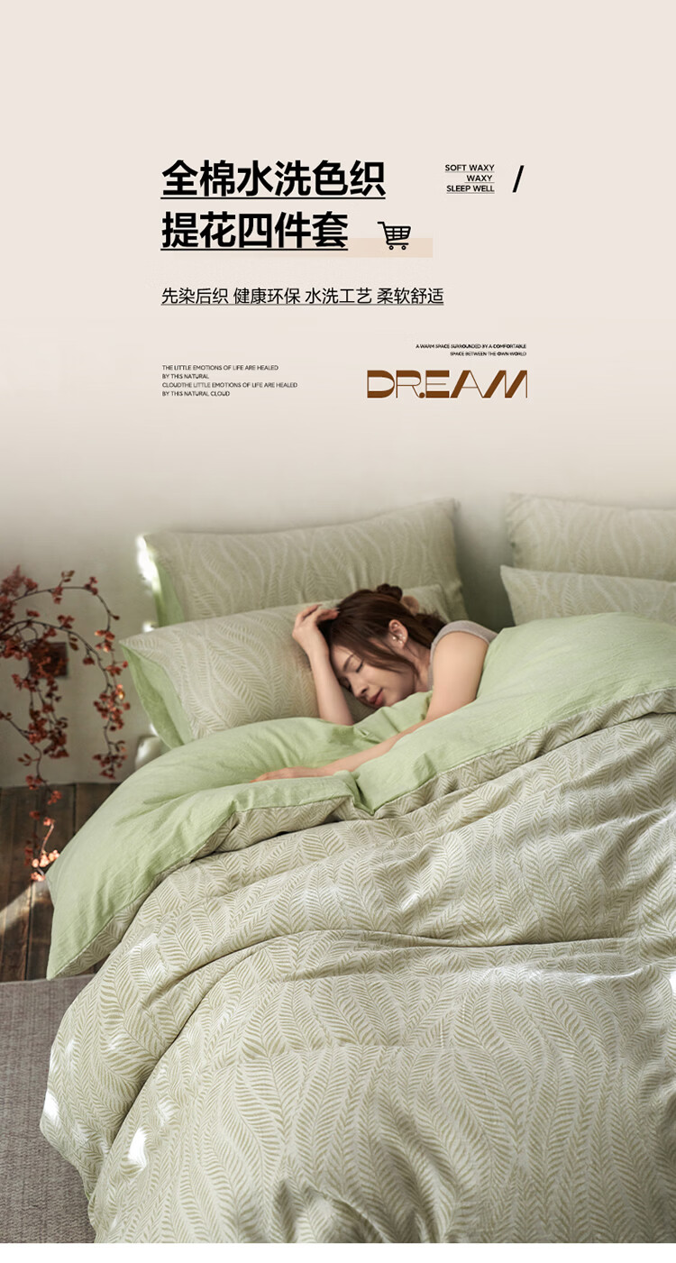 无印良品全棉四件套纯棉床单被套家用床笠被罩宿舍单人裸睡三件套床上用品 兰序-绿【全棉色织 舒适亲肤】 2.0m 床单款 四件套-被套220x240cm