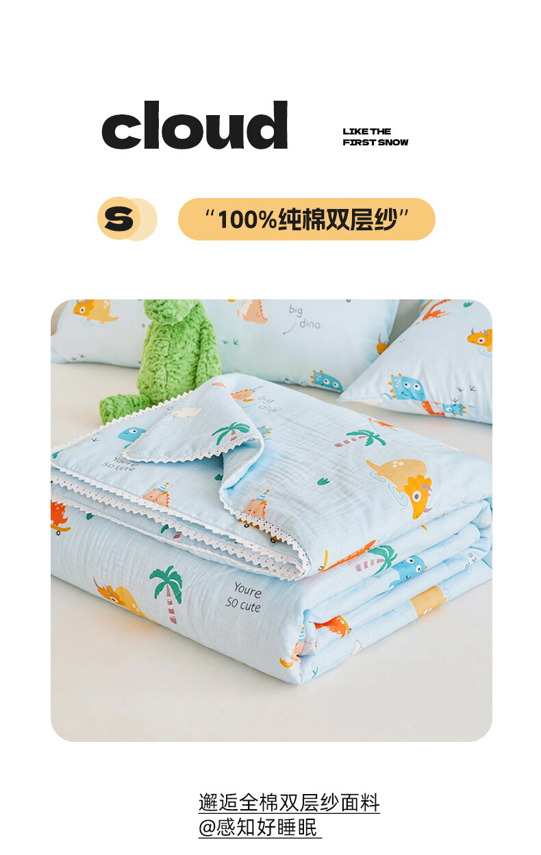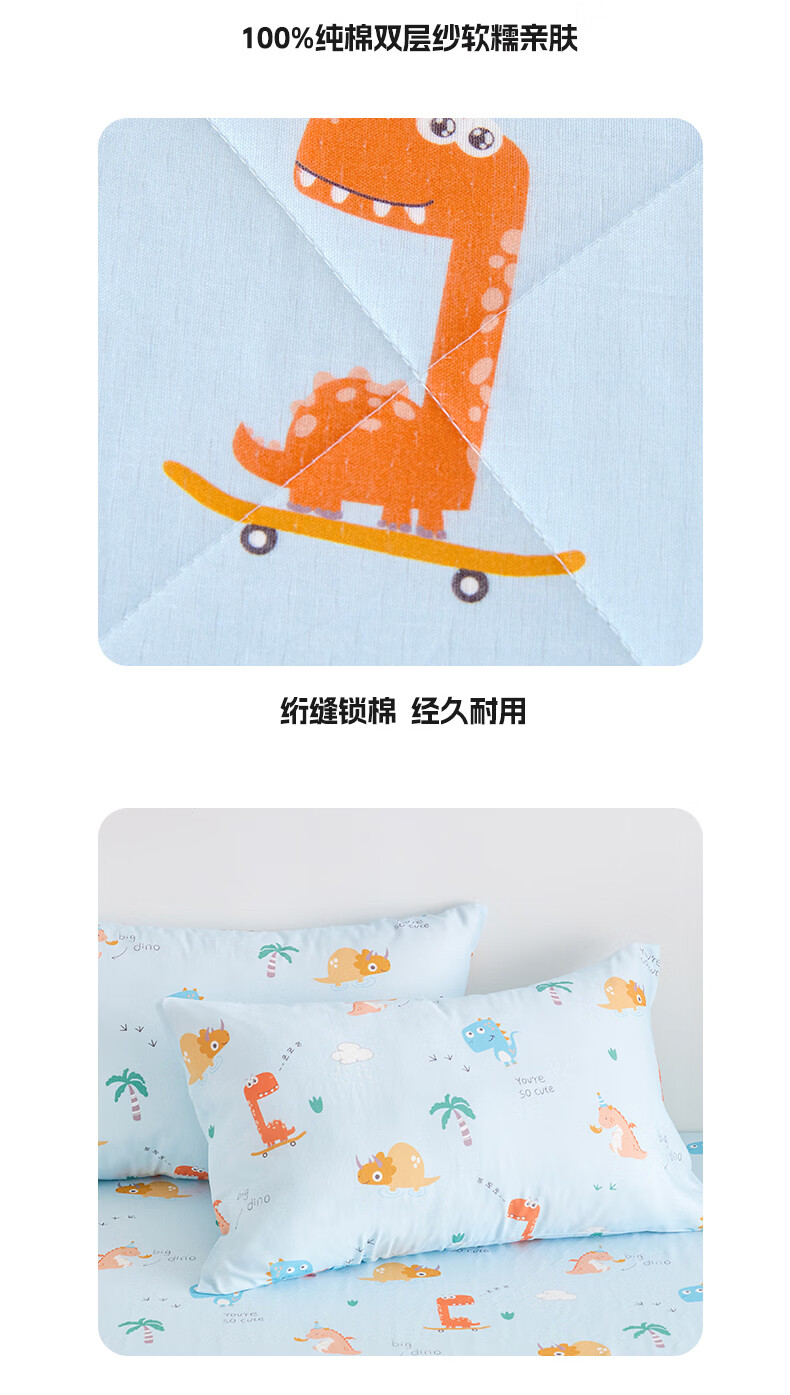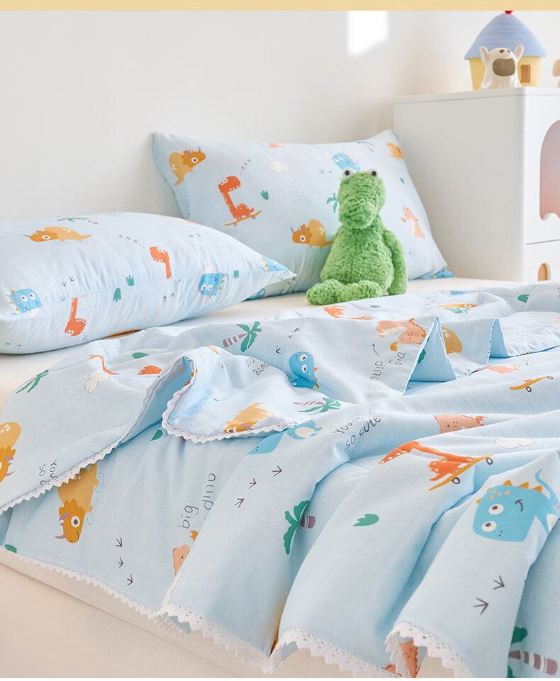 云瑾A类双层纱纯棉夏凉被空调被全棉夏季薄被子儿童空调棉被芯 汽车狗蓝 110*150cm儿童被(A类亲肤 里外全棉)