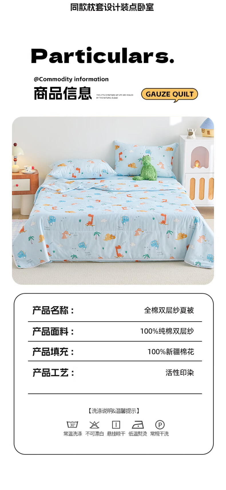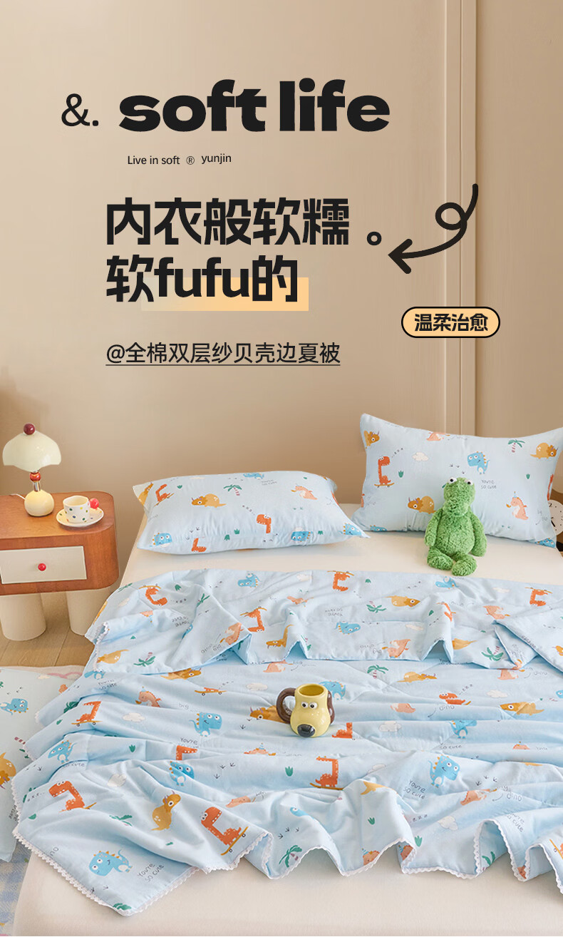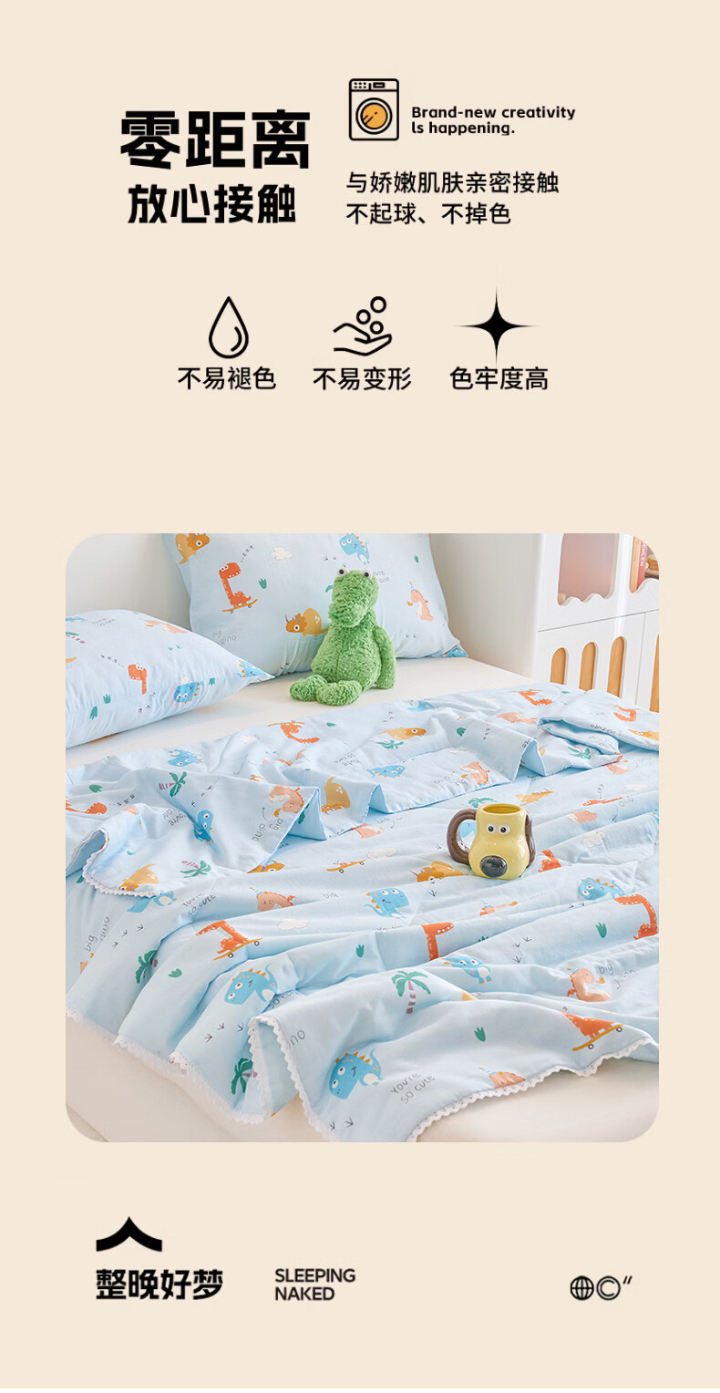 云瑾A类双层纱纯棉夏凉被空调被全棉夏季薄被子儿童空调棉被芯 汽车狗蓝 110*150cm儿童被(A类亲肤 里外全棉)