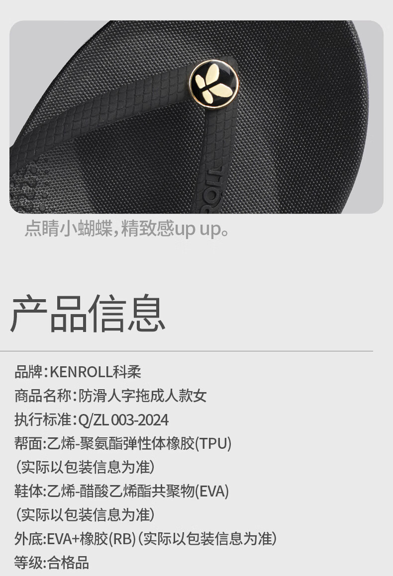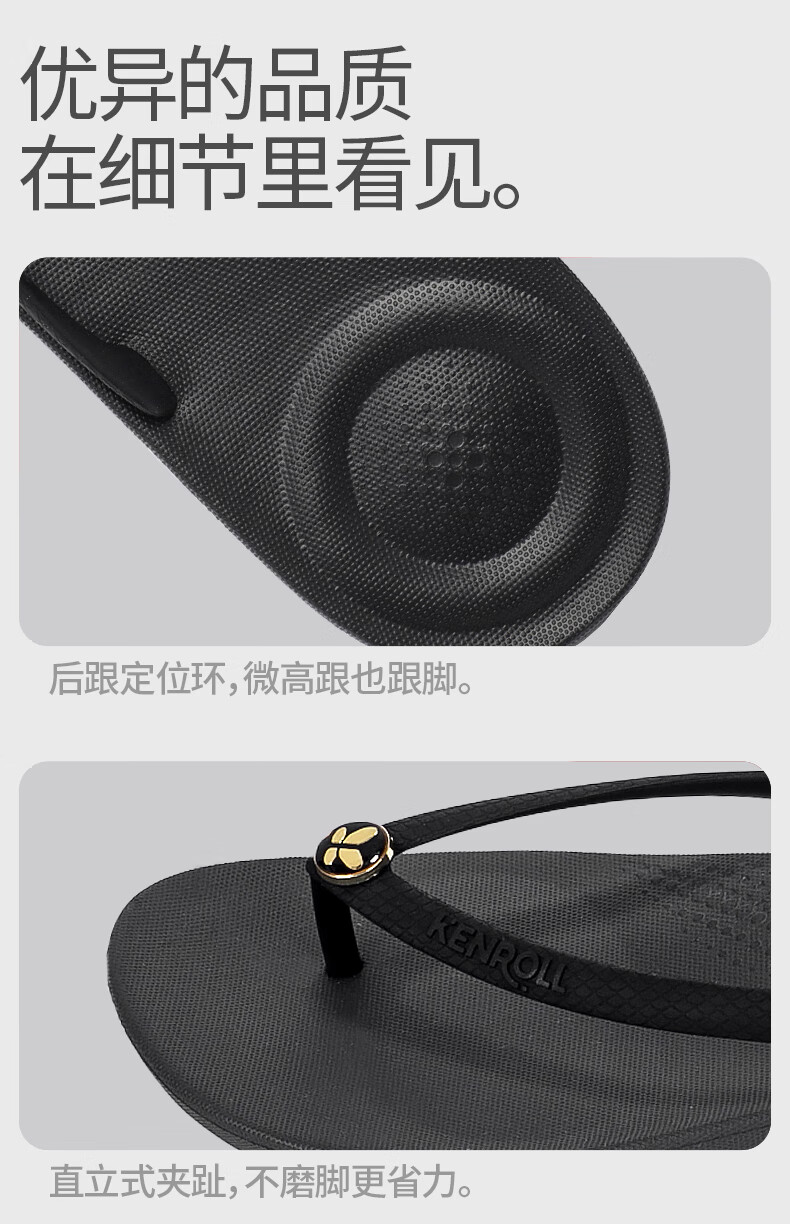 科柔KENROLL人字拖鞋女士时尚轻便室外居家软底沙滩凉拖鞋 黑色 35-36 (230mm)