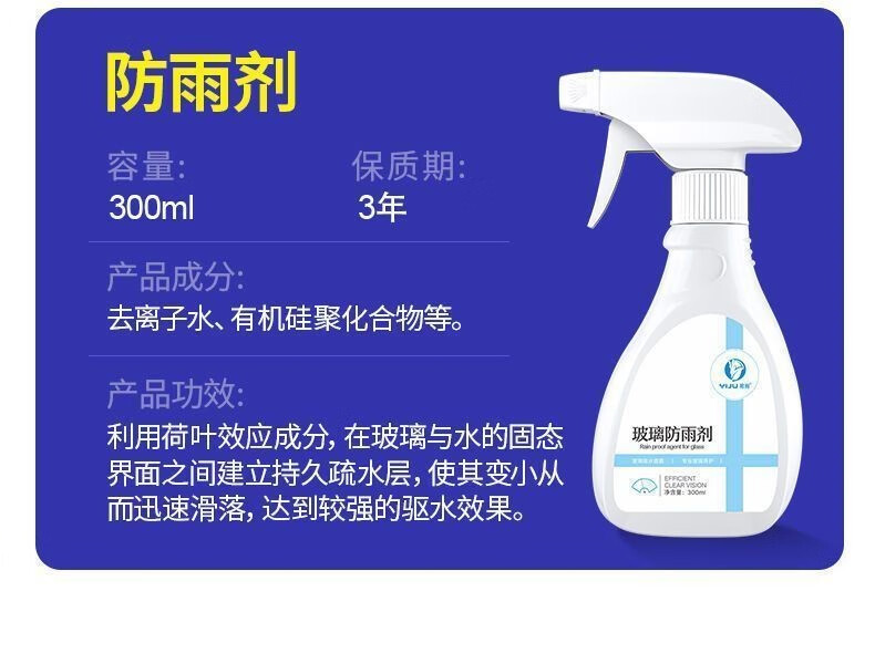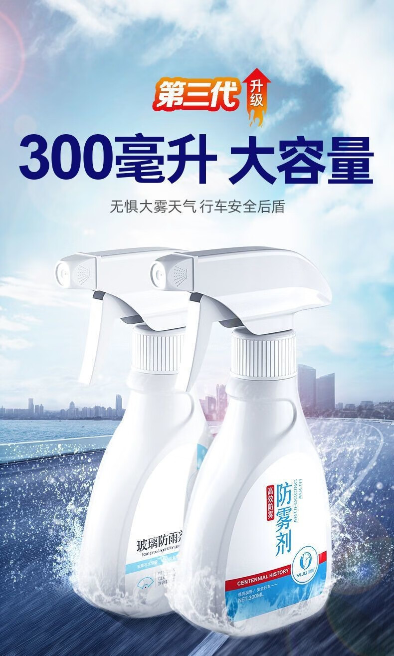 防雾剂汽车挡风玻璃车内车窗除雾神器后视镜防雨剂驱水剂防水喷雾 玻璃防雨剂 300ml 1瓶