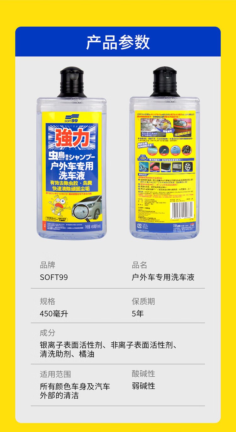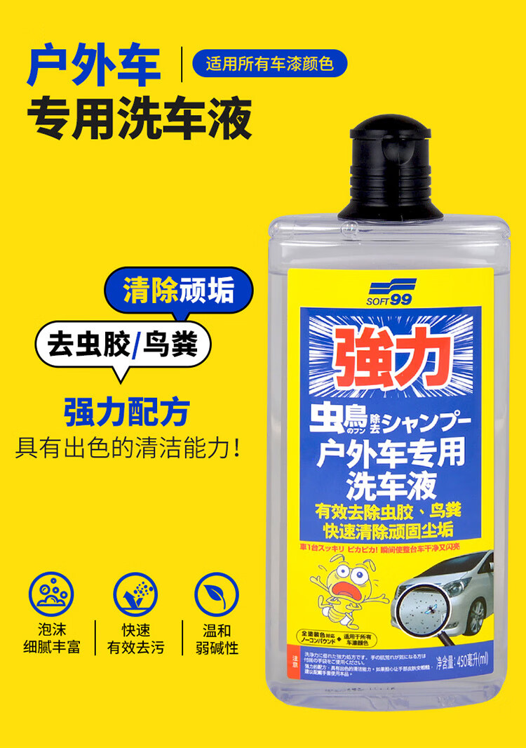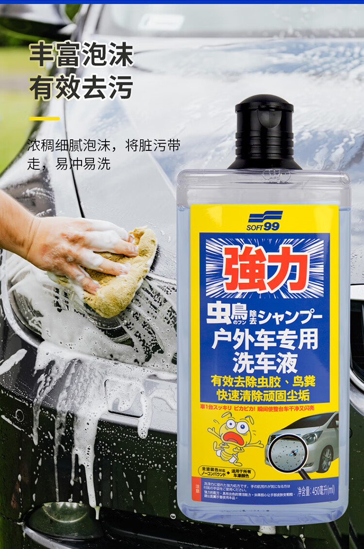 SOFT99户外停车专用洗车液浓缩洗车水蜡洗车泡沫清洗剂去虫胶鸟粪清洁剂 橘味 450ml 2瓶