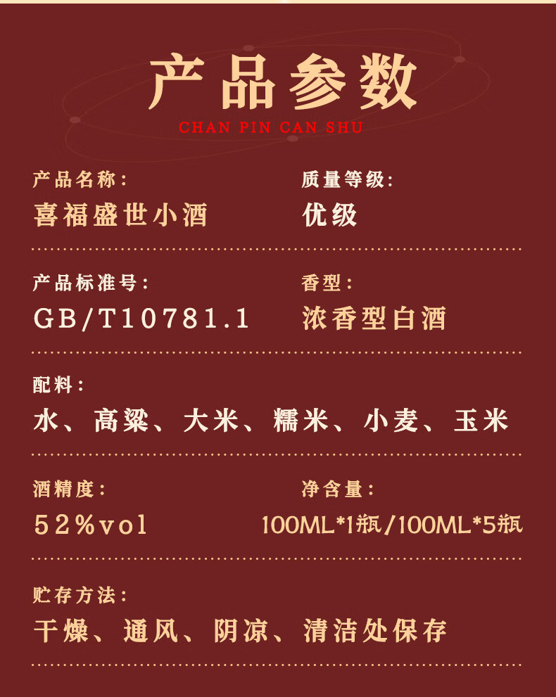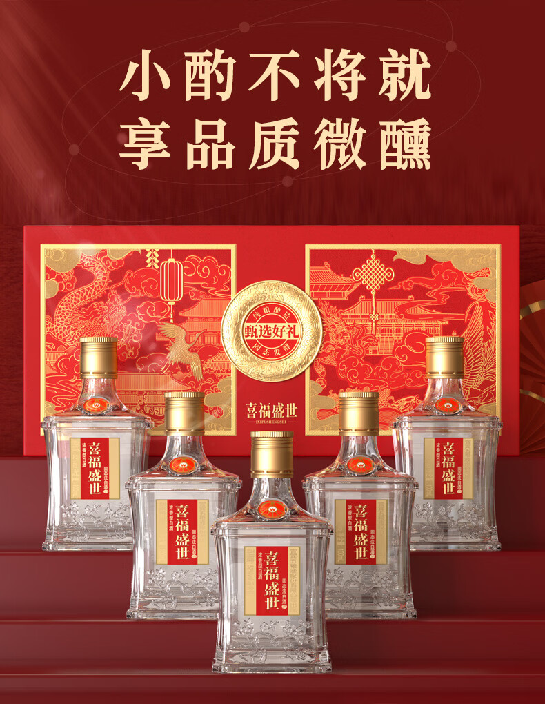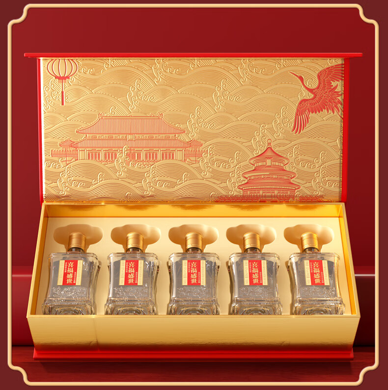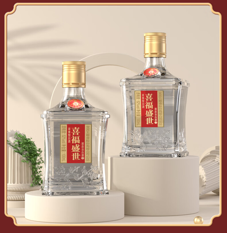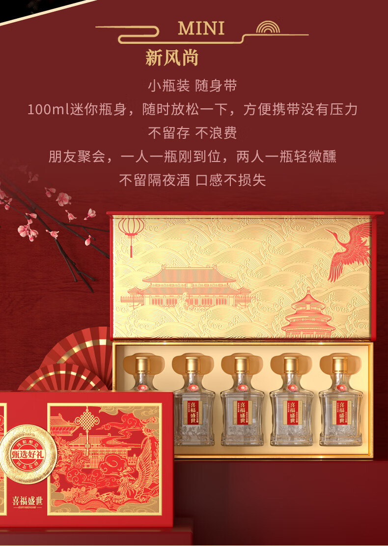 五粮浓香宜宾五粮液股份出品喜福盛世52度100ml浓香型白酒口粮小酒年货 52度 100mL 1瓶