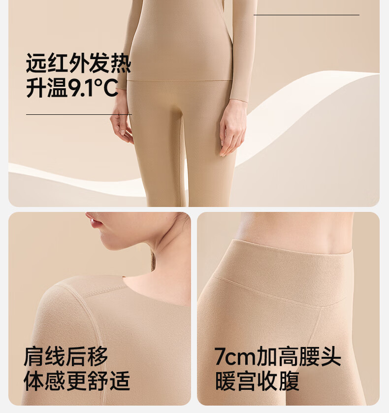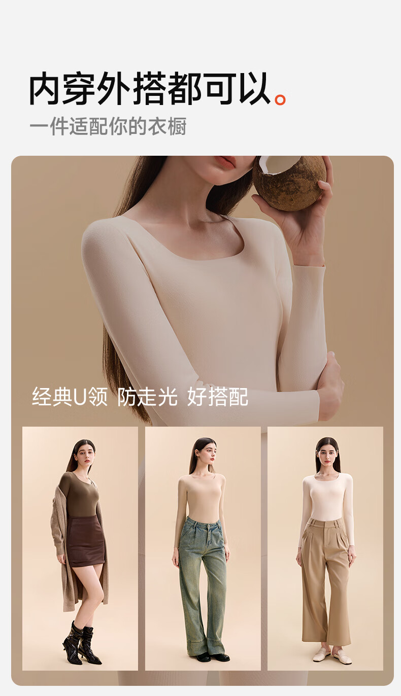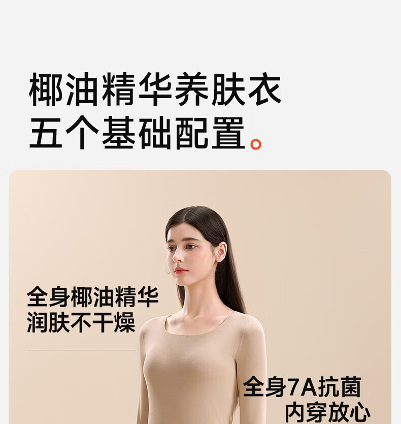 欧迪芬保暖内衣女阳离子椰油润肤轻暖无痕7A抑菌抗静电美体秋衣裤套装 裸肌肤【椰油润肤/可发热】 XL