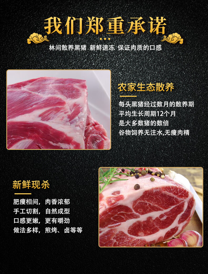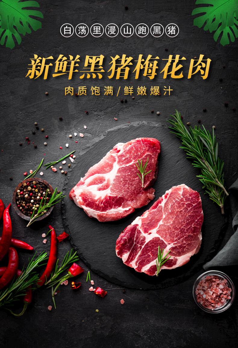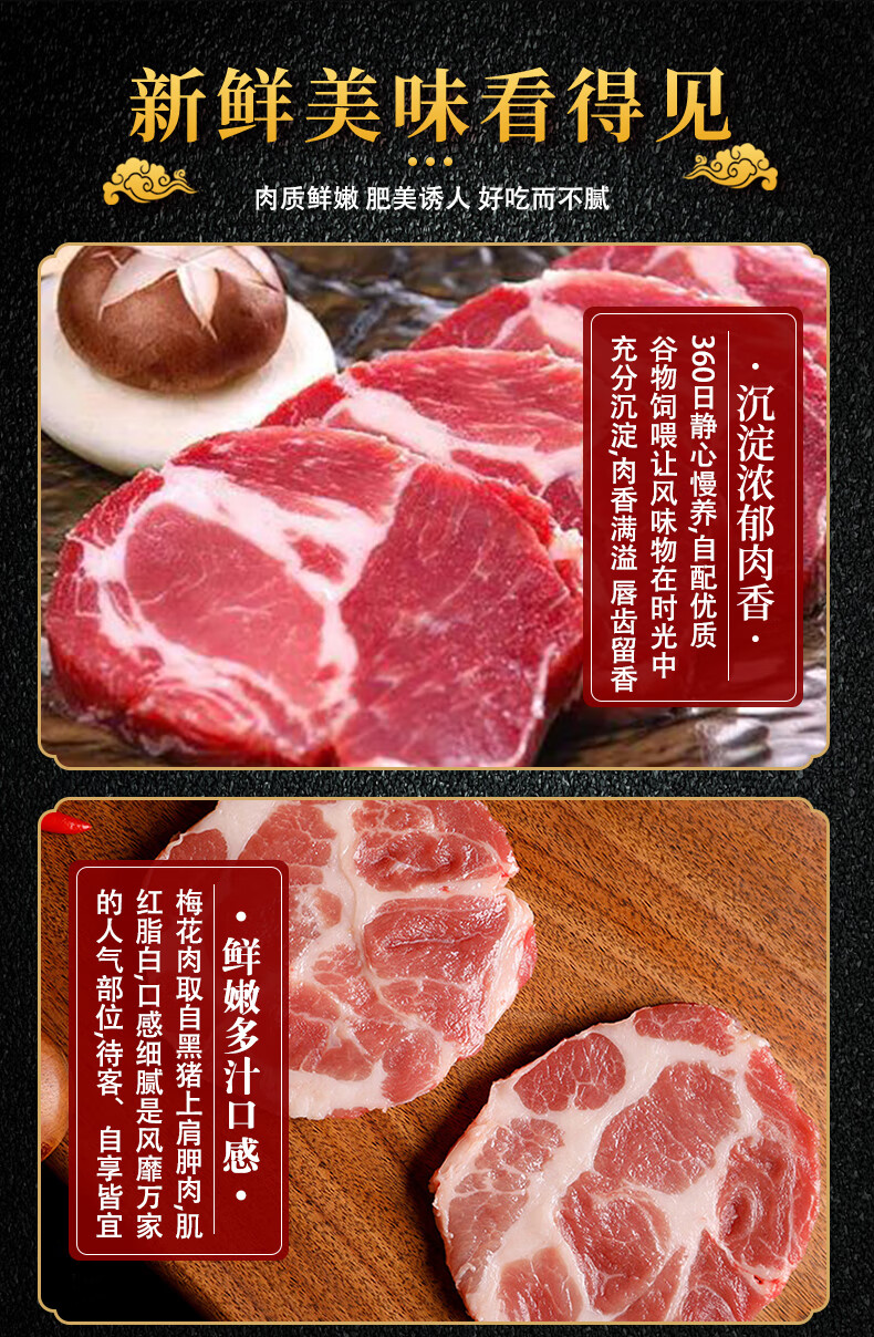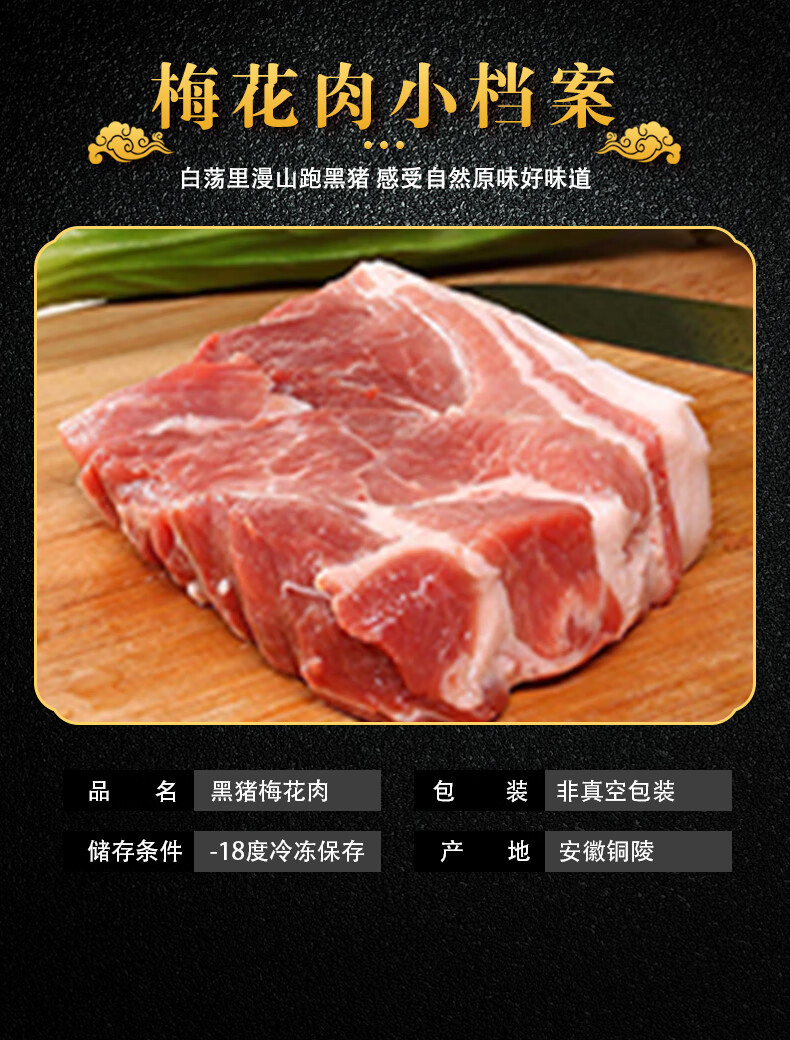 白荡里黑猪梅花肉 冷冻猪颈肉梅条肉烧烤火锅猪肉生鲜 梅花肉4斤