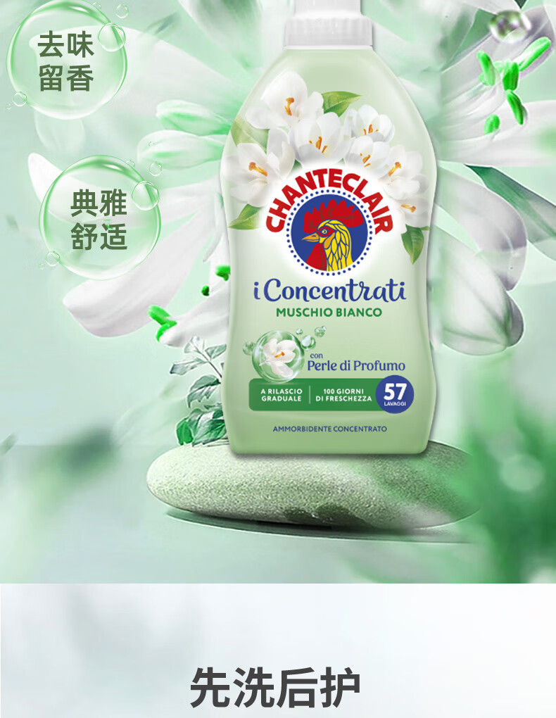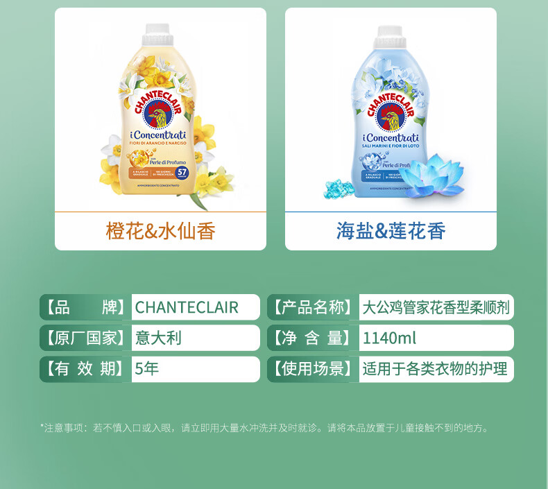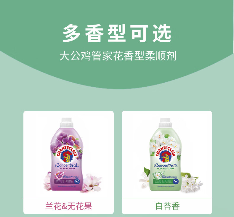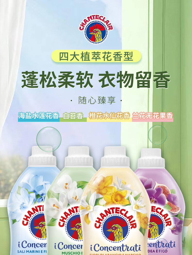 大公鸡管家(CHANTE CLAIR)意大利进口 进口衣物柔顺剂护理剂 衣物蓬松柔软留香 护衣护型 兰花无花果香柔顺剂1140ml