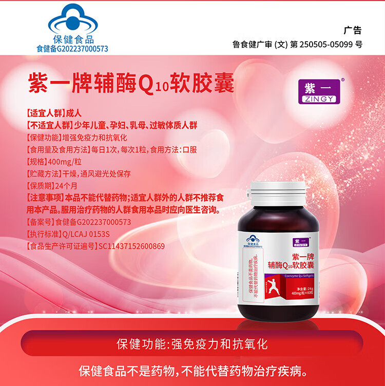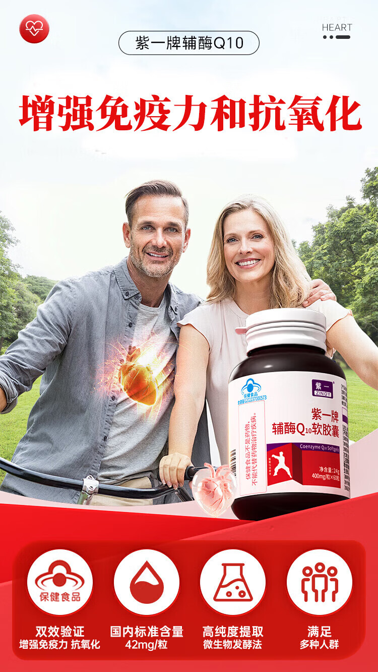 紫一辅酶Q10软胶囊辅酶心脏中老年人增强免疫力含维生素c维生素e 【98.5%高含量辅酶】 30粒*1盒