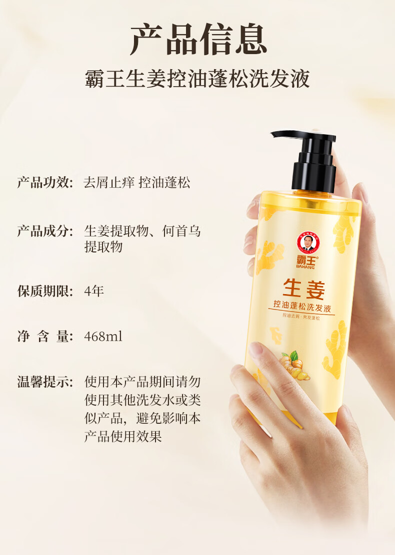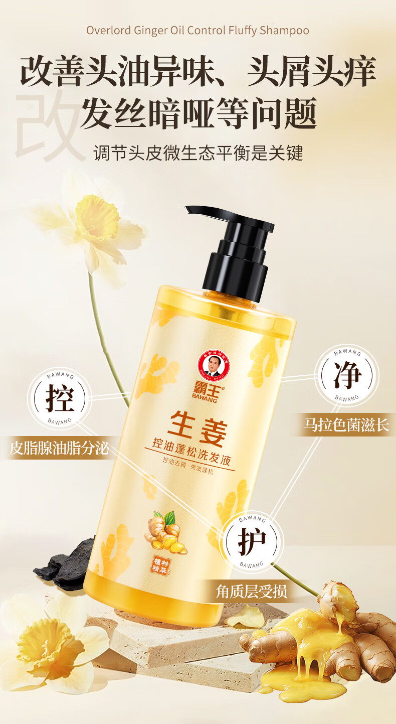 霸王洗发水生姜控油蓬松洗发露去屑止痒洗头膏男女士清爽亮泽洗发液 468ml生姜控油洗发水