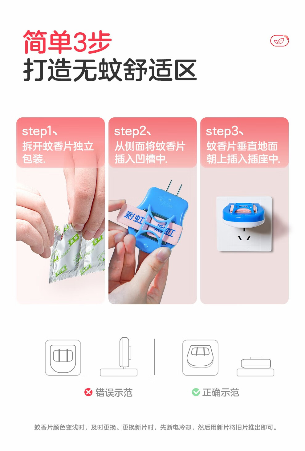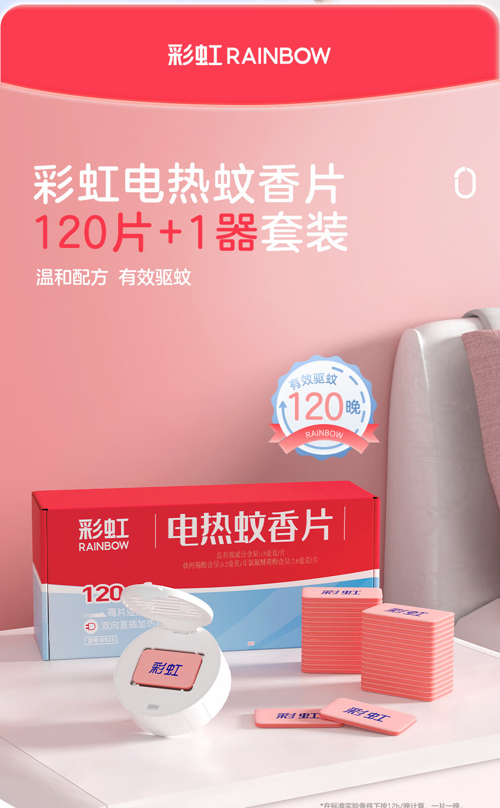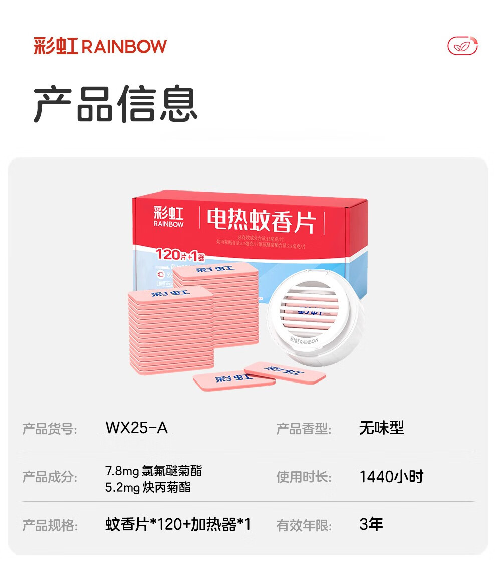 彩虹电热蚊香片电蚊香(灭蚊片)无味驱蚊防蚊子片(灭蚊器)家用室内 【无香无烟】120片+1器 可用120晚