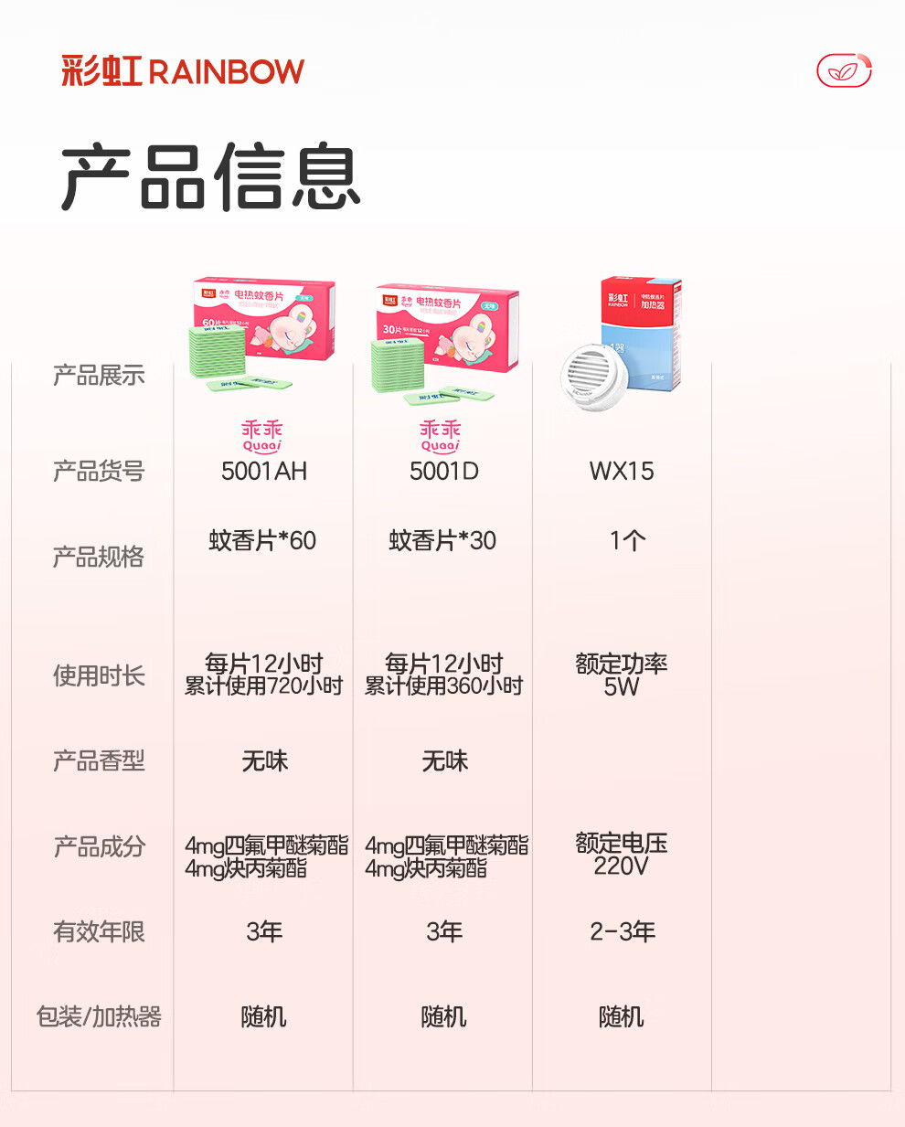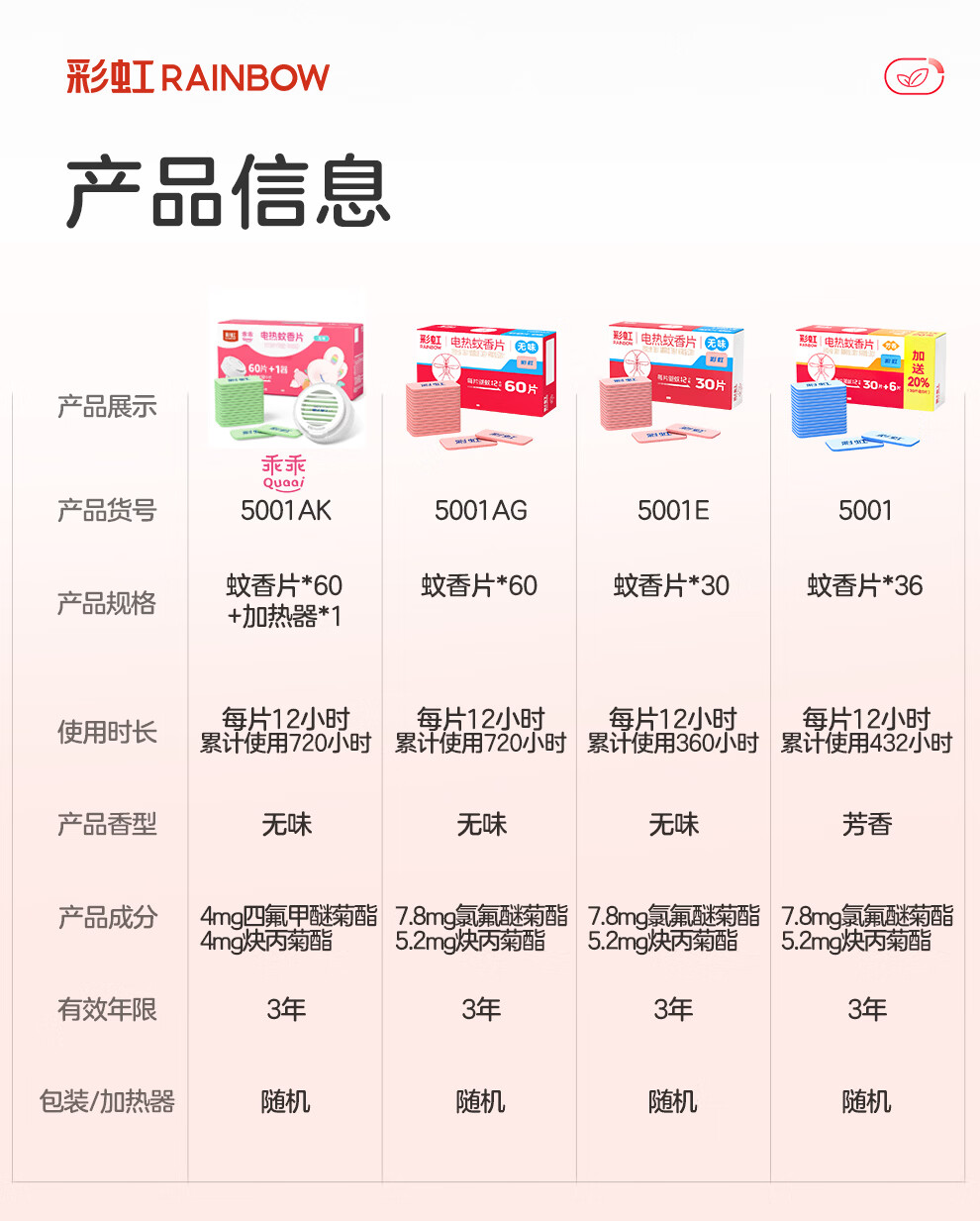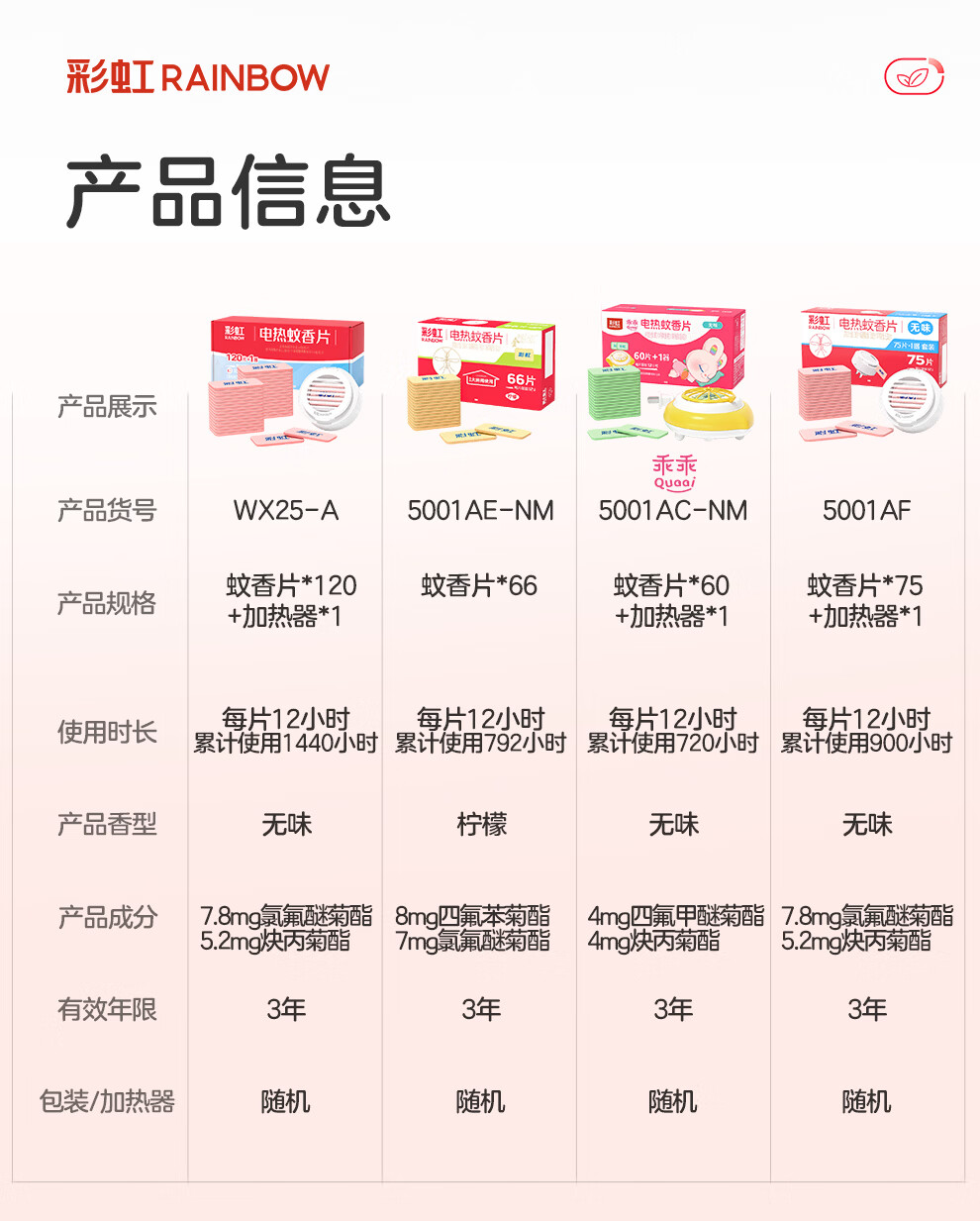 彩虹电热蚊香片电蚊香(灭蚊片)无味驱蚊防蚊子片(灭蚊器)家用室内 【无香无烟】120片+1器 可用120晚