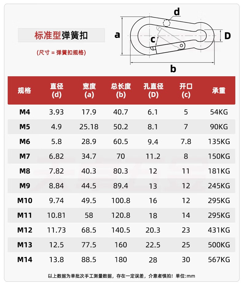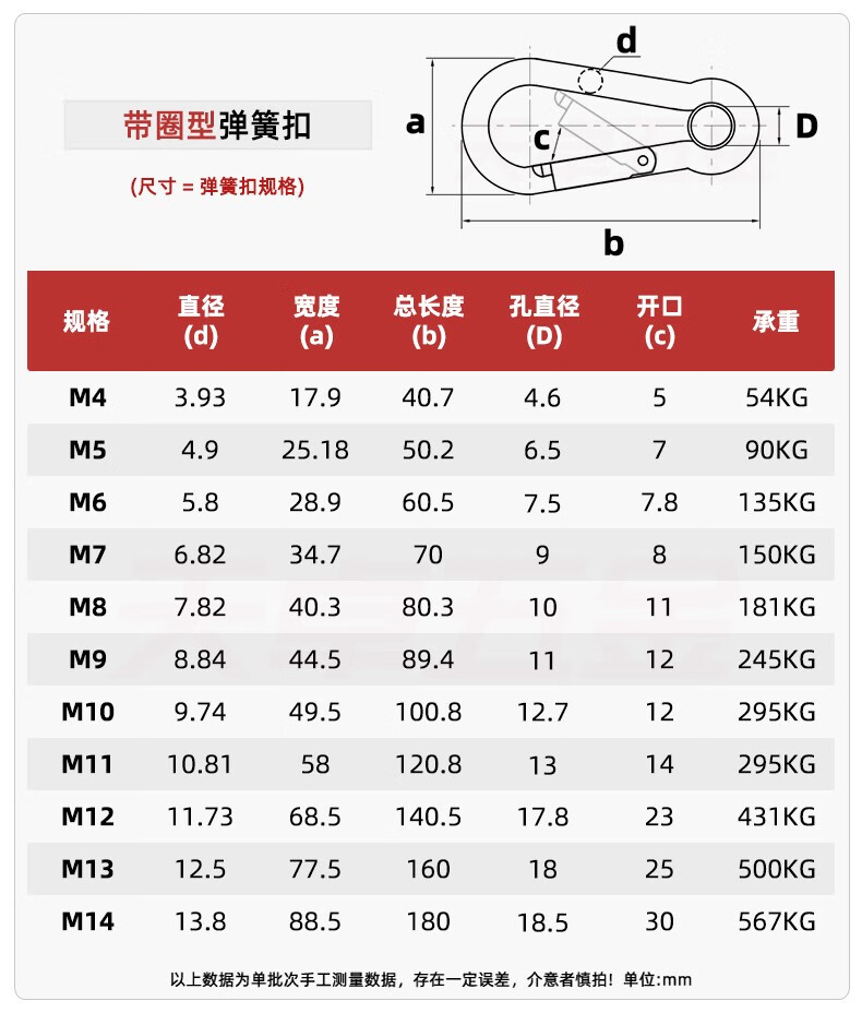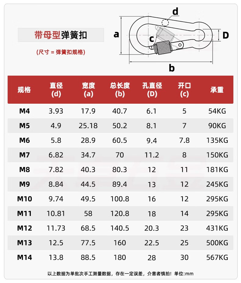 天卓五金304不锈钢弹簧扣登山扣保险扣钥匙扣葫芦扣螺母弹簧带圈扣狗链扣 M4(标准型)【2只】