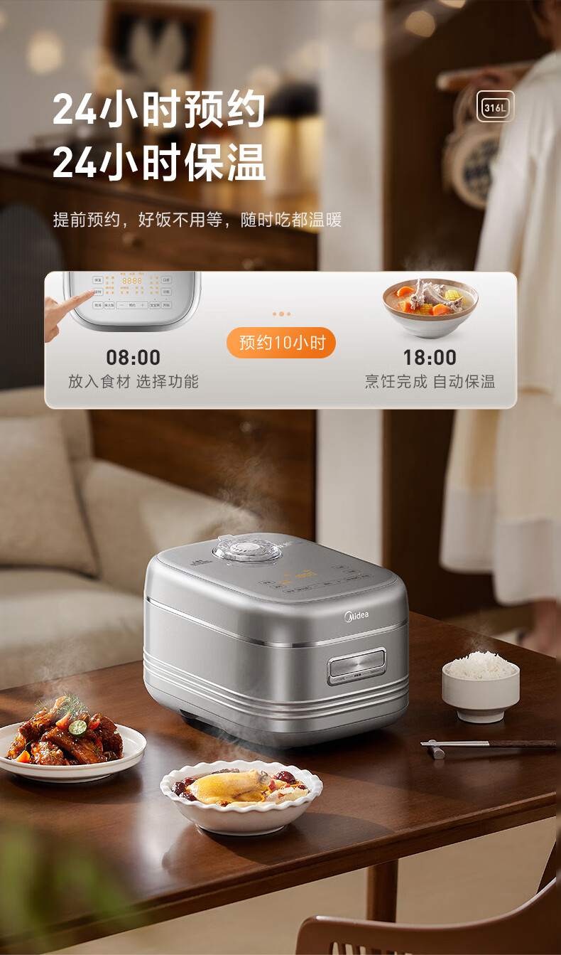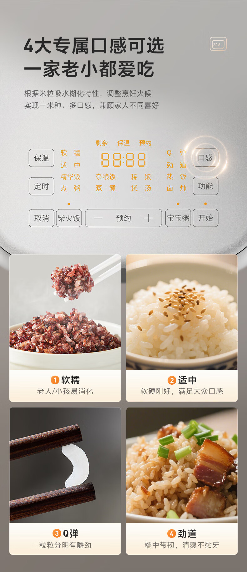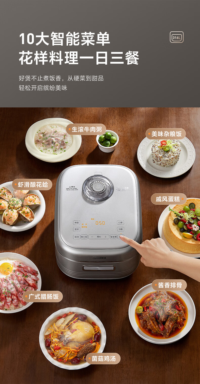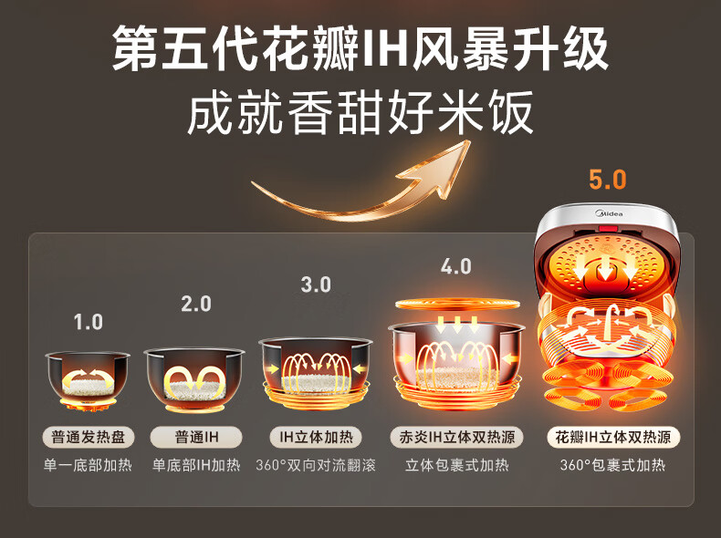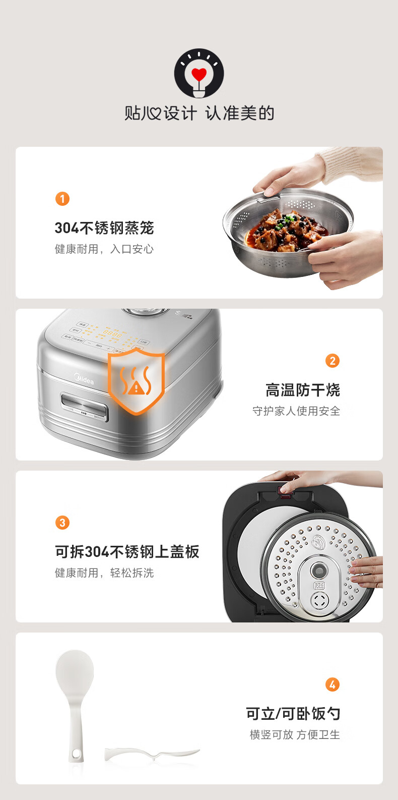 美的(Midea)电饭煲 花瓣IH 3-4-5-6人0涂层低压电饭锅 无涂层 家用316不锈钢内胆小米粥智能多功能 【316不锈钢0涂层内胆】MB-40HB2 4L