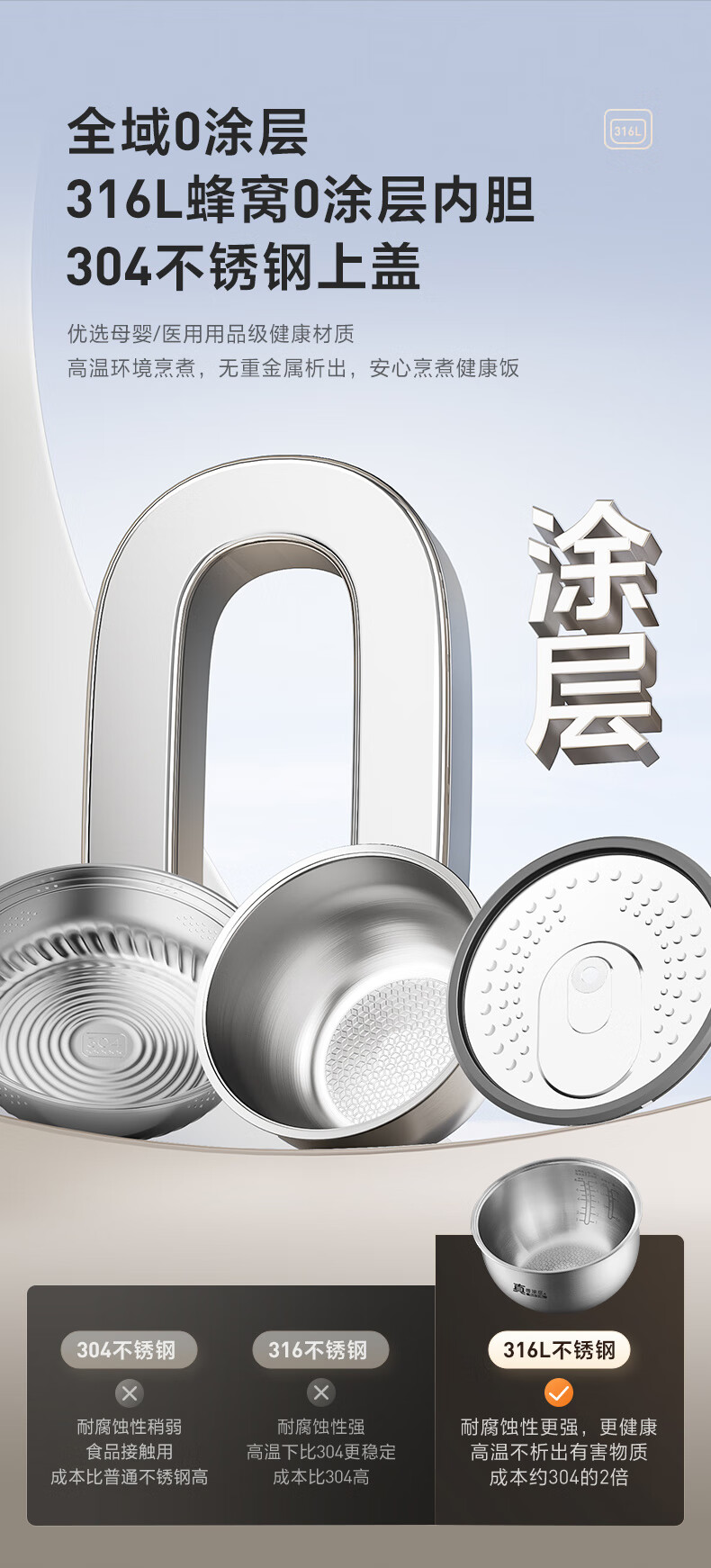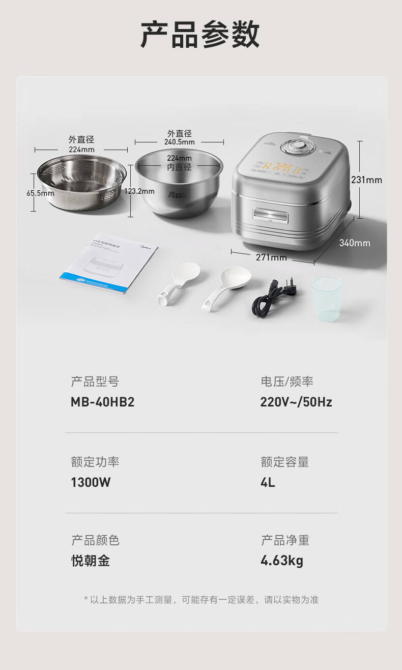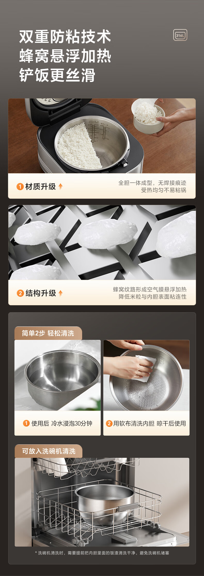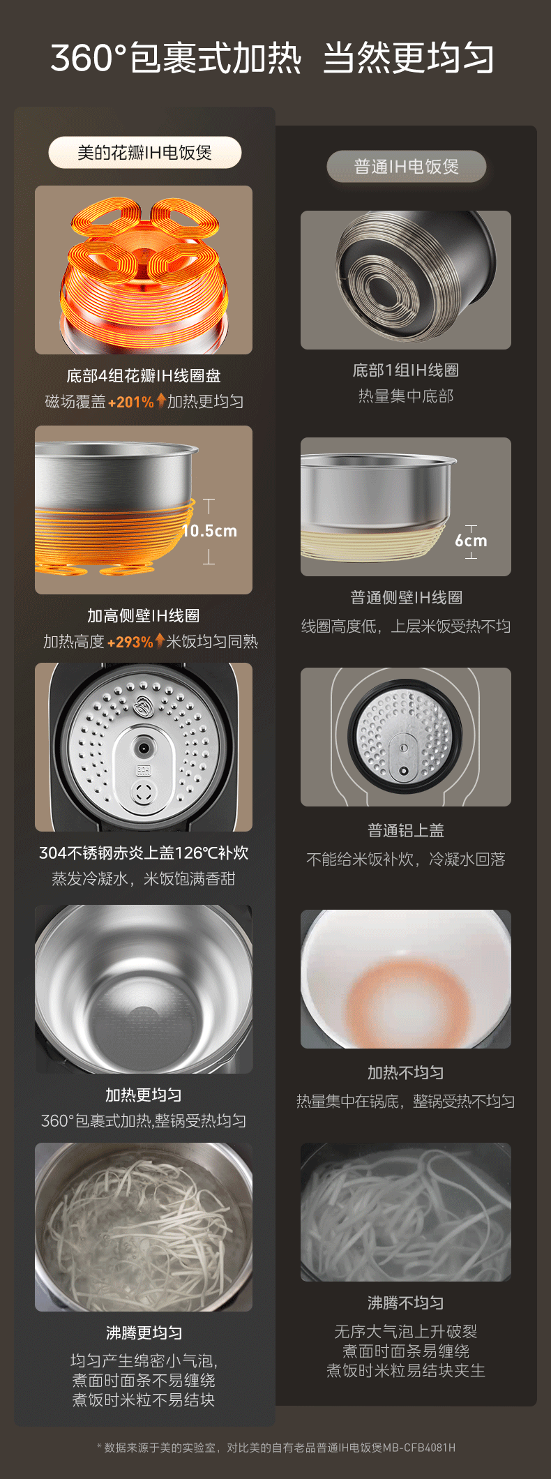 美的(Midea)电饭煲 花瓣IH 3-4-5-6人0涂层低压电饭锅 无涂层 家用316不锈钢内胆小米粥智能多功能 【316不锈钢0涂层内胆】MB-40HB2 4L