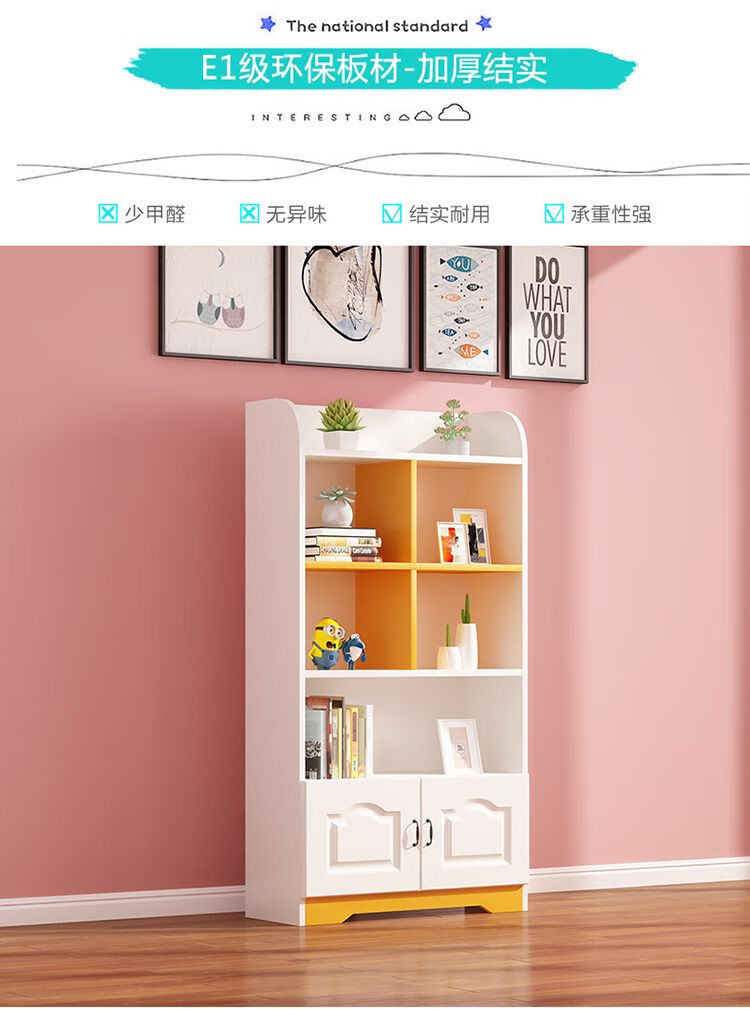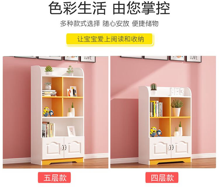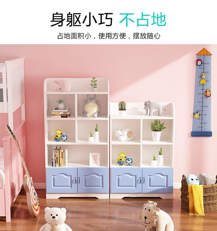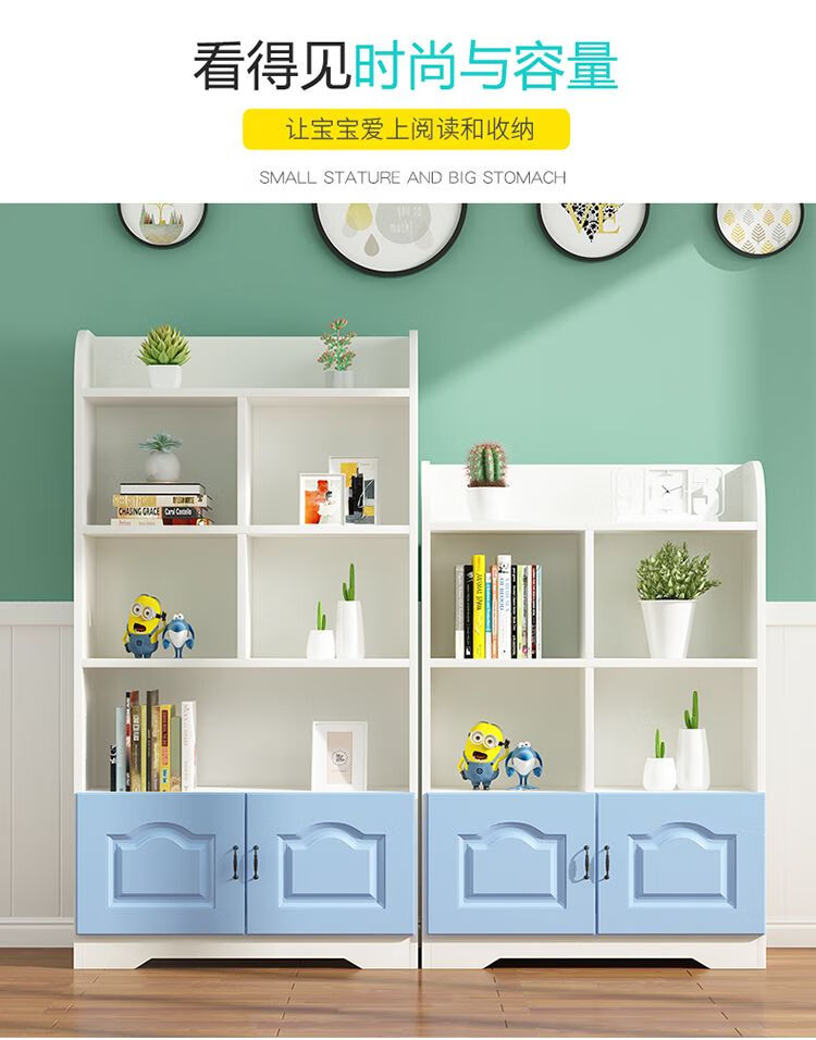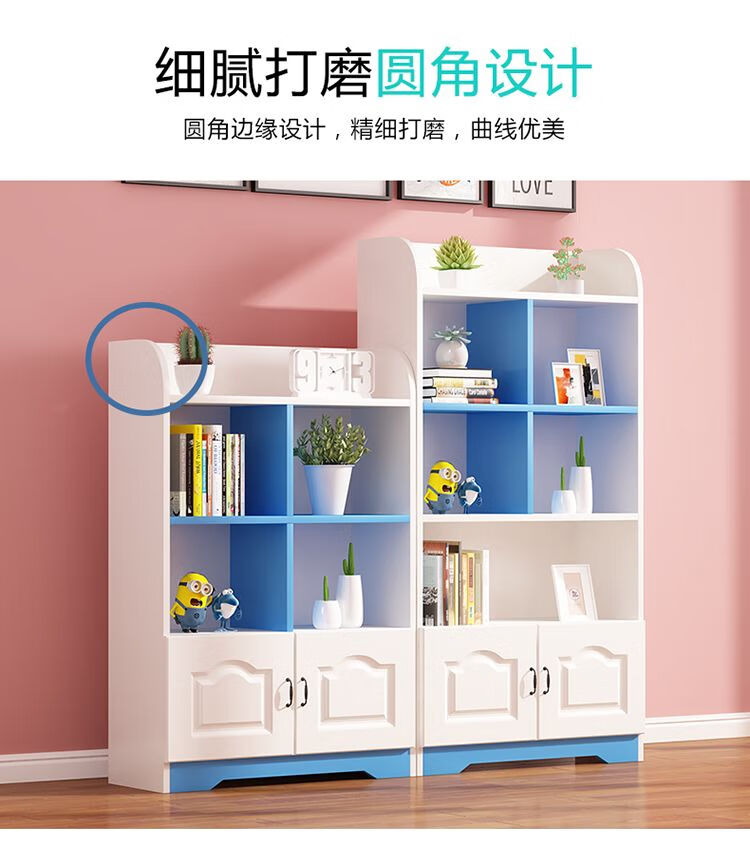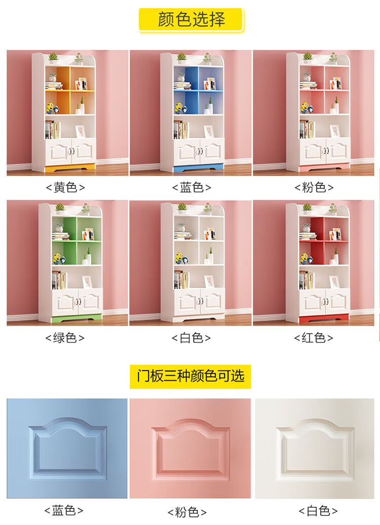 弘星隆书柜书架简易落地小柜子置物架客厅储物卧室多层学生家用简约书架 四层白蓝拼色白门一套