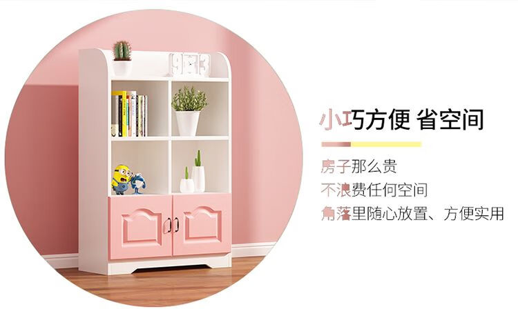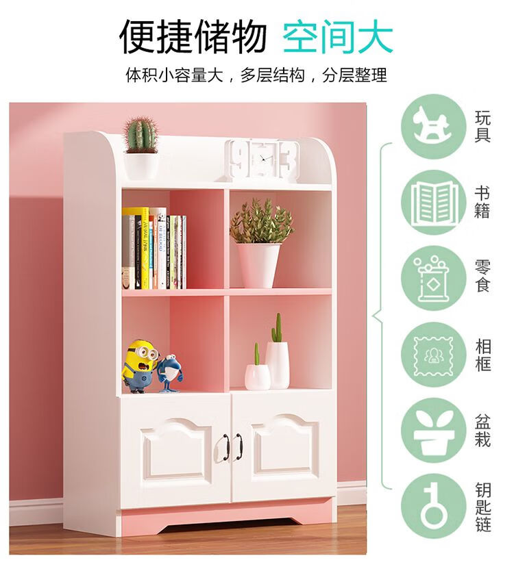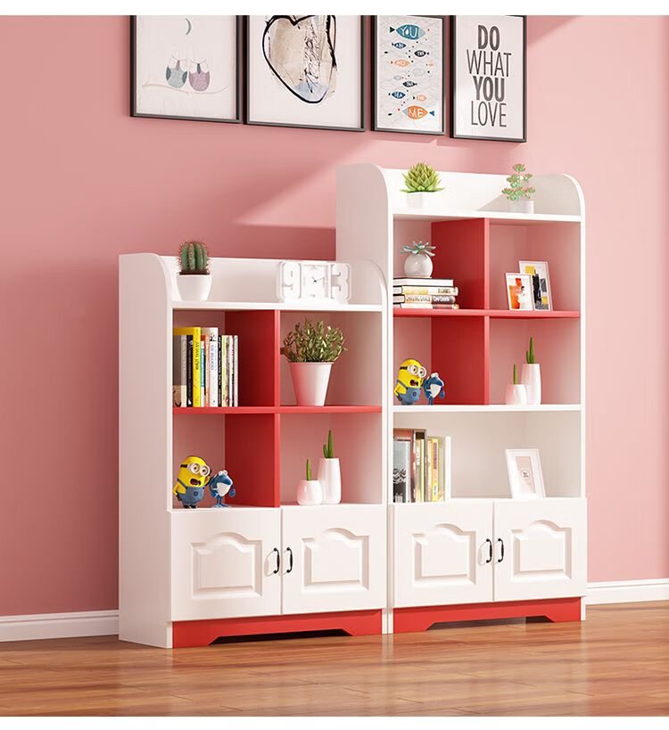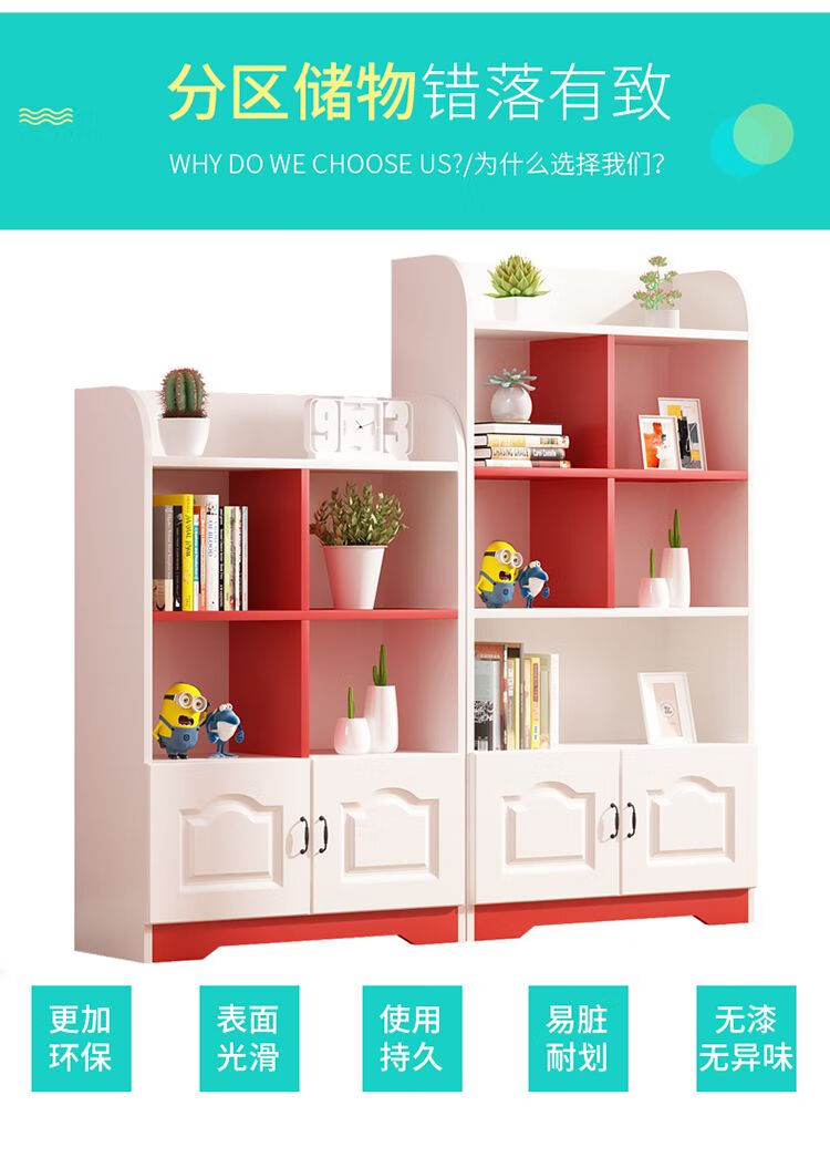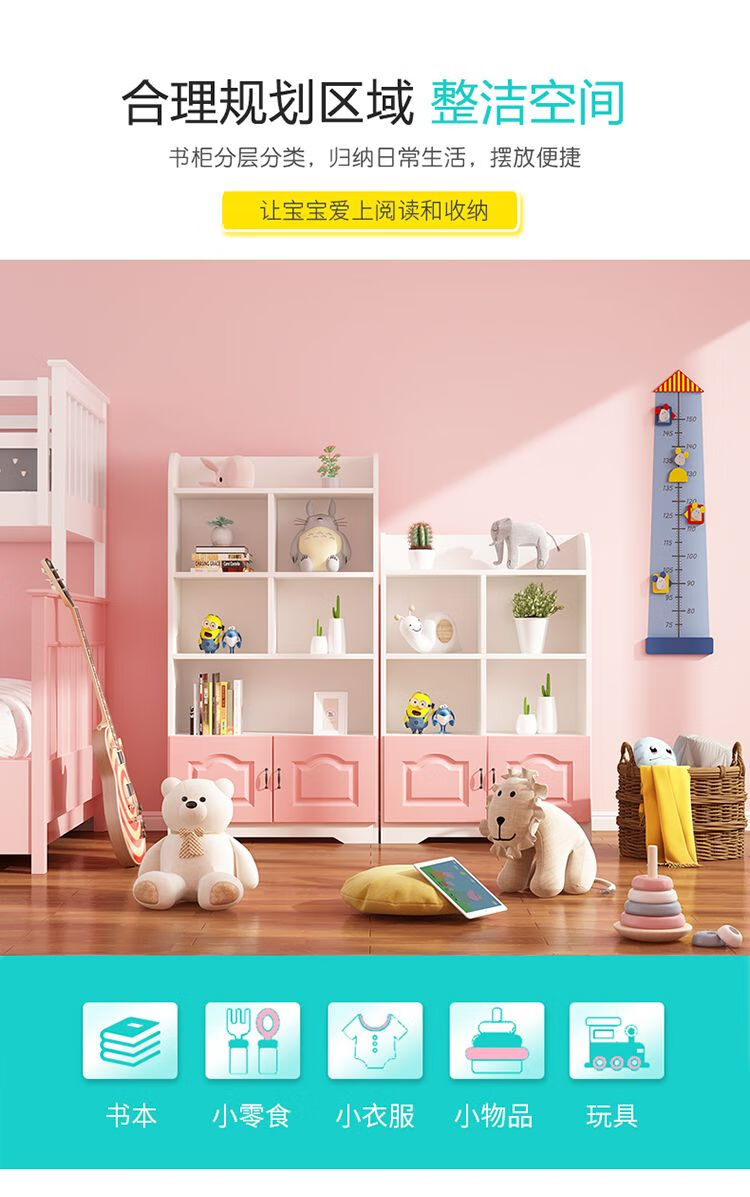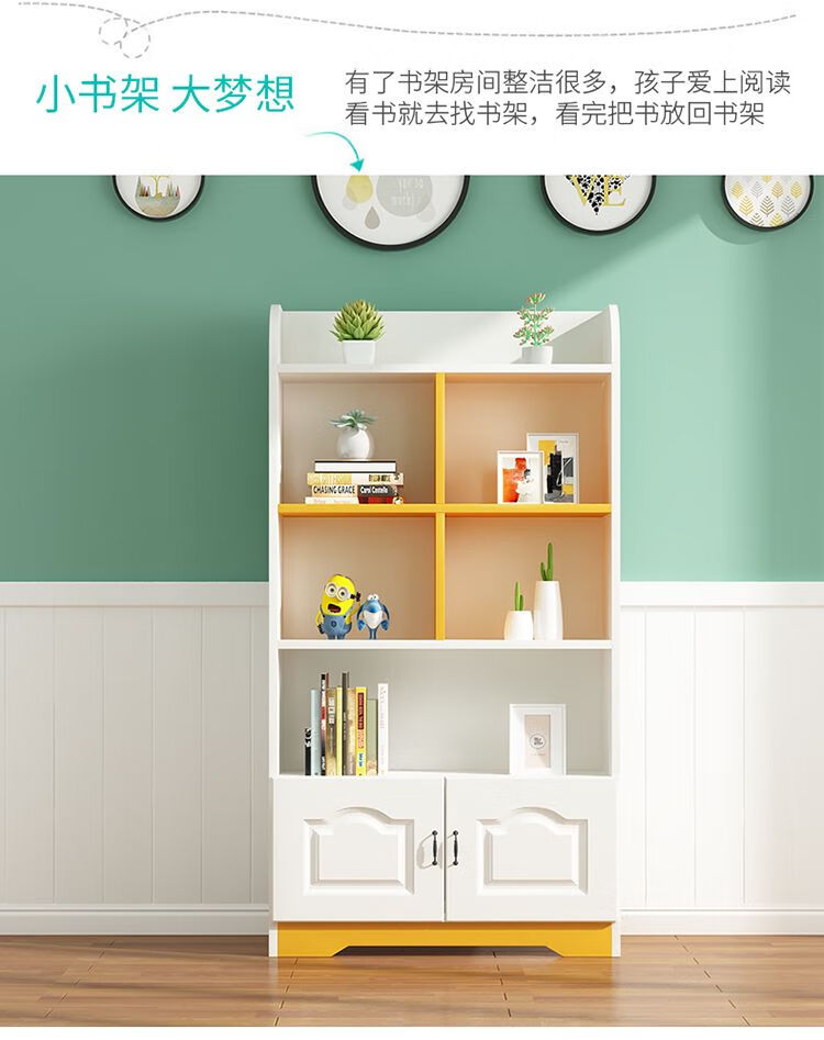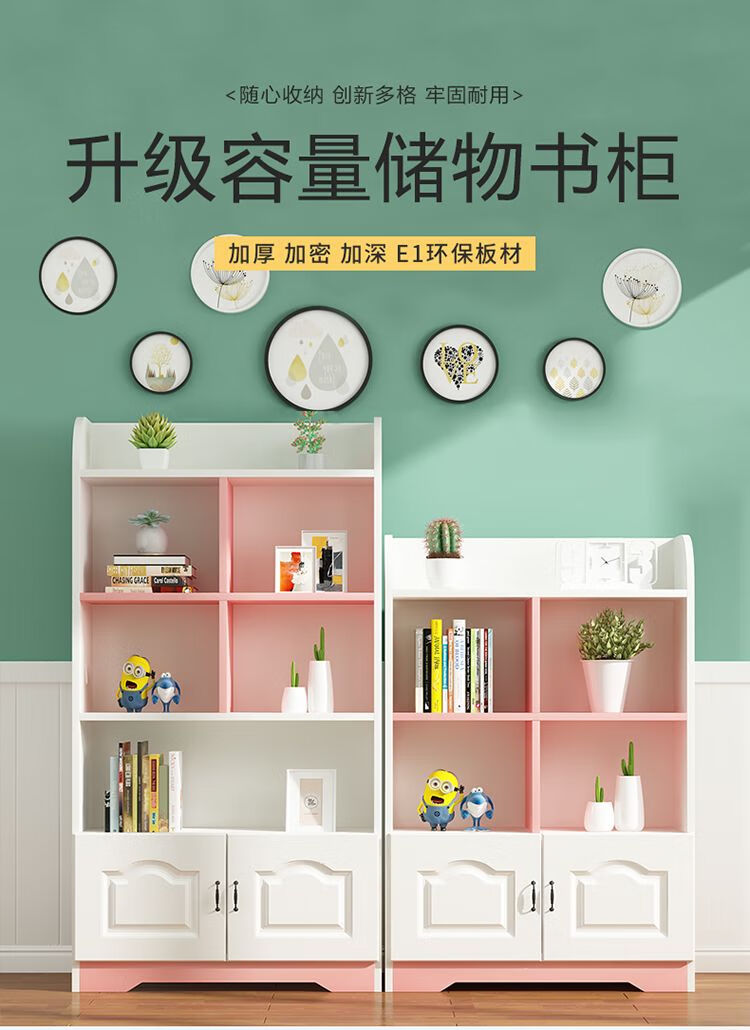 弘星隆书柜书架简易落地小柜子置物架客厅储物卧室多层学生家用简约书架 四层白蓝拼色白门一套