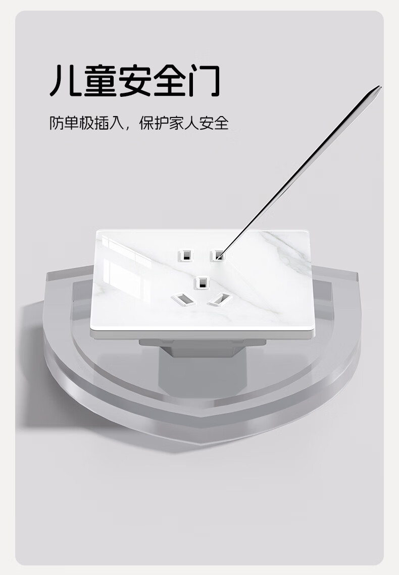 国际电工超薄钢化玻璃开关插座面板暗装86型墙壁防刮大理石纹一开五孔双控 一开单控 开关