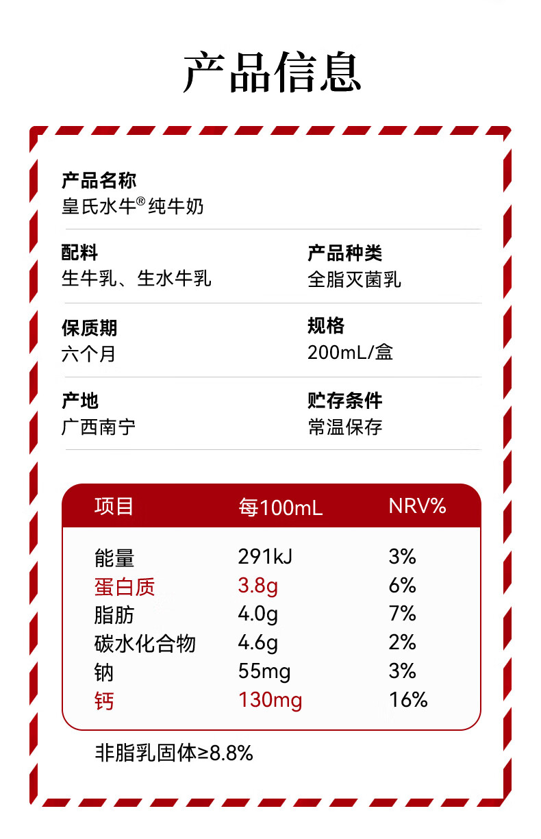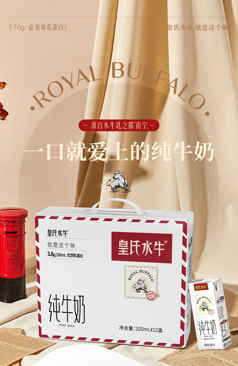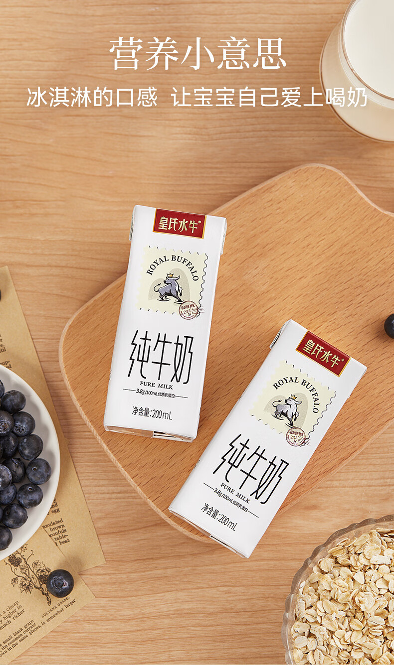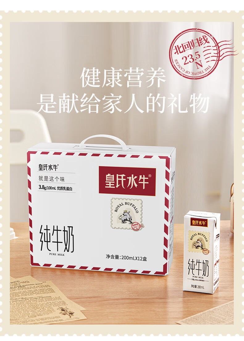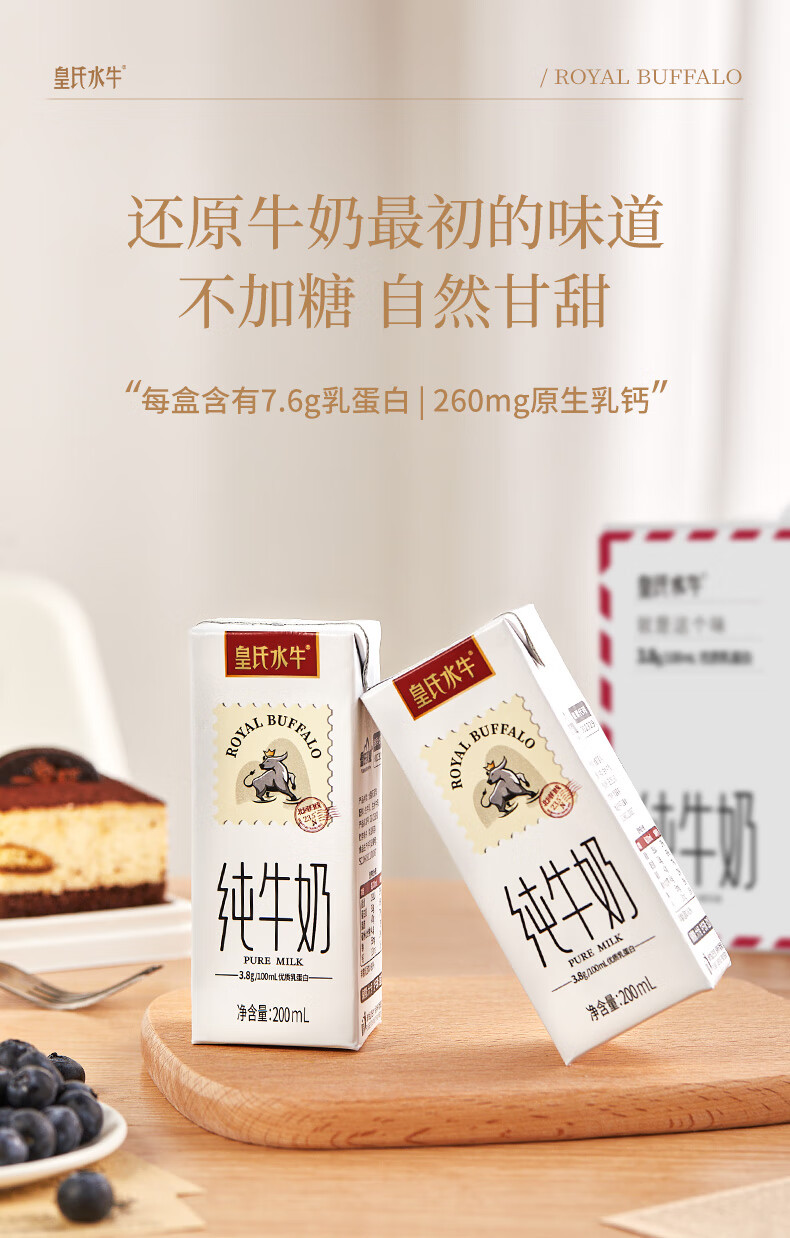 皇氏乳业皇氏水牛全脂纯牛奶含7.6g蛋白260mg钙200ml含水牛奶【节日礼盒】 *20盒装