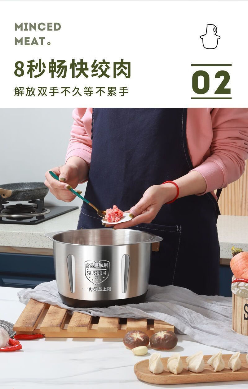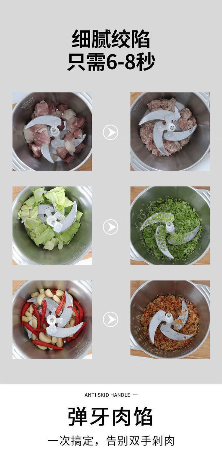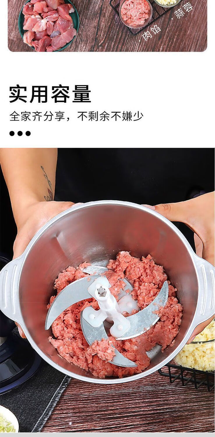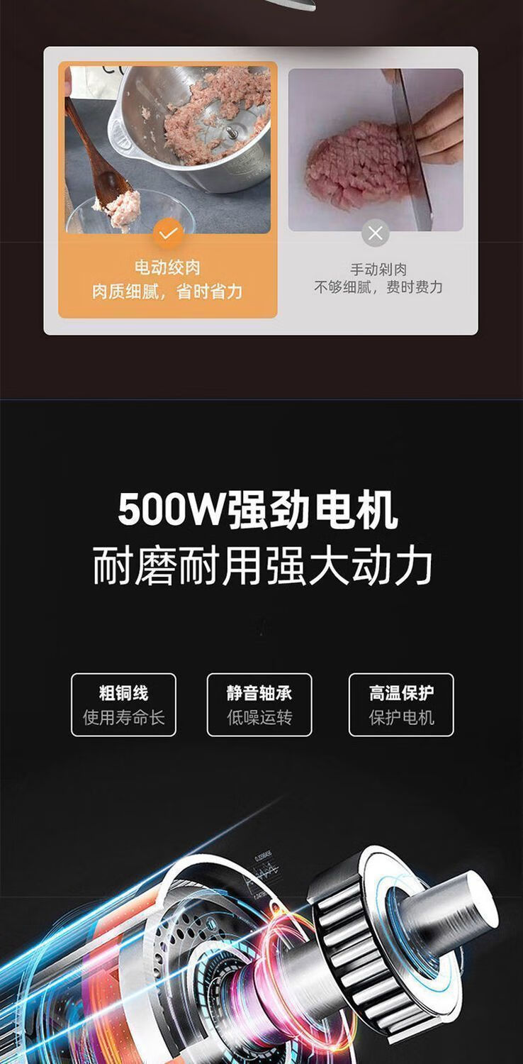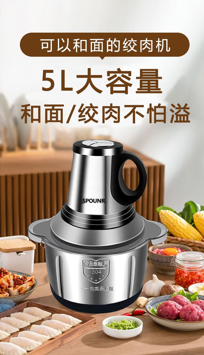 SPOUNR正品苏泊绞肉机家用电动不锈钢多功能料理绞馅机碎肉切菜蒜和面机 5L 高配款3档(共两副刀)纯铜电机