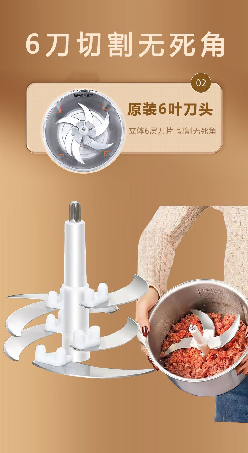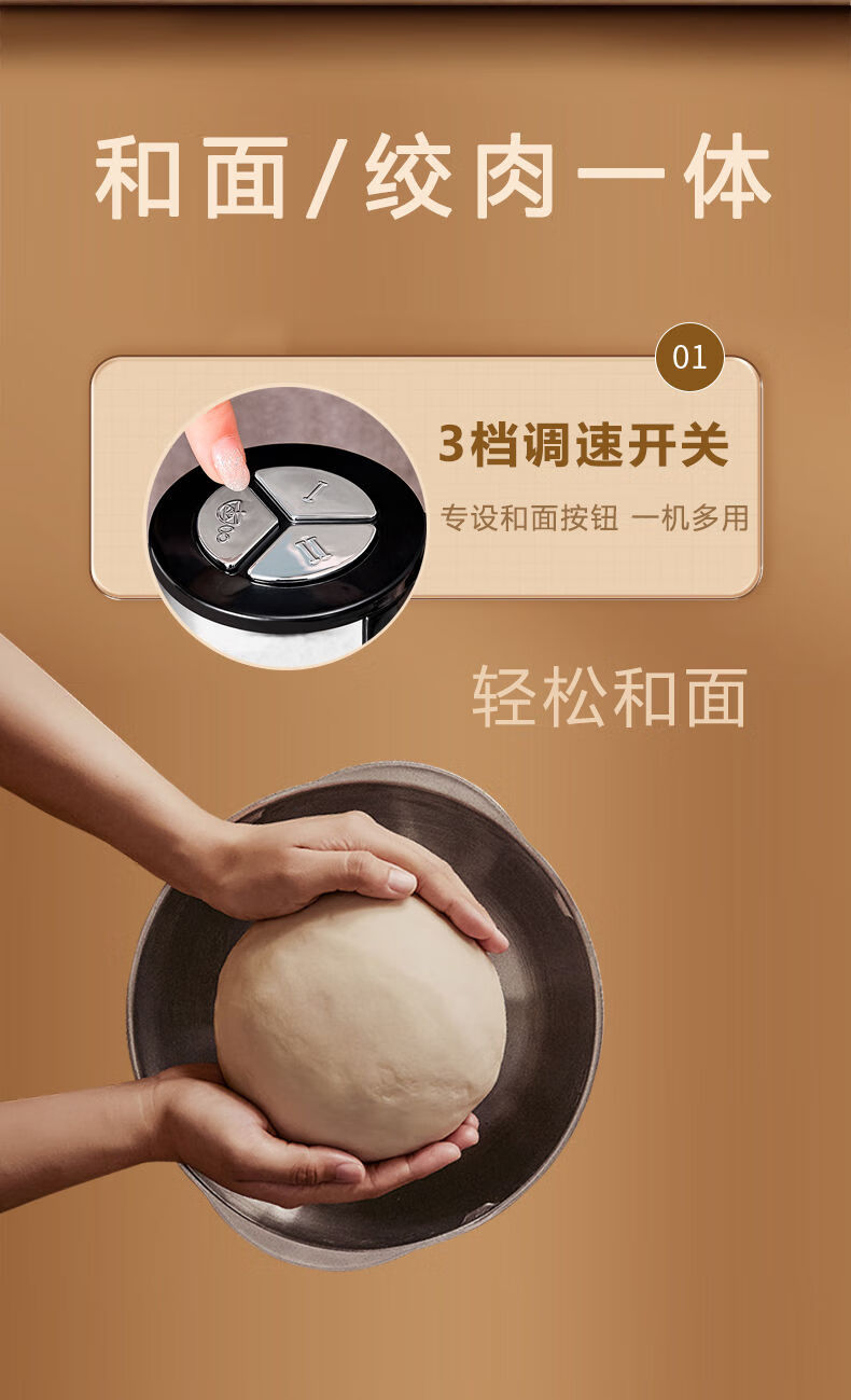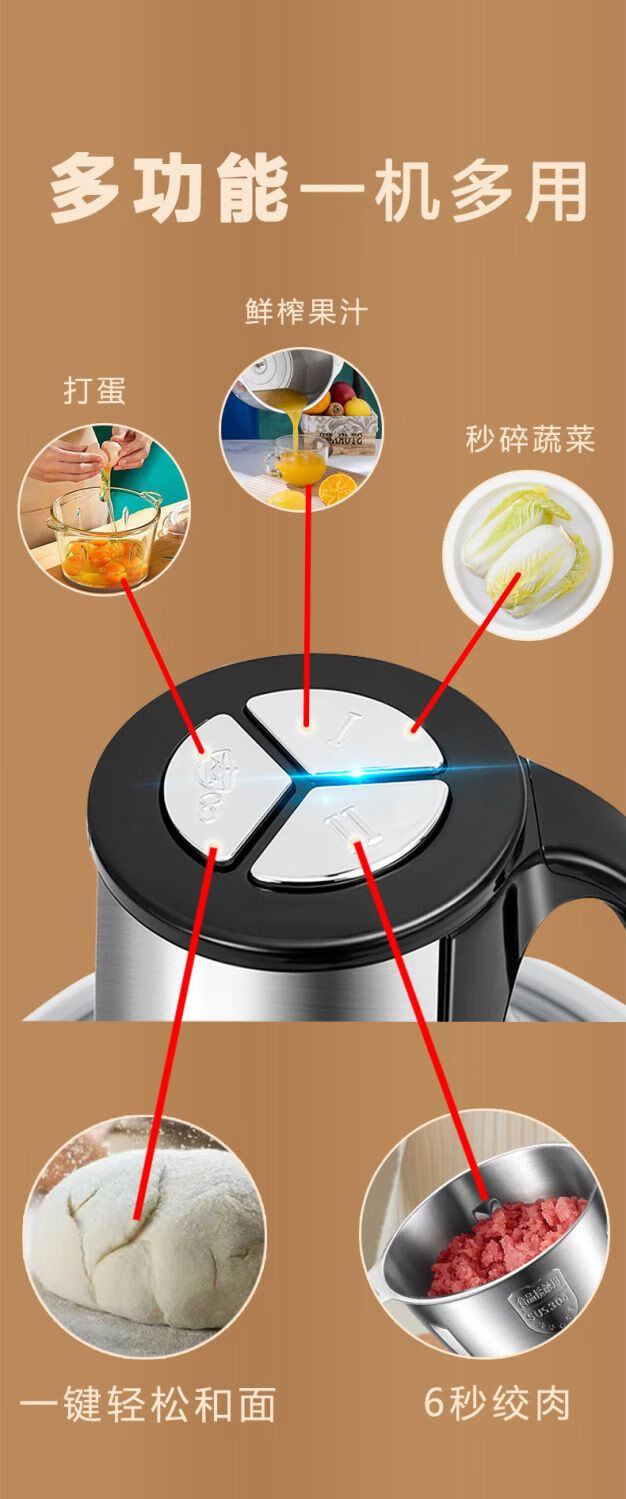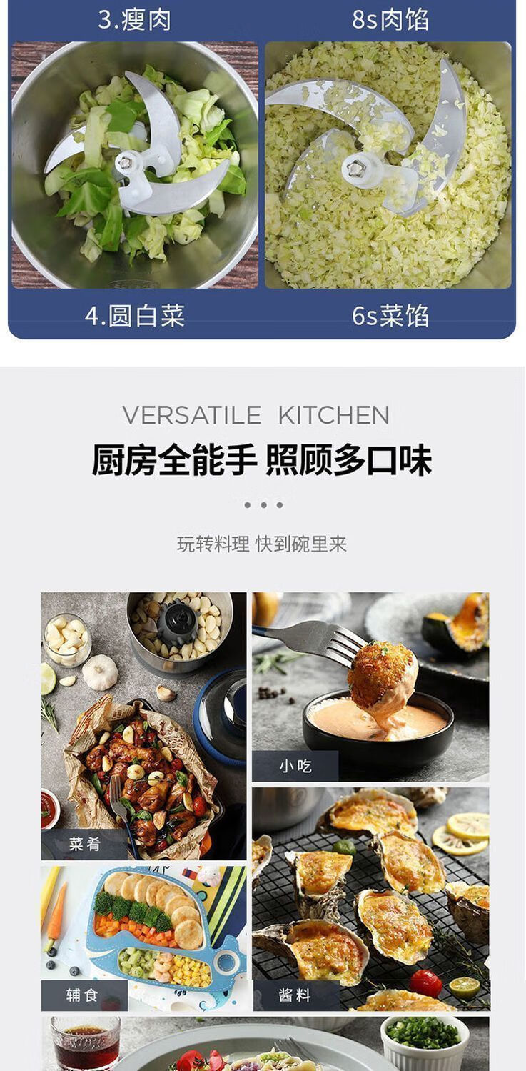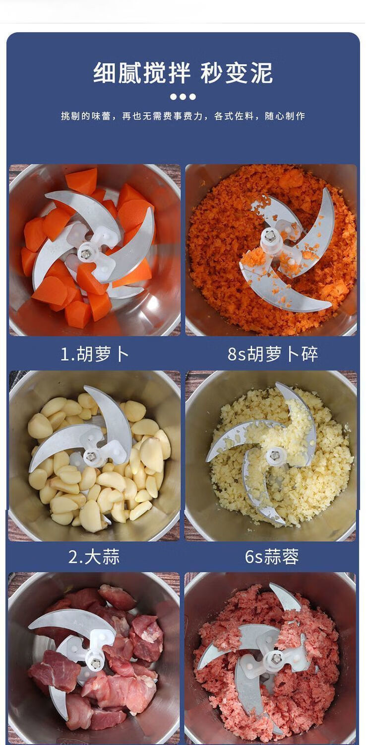SPOUNR正品苏泊绞肉机家用电动不锈钢多功能料理绞馅机碎肉切菜蒜和面机 5L 高配款3档(共两副刀)纯铜电机