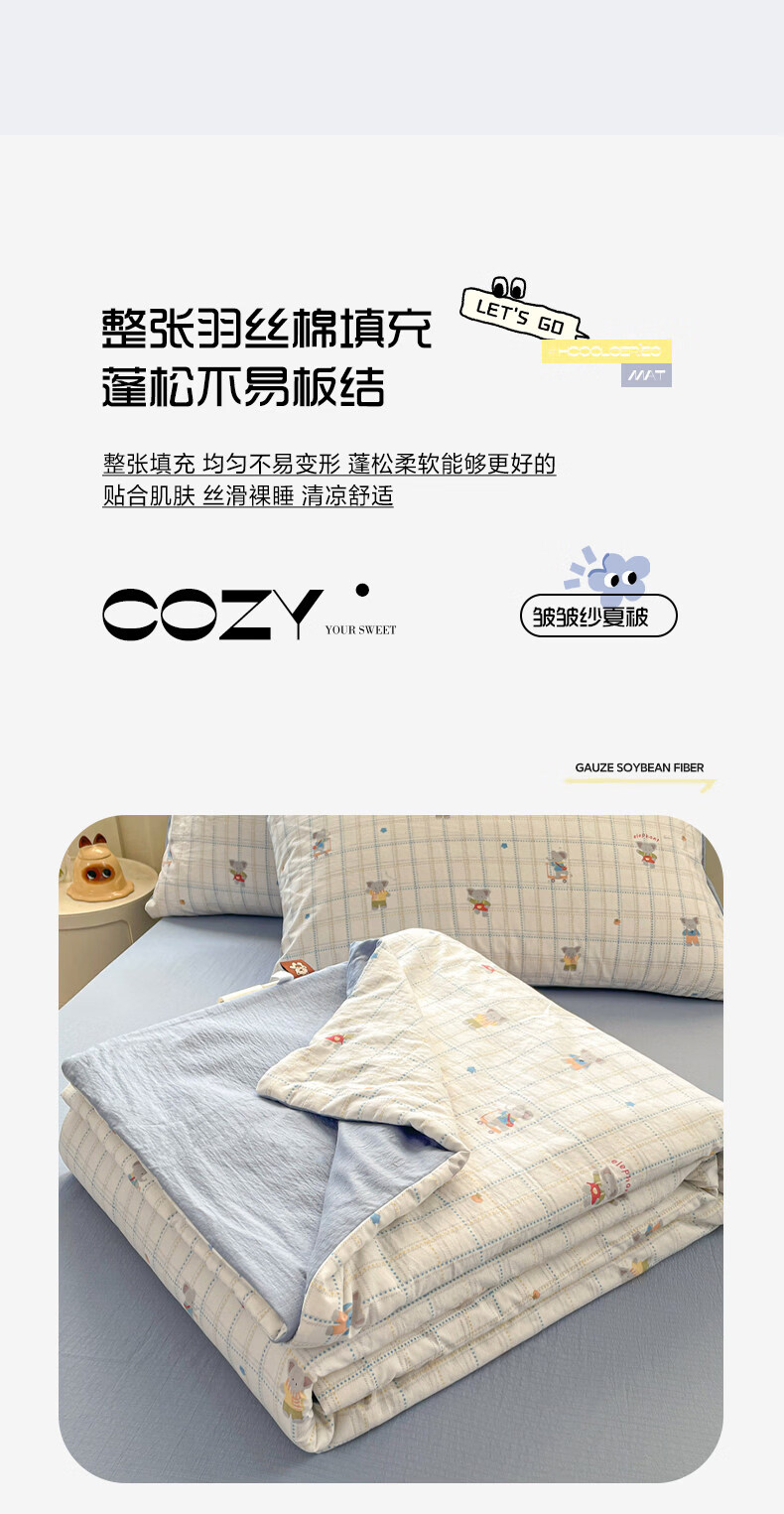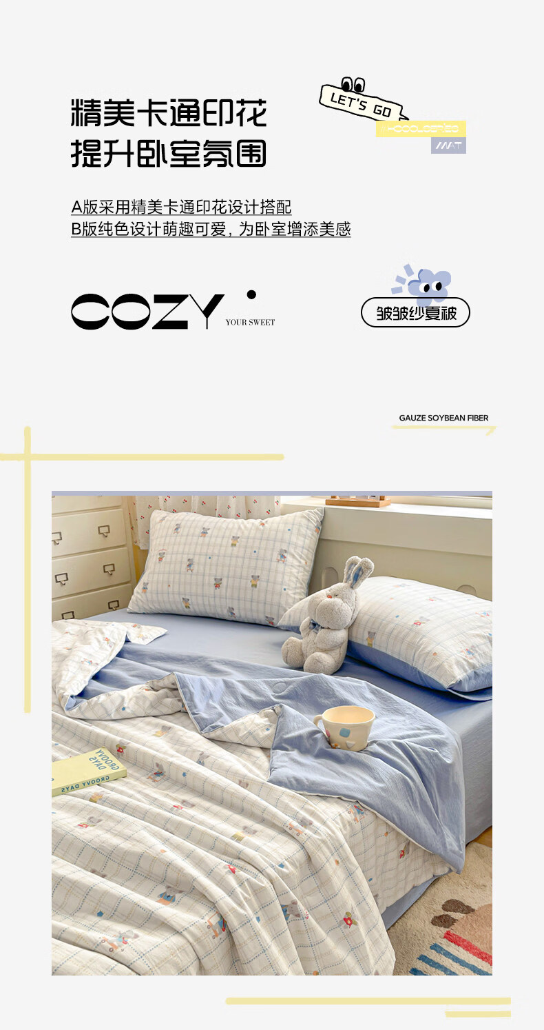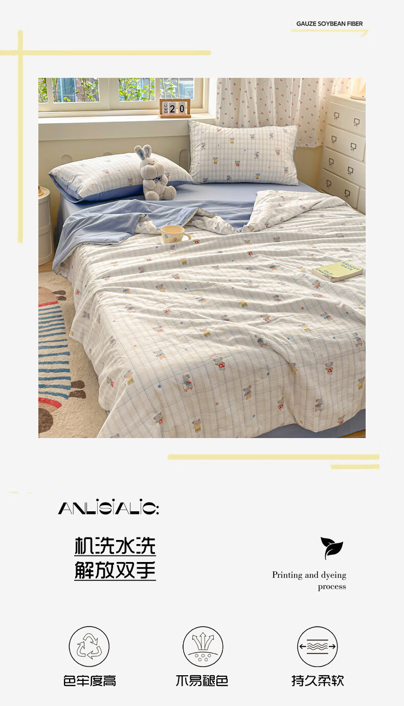 猫人(MiiOW)夏季夏凉被空调被子1.5x2米大豆纤维被夏天被芯被褥床上四件套罩 飞天小象 【A类品质 软糯贴身】 150*200cm单夏被