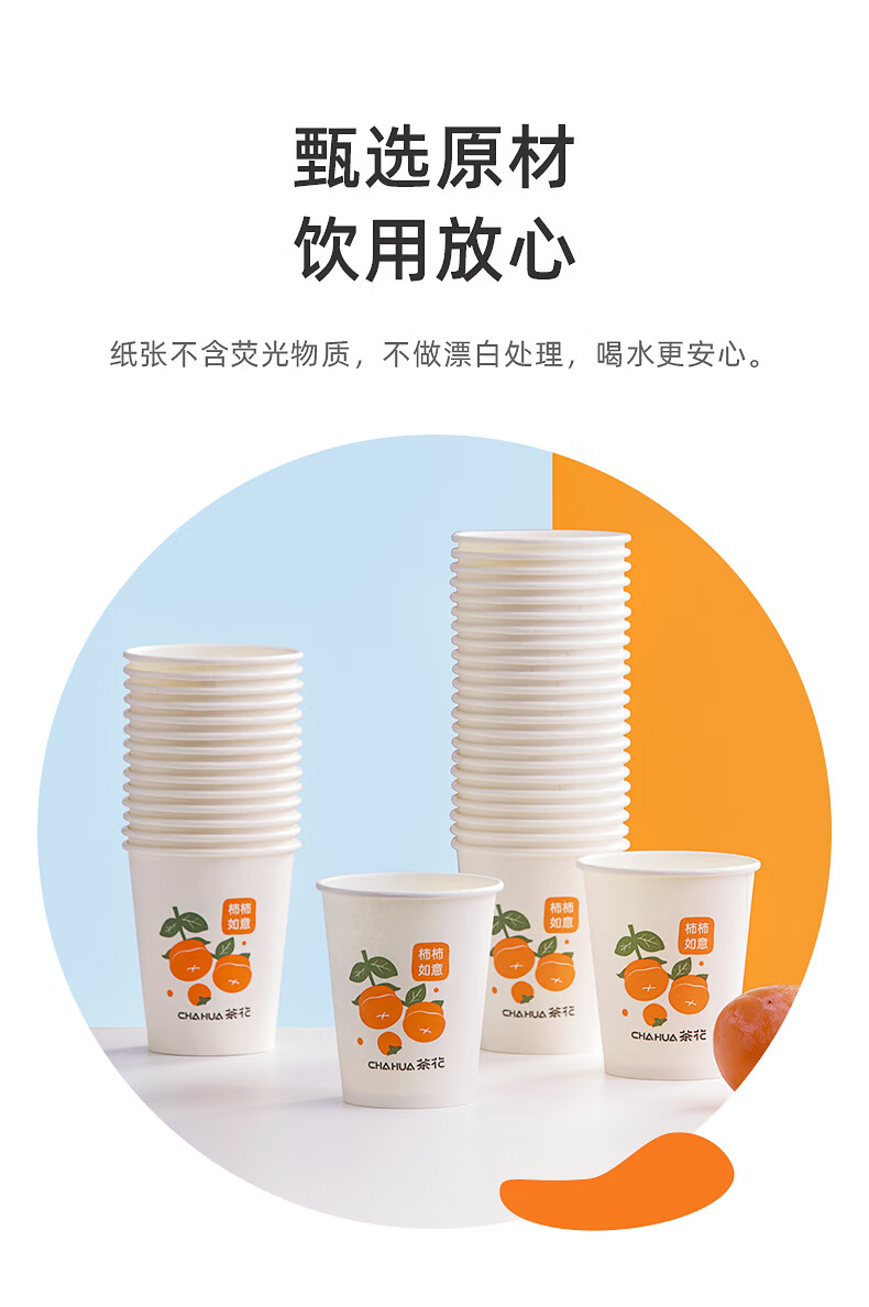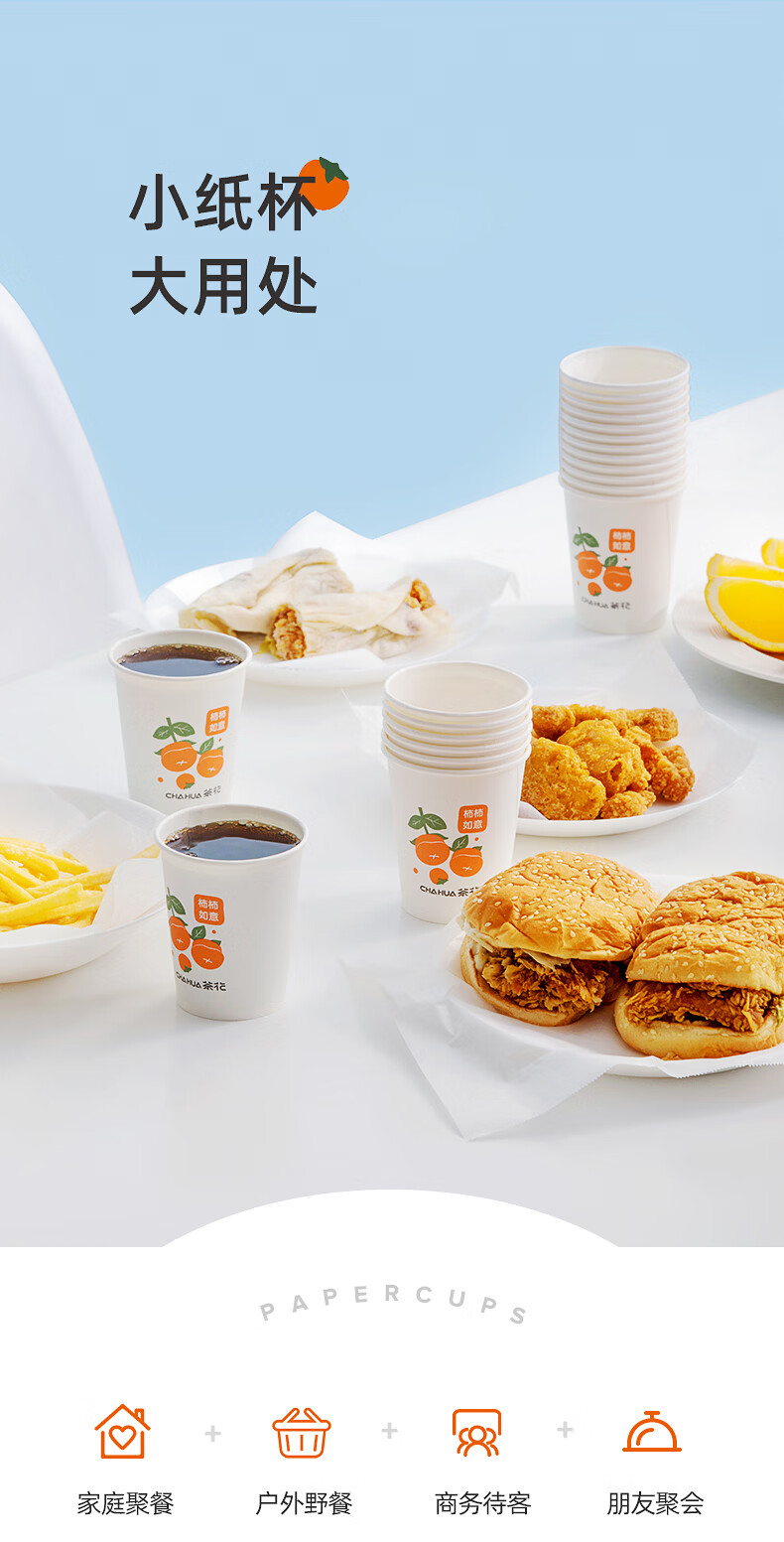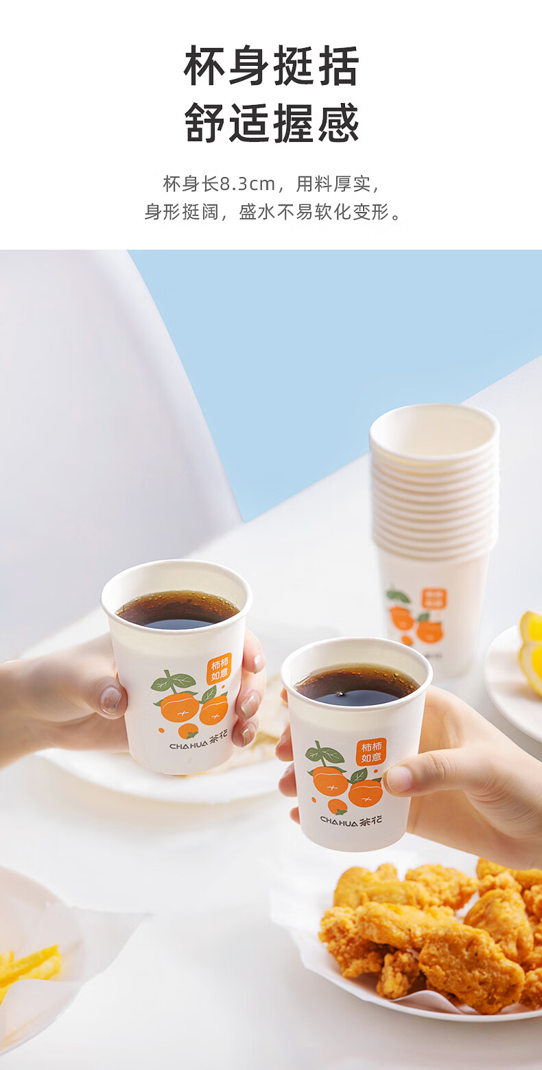 茶花一次性纸杯聚餐杯子露营装备咖啡奶茶豆浆茶水杯 【20只】圆形餐碗500ML