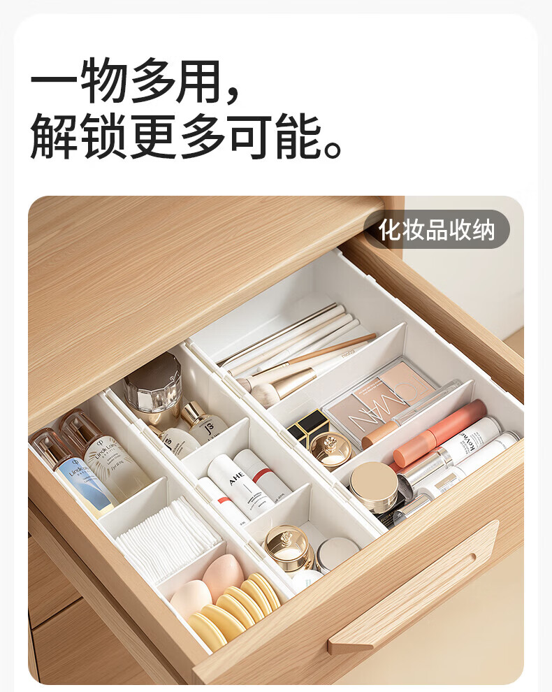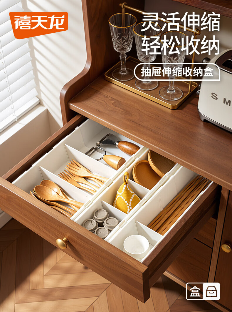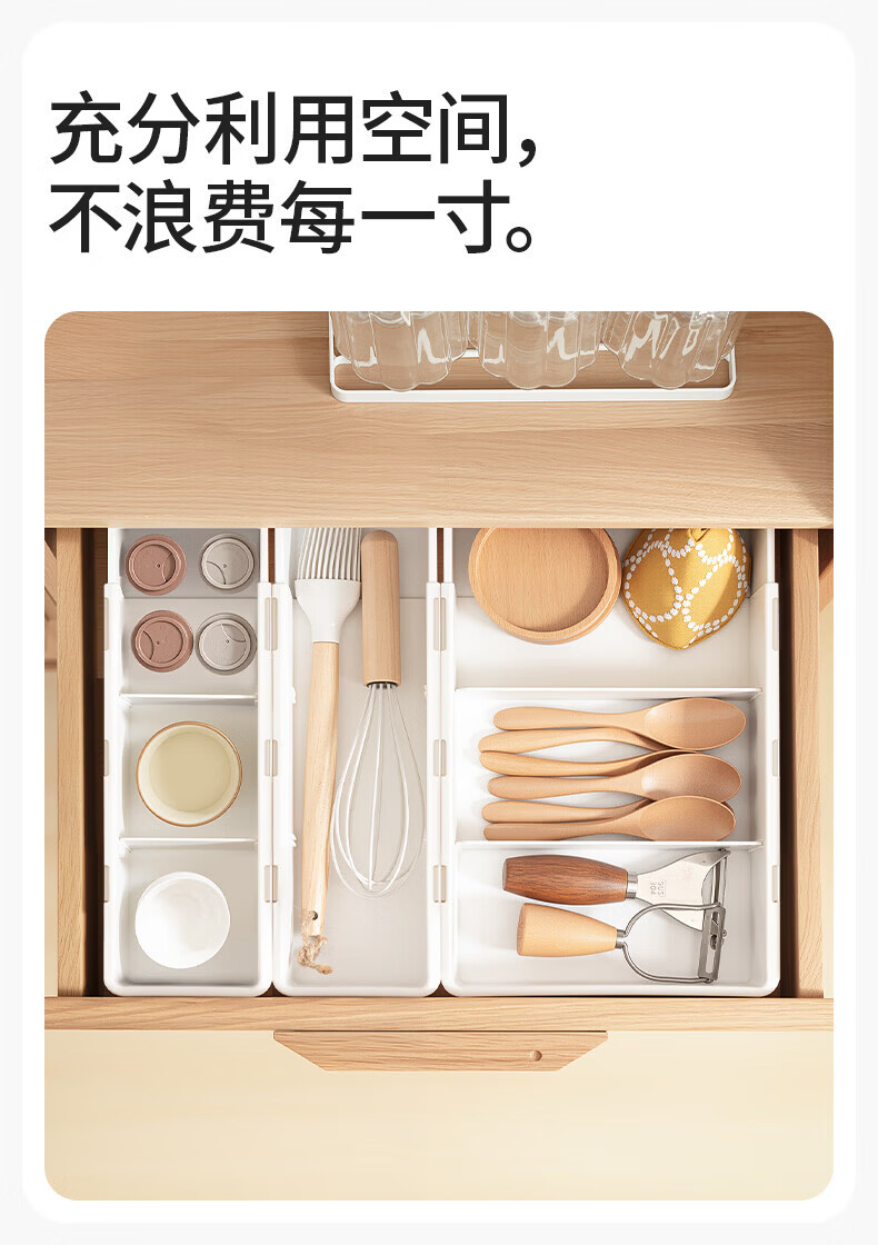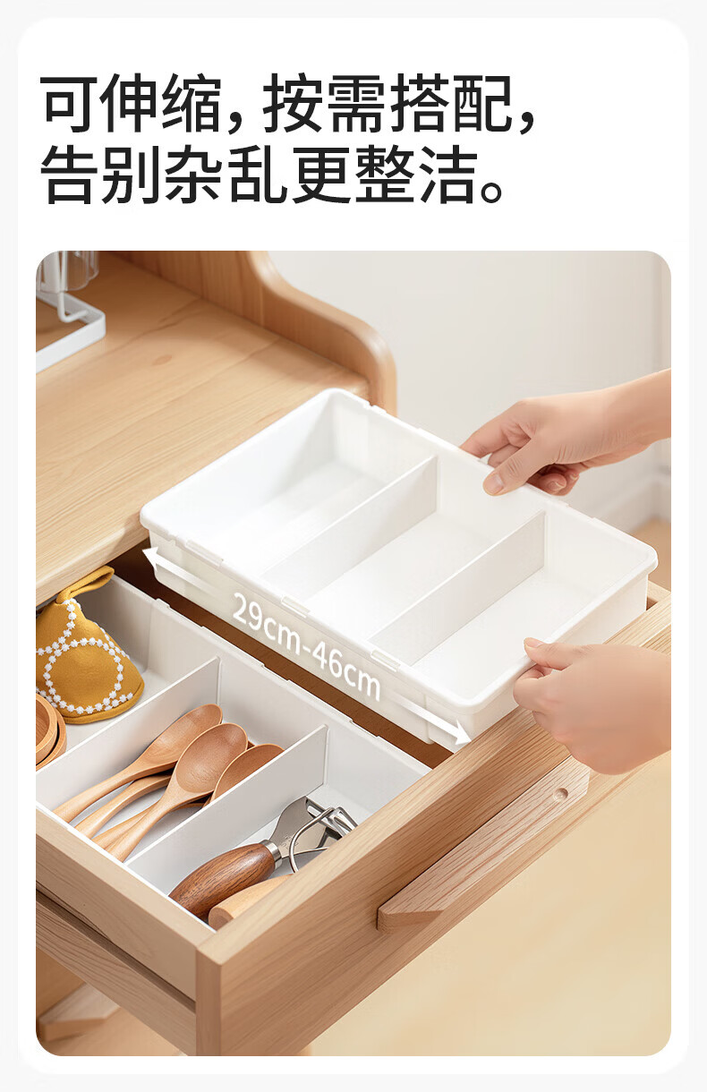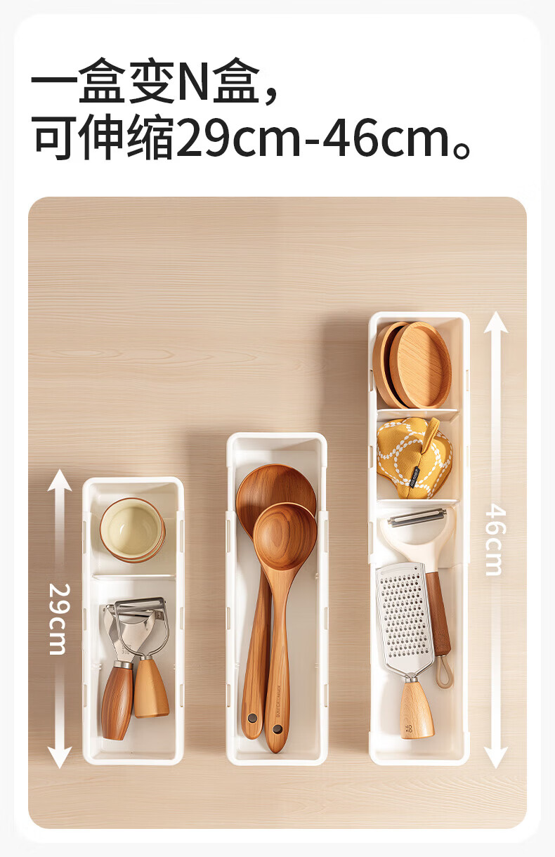 禧天龙抽屉收纳盒多功能分隔盒餐具筷子储物盒化妆品整理盒可伸缩 大号 2个装 抽屉伸缩收纳盒