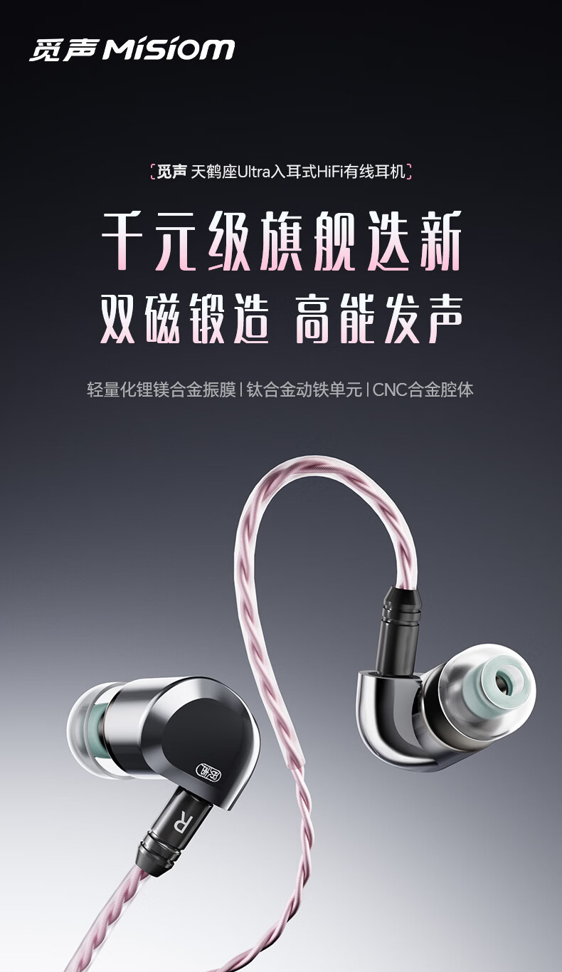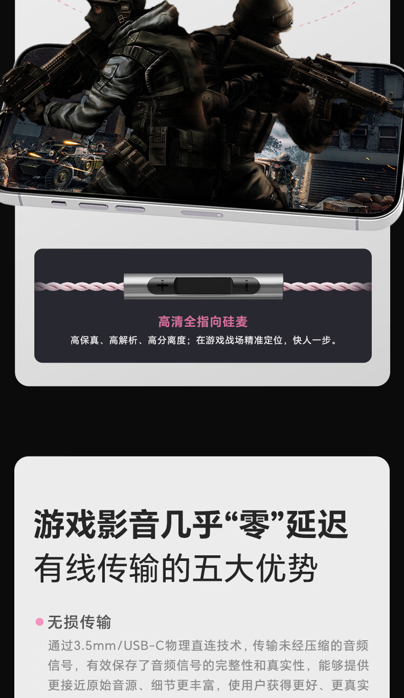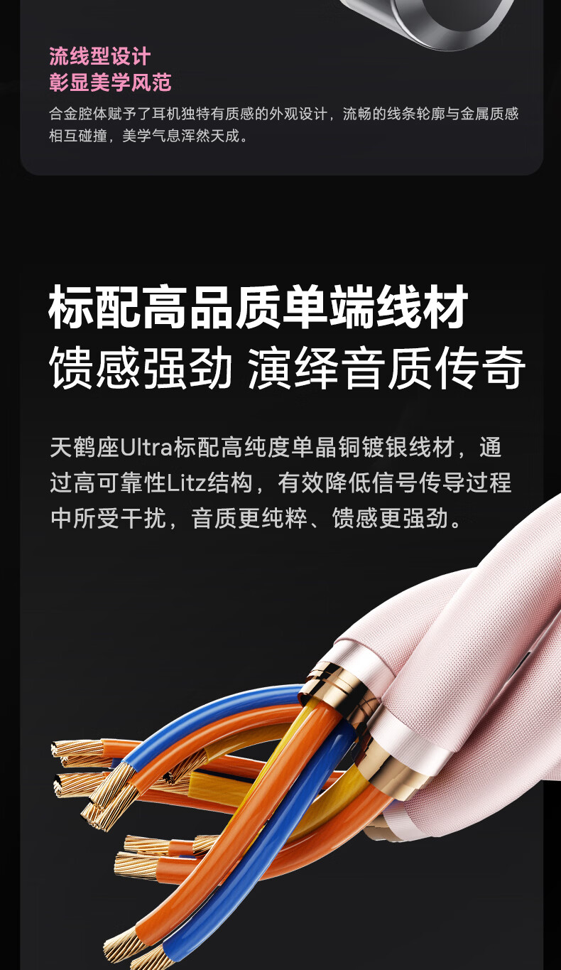 觅声天鹤座ultra入耳式HiFi有线音乐耳机高音质专业听声辨位fps电脑游戏电竞专用三角洲吃鸡耳麦可换线 3.5+4.4mm带麦-赠迷你声卡