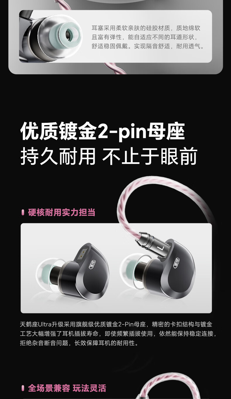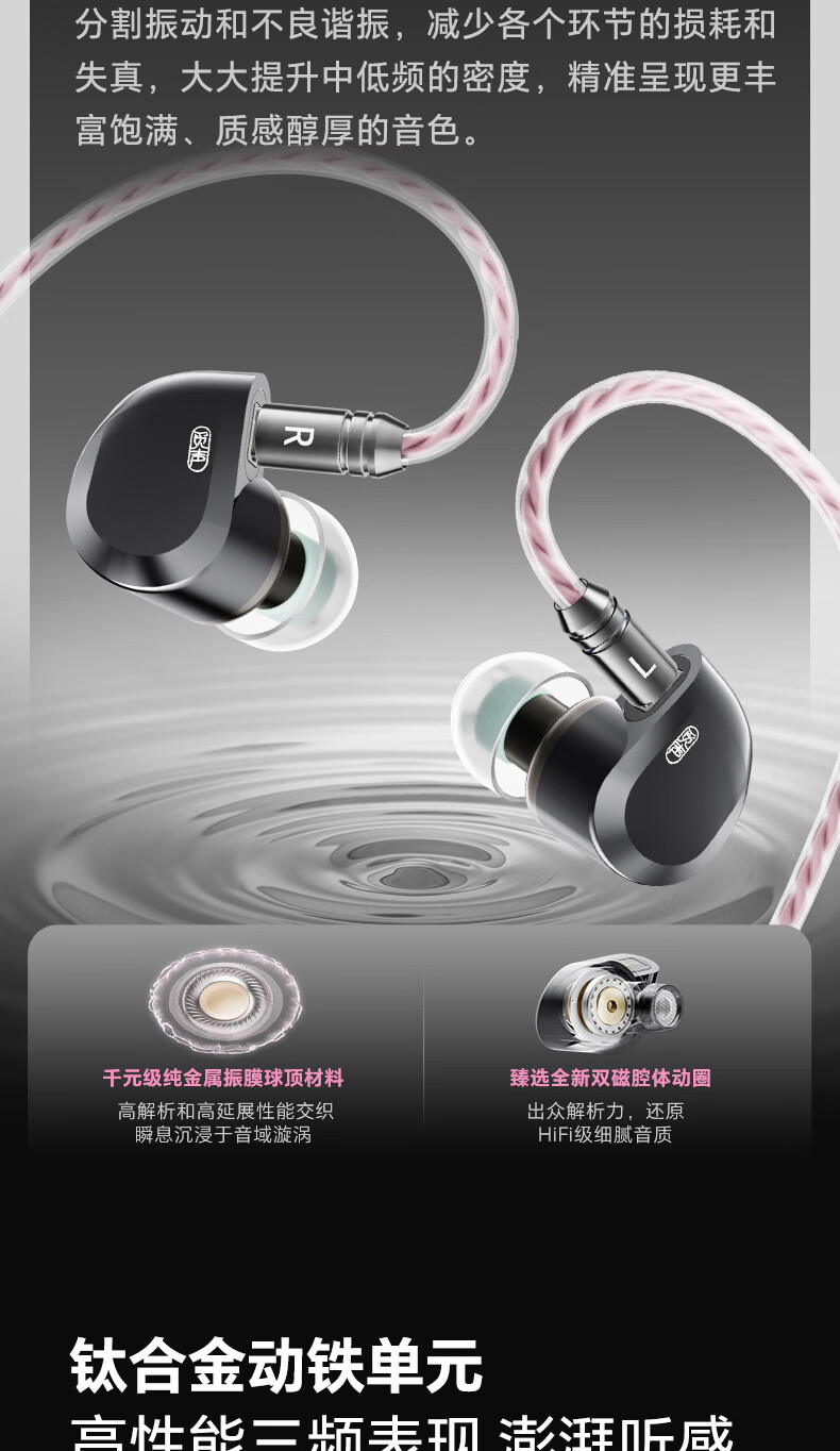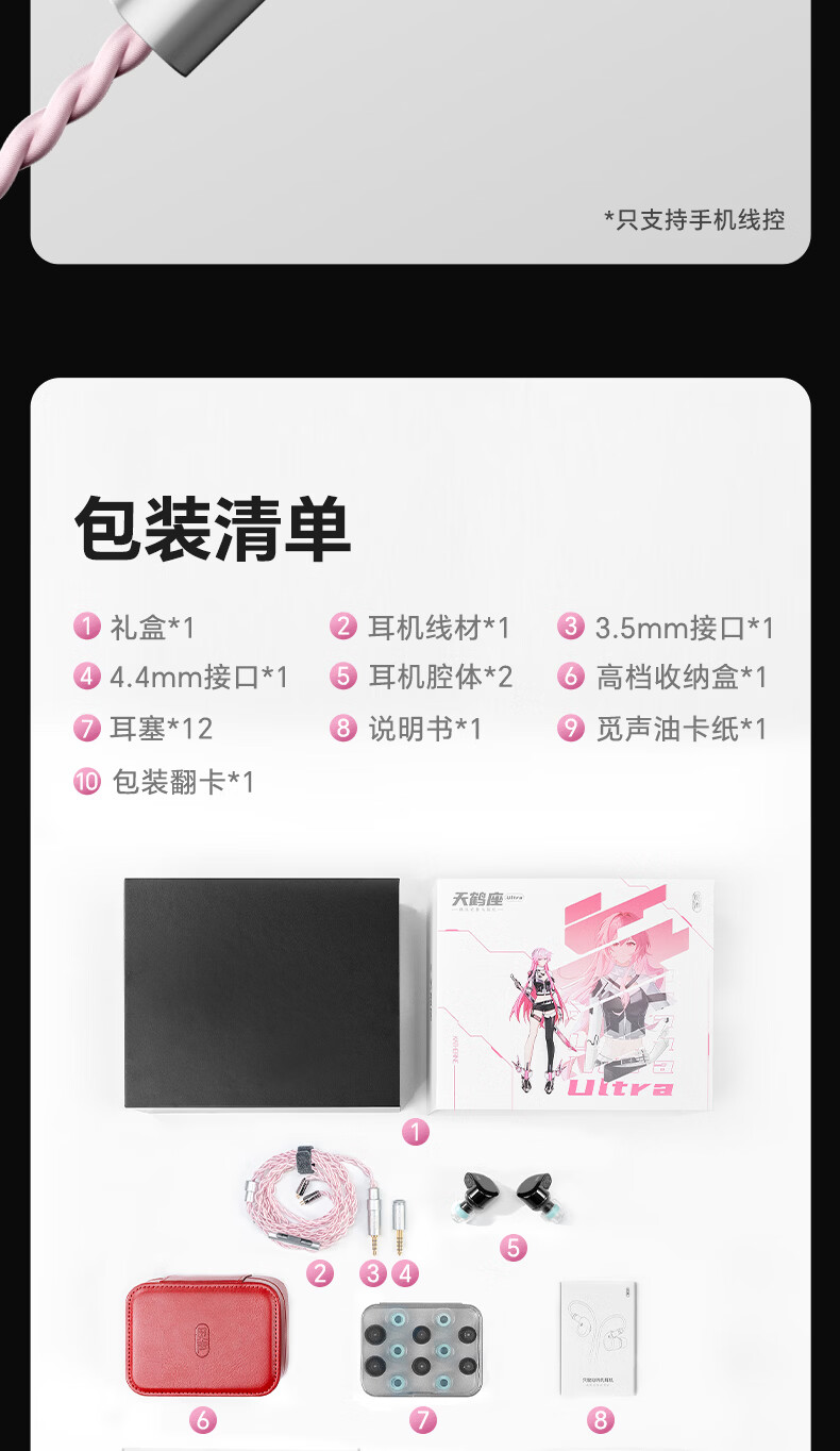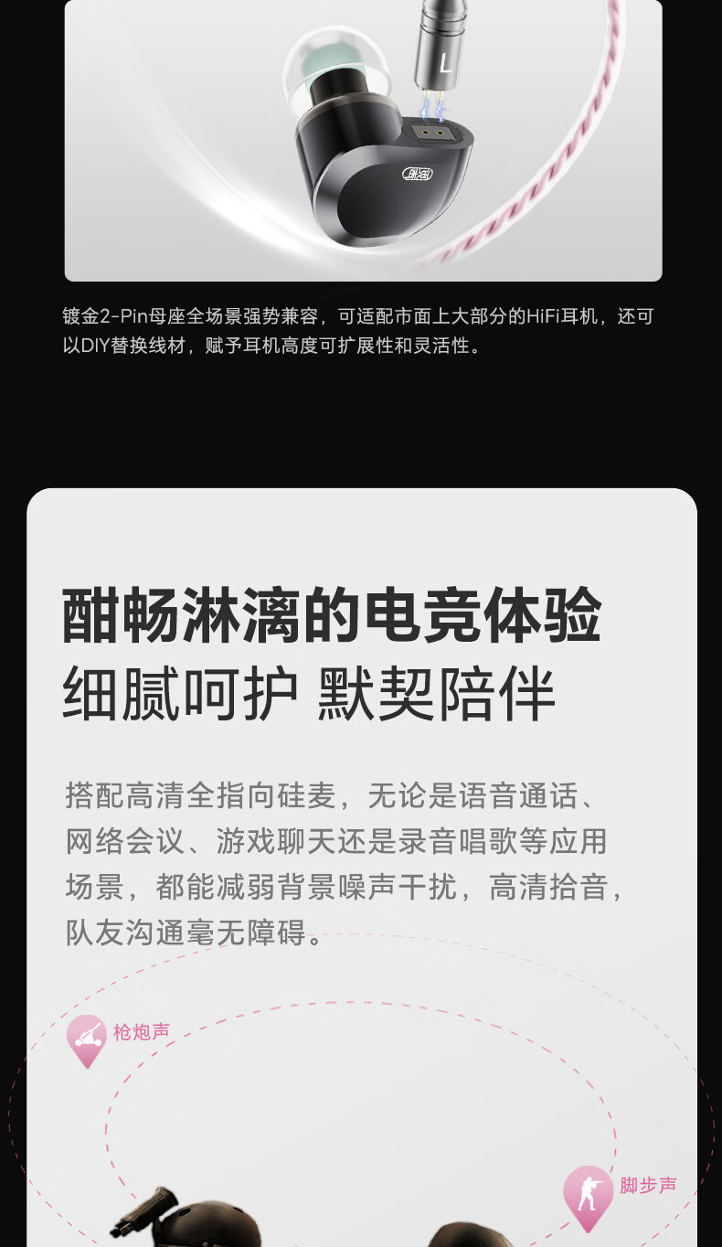 觅声天鹤座ultra入耳式HiFi有线音乐耳机高音质专业听声辨位fps电脑游戏电竞专用三角洲吃鸡耳麦可换线 3.5+4.4mm带麦-赠迷你声卡