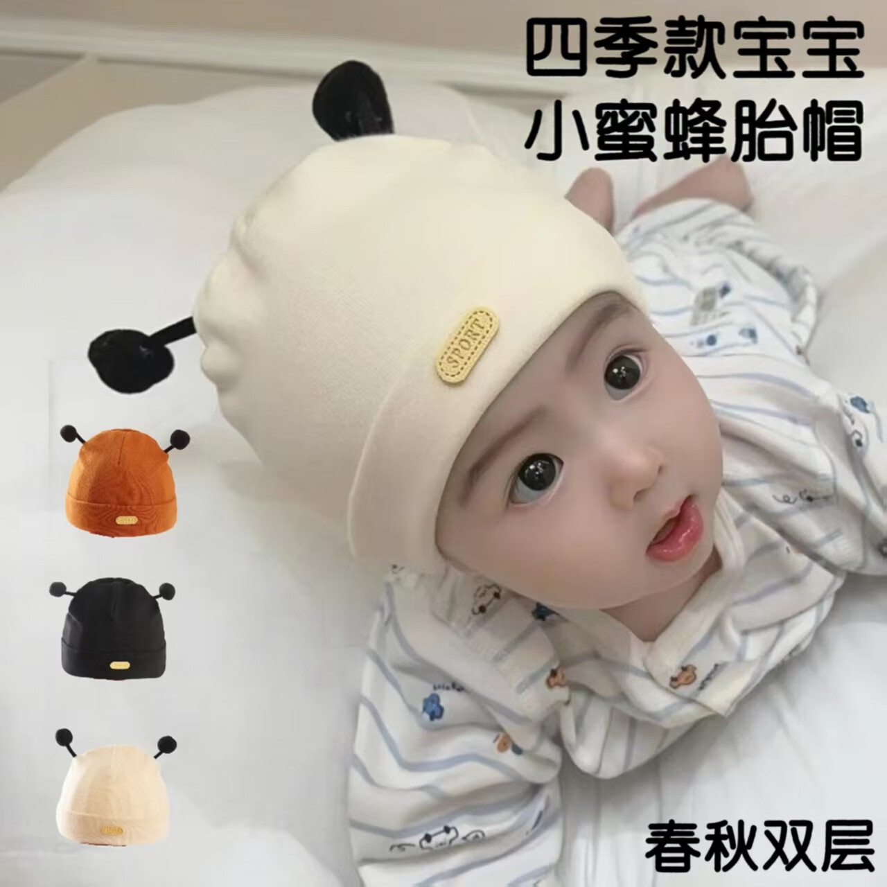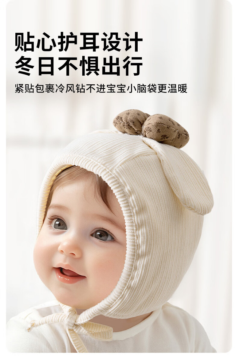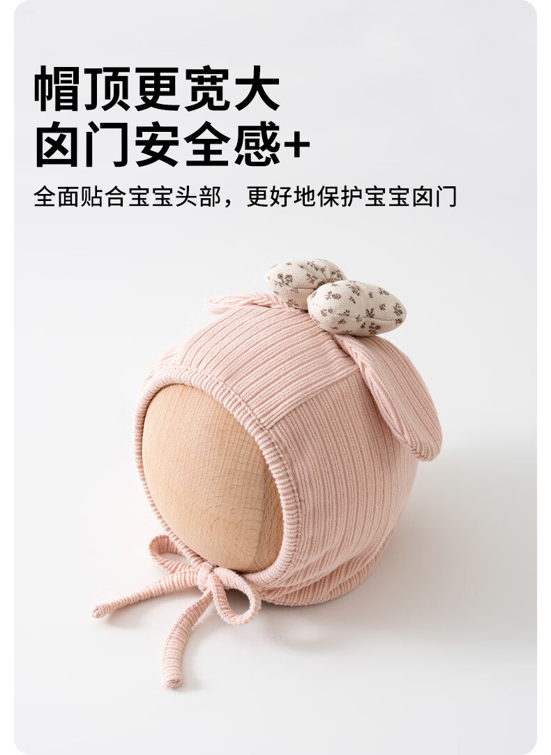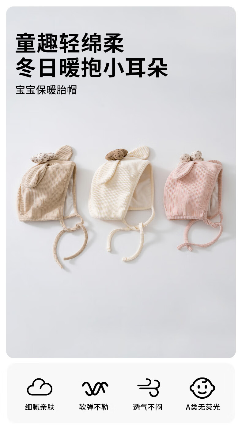 彩虹房子春秋男女宝宝儿童帽胎帽合集 抽条熊兔棉胎帽浅黄色-0-3个月(30-38cm) 四季双层