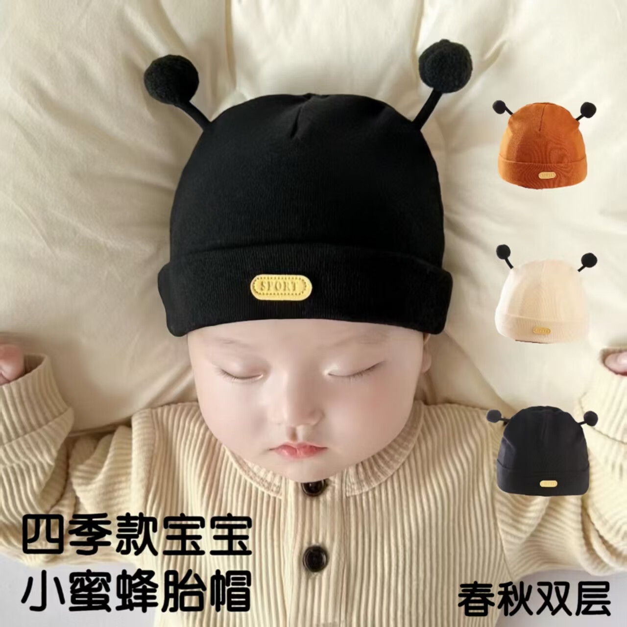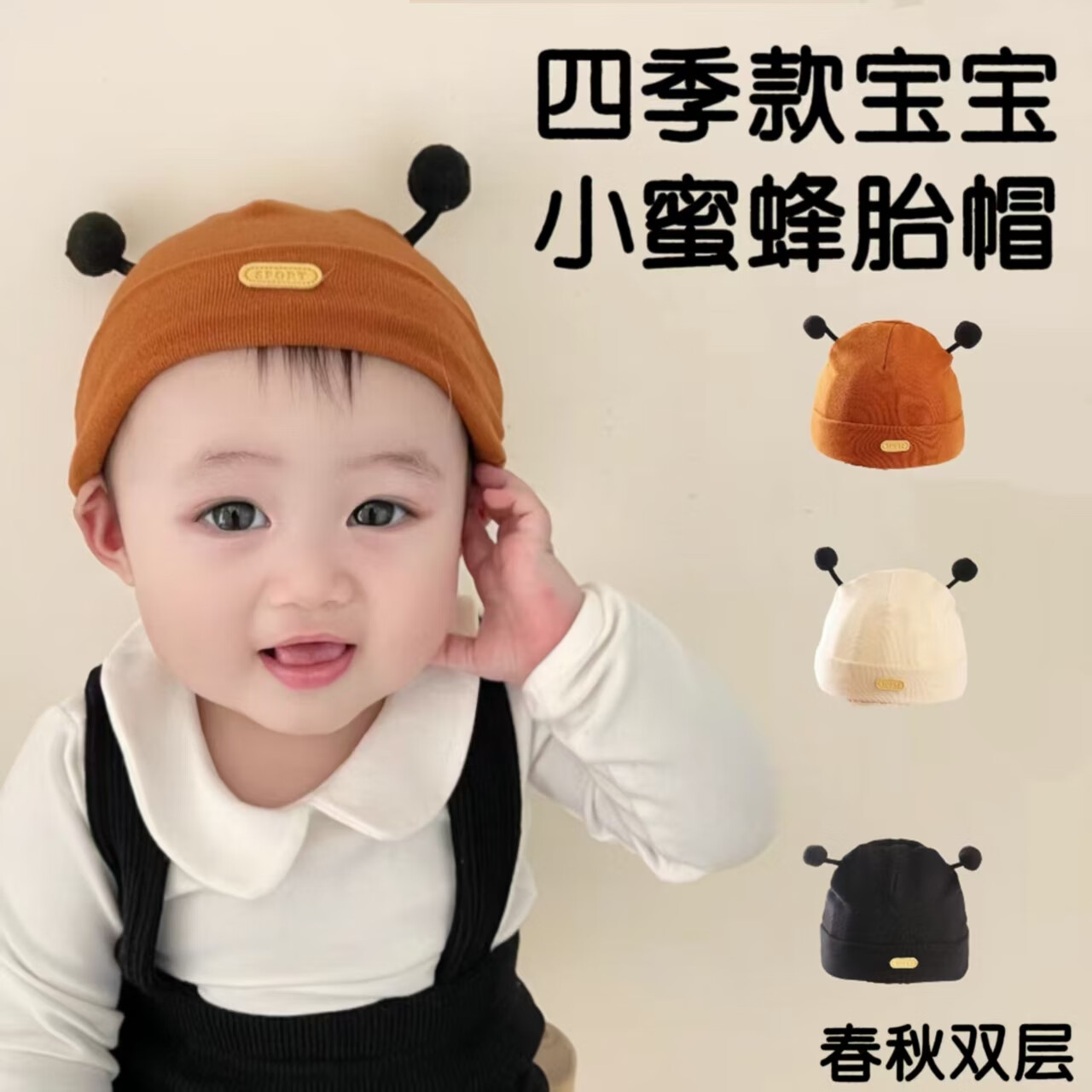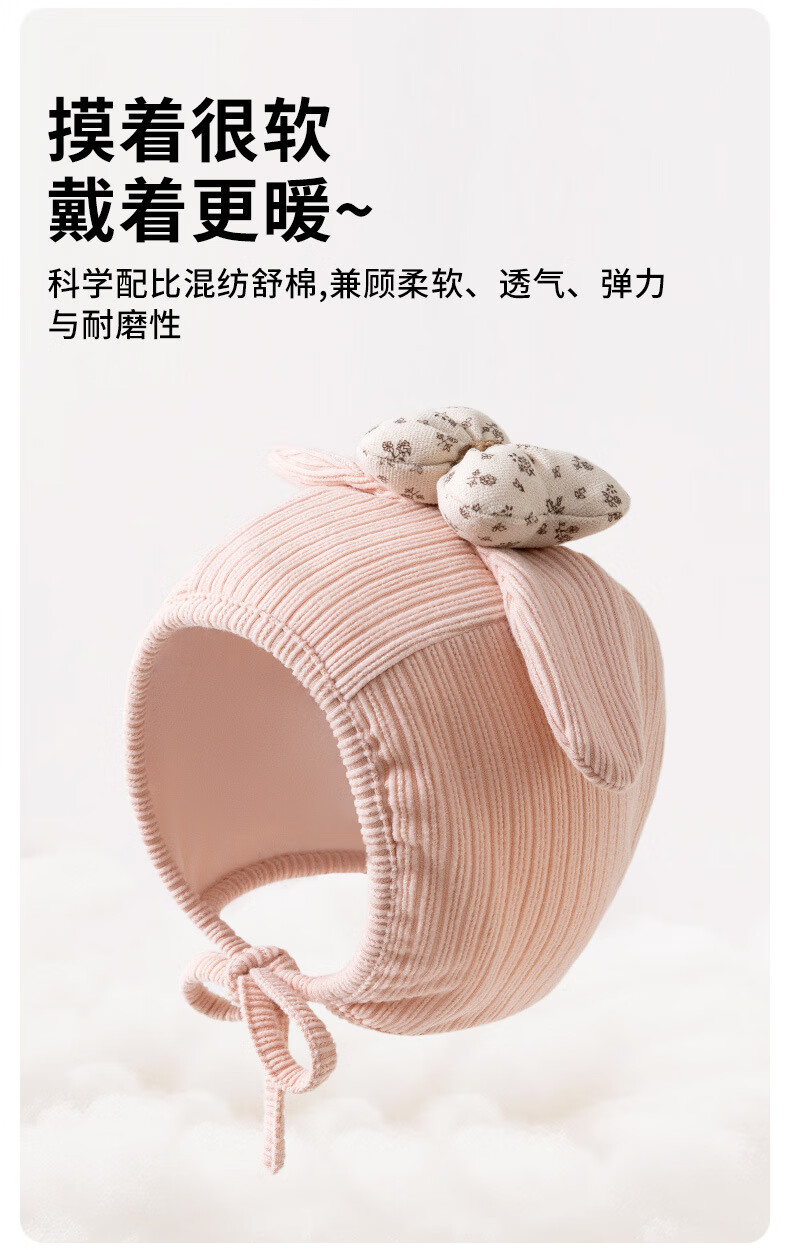 彩虹房子春秋男女宝宝儿童帽胎帽合集 抽条熊兔棉胎帽浅黄色-0-3个月(30-38cm) 四季双层