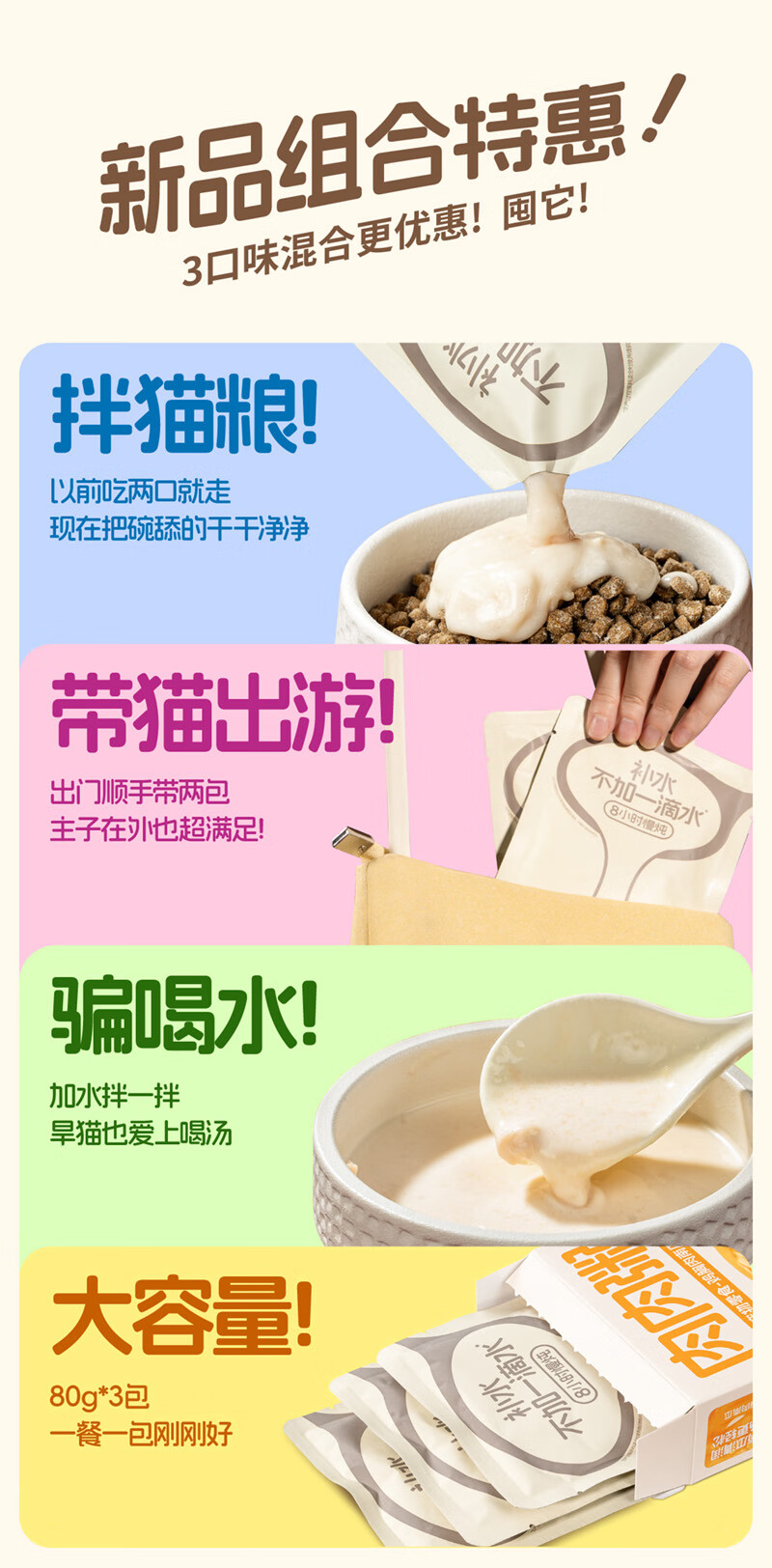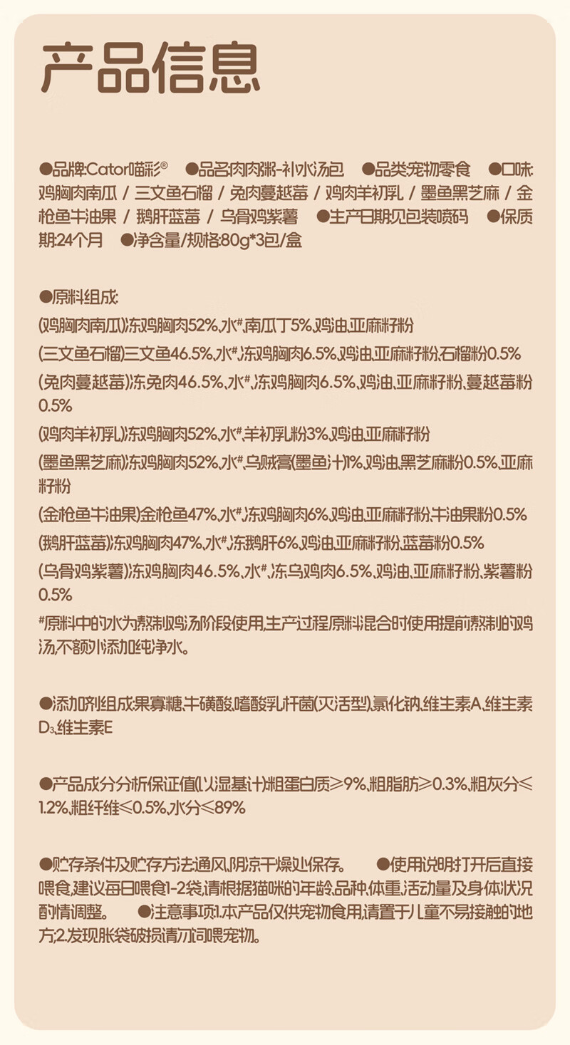 喵彩肉肉粥补水汤包成猫幼猫营养湿粮包浓汤猫零食 兔肉蔓越莓*1盒(80g*3包) 240g