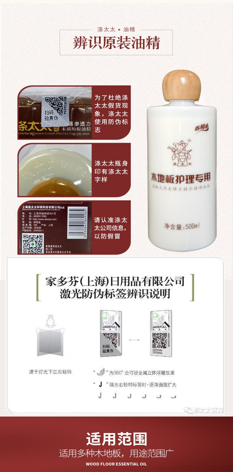 涤太太木地板护理专用油精实木地板精油复合地板液体木蜡抛光油