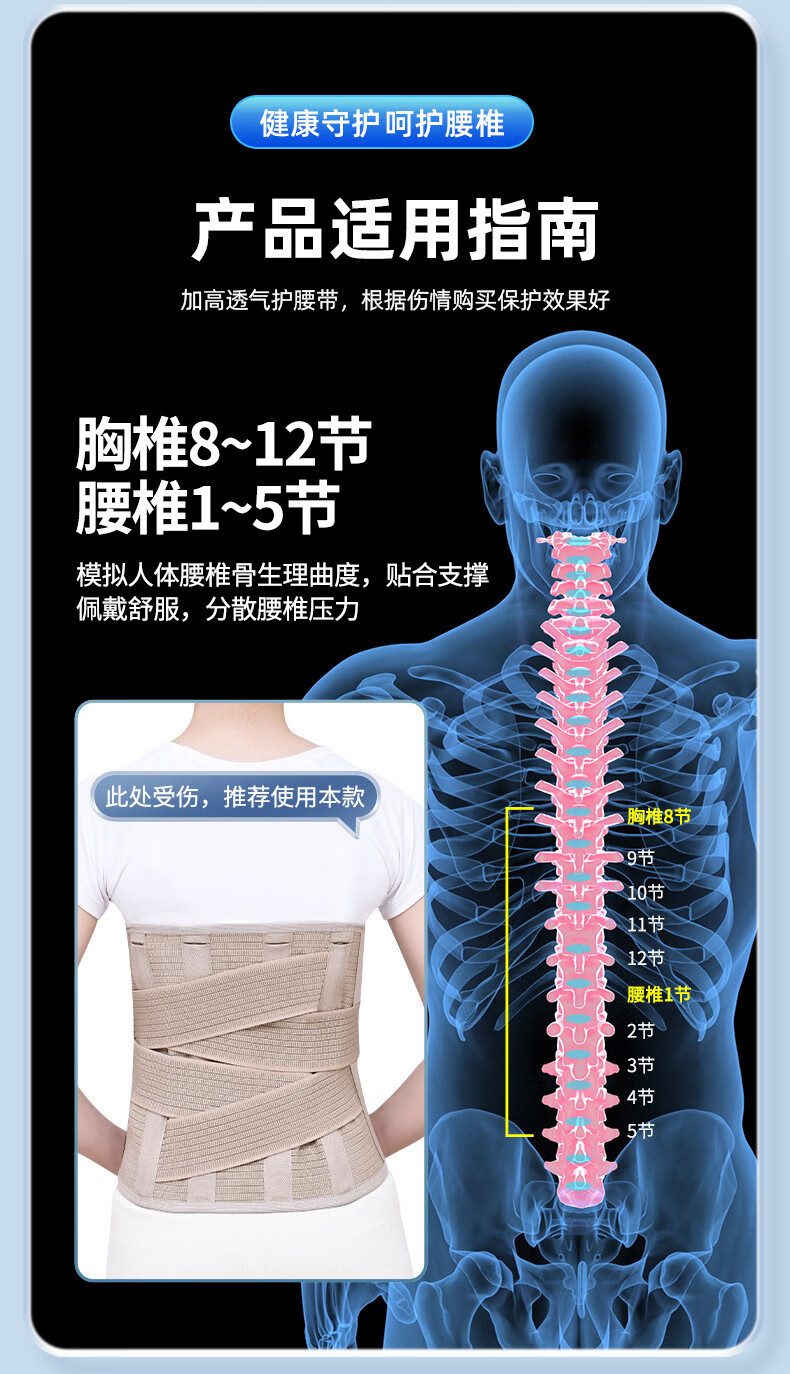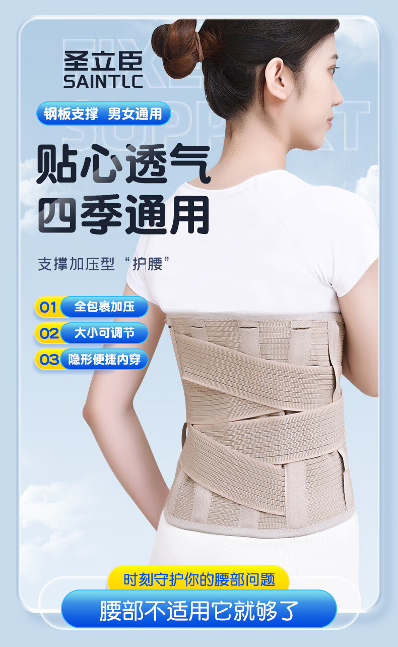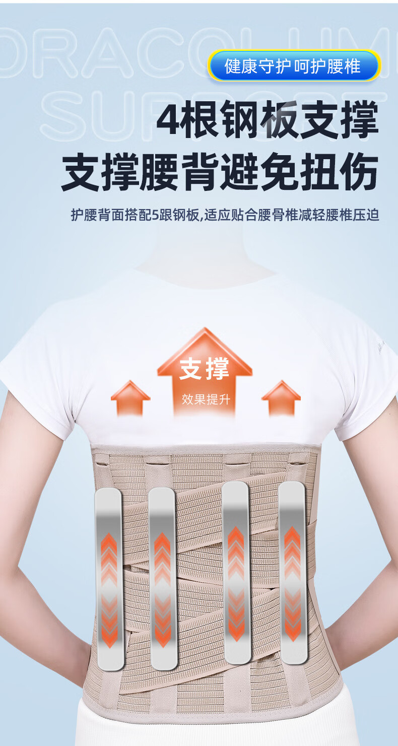圣立臣医用级胸腰椎术后加宽护腰带腰椎骨折腰间盘膨出劳损钢板支撑腰托 【升级款】6根钢板支撑 L(适用体重115-145斤)