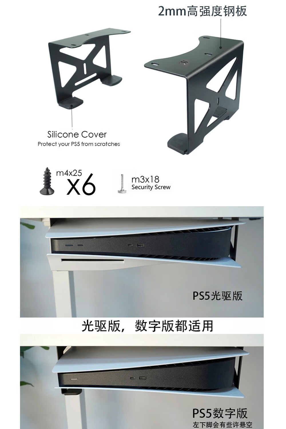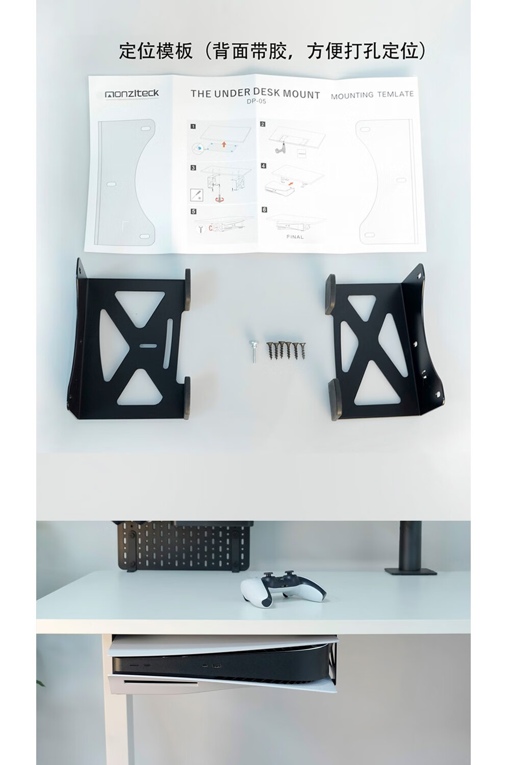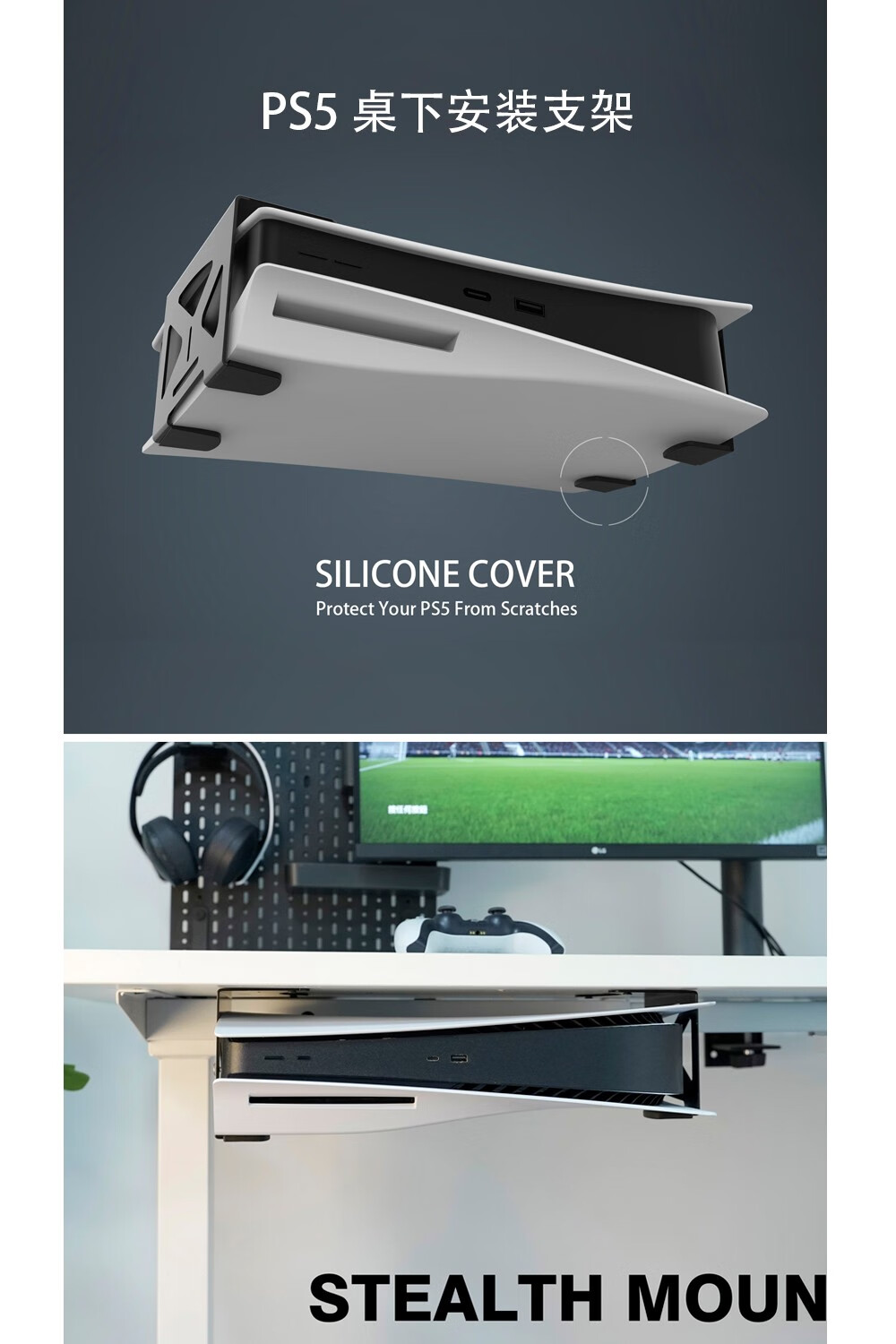 美易支PS5/PS5 Slim桌下金属隐藏式支架光驱版数字版通用模板安装防护脚垫