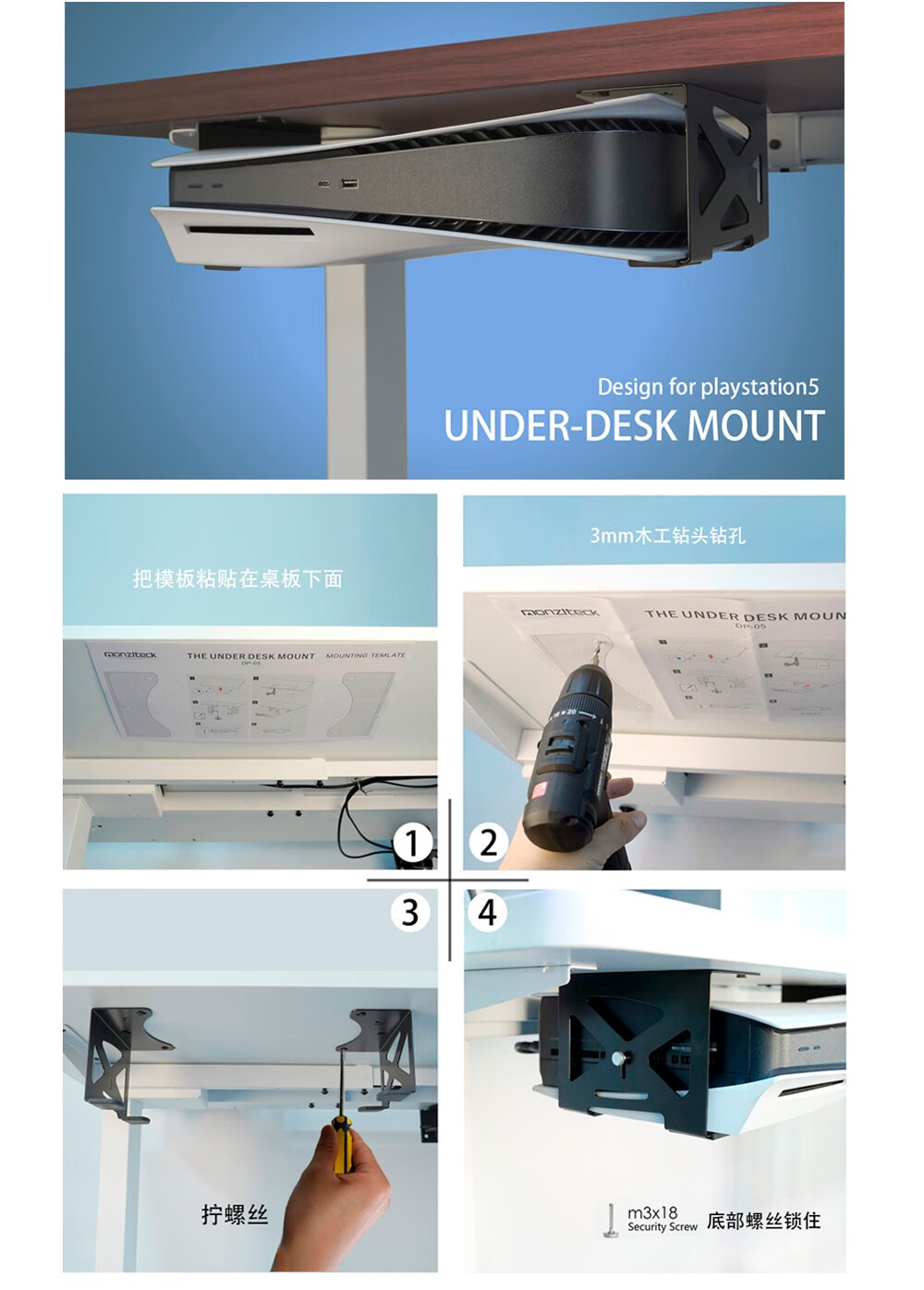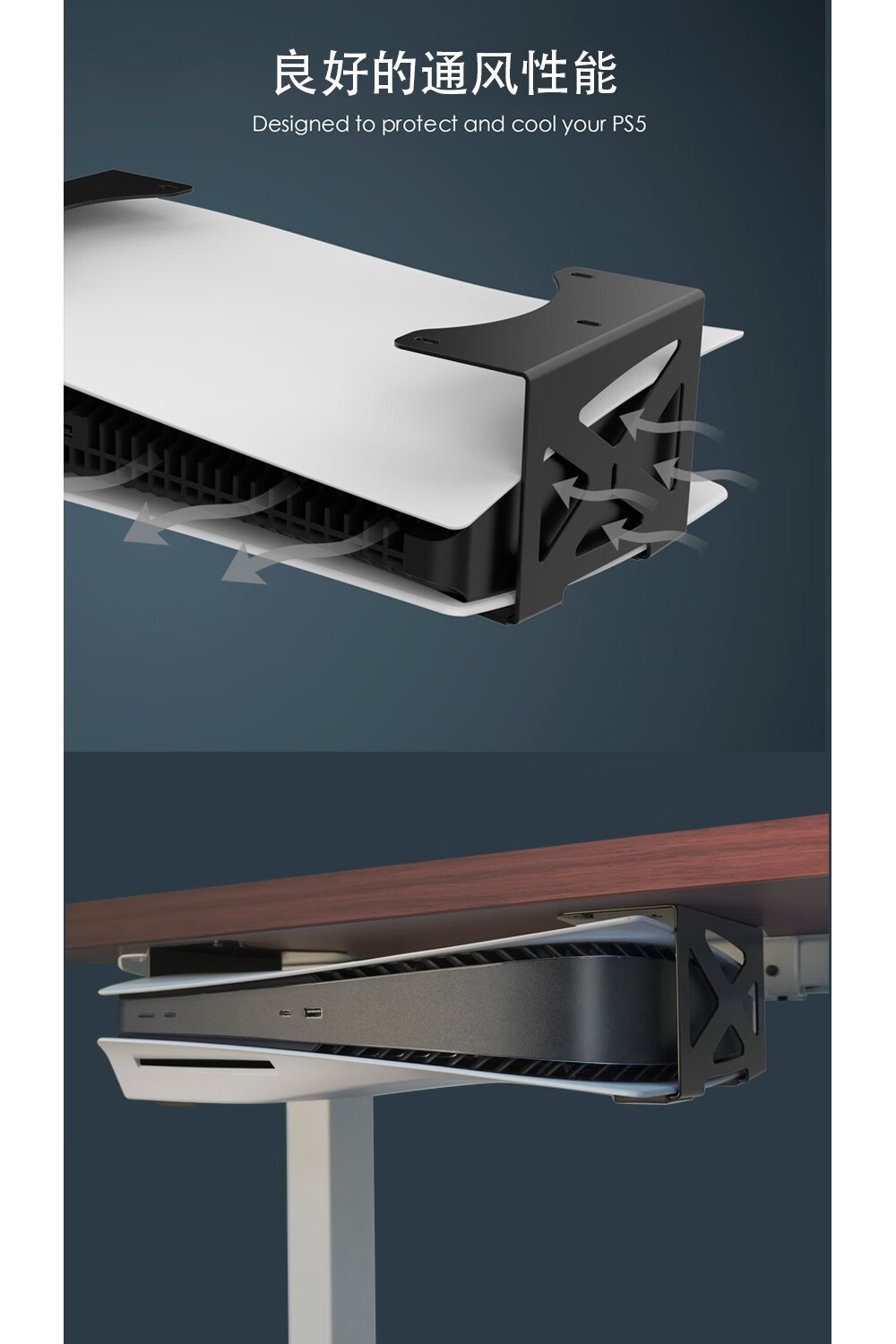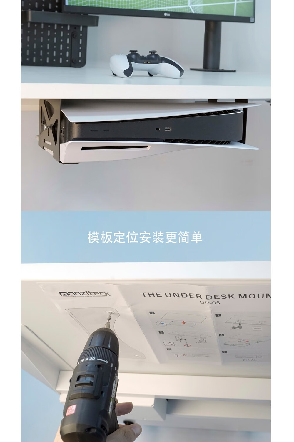 美易支PS5/PS5 Slim桌下金属隐藏式支架光驱版数字版通用模板安装防护脚垫