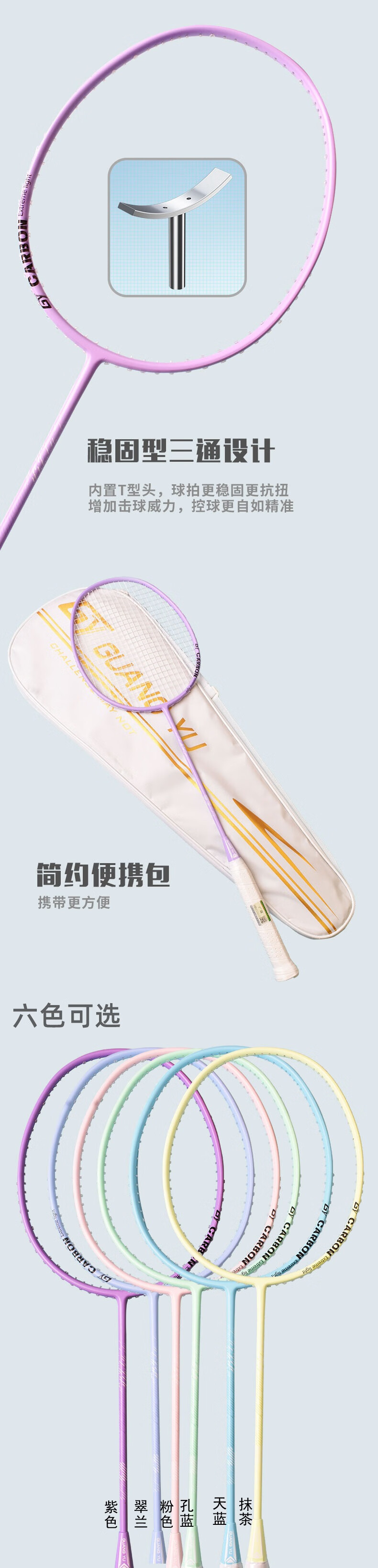 广羽(GuANG yu)均衡之刃羽毛球拍轻量4U大学生专用成人轻量碳素羽毛球拍单拍 4U 淡黄色/1支