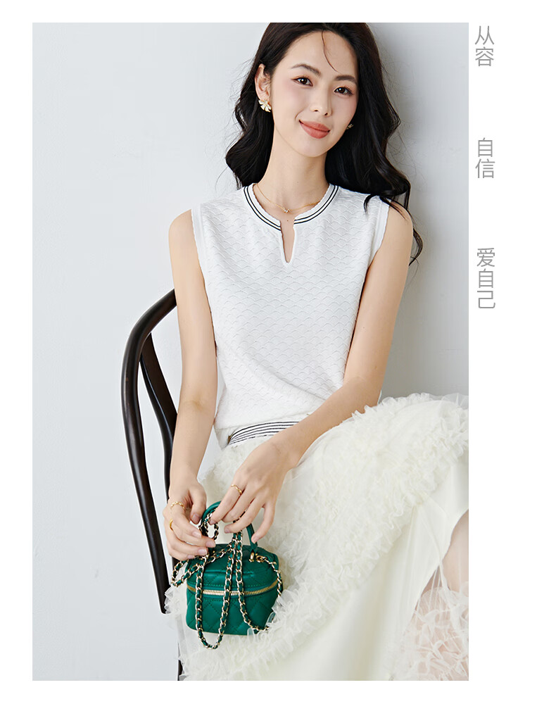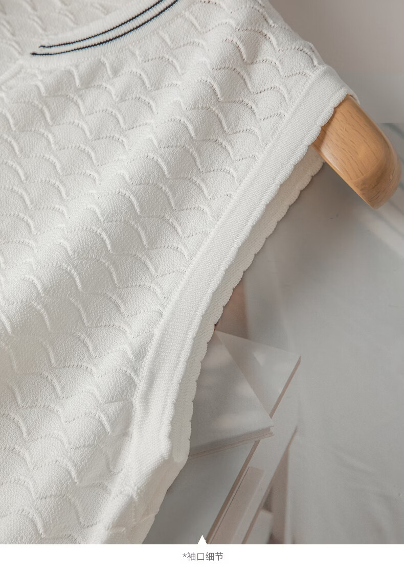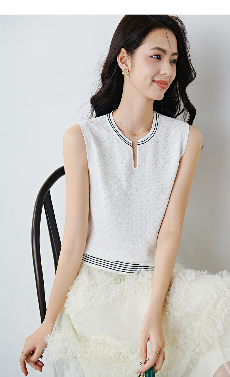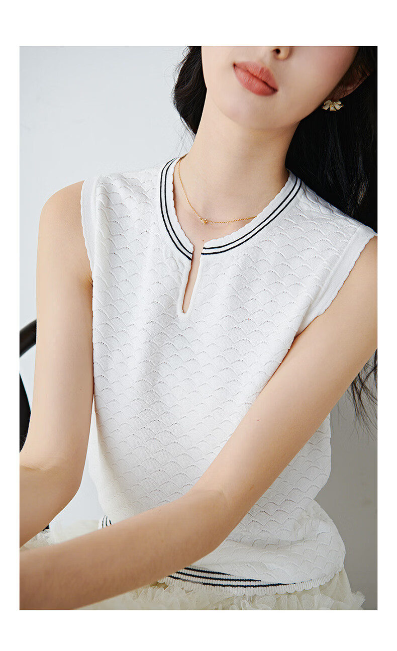 晚白【新品】2026年春款时尚撞色V领无袖上衣舒适内搭外穿针织背心女 米白色 L