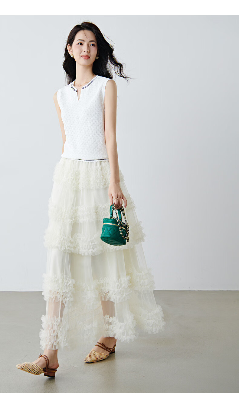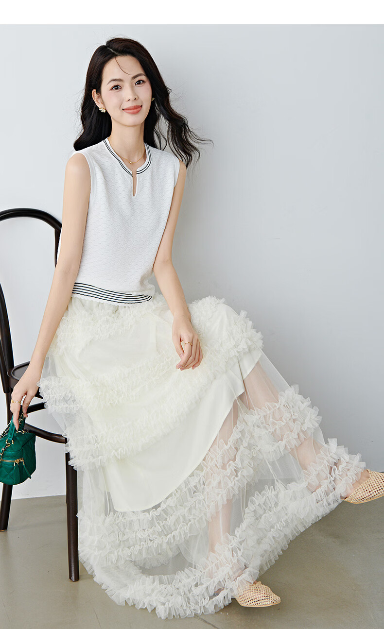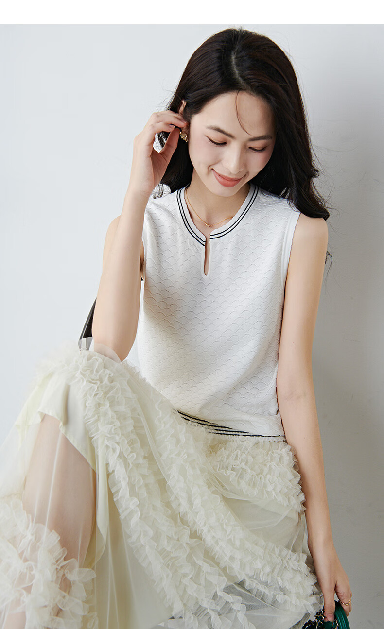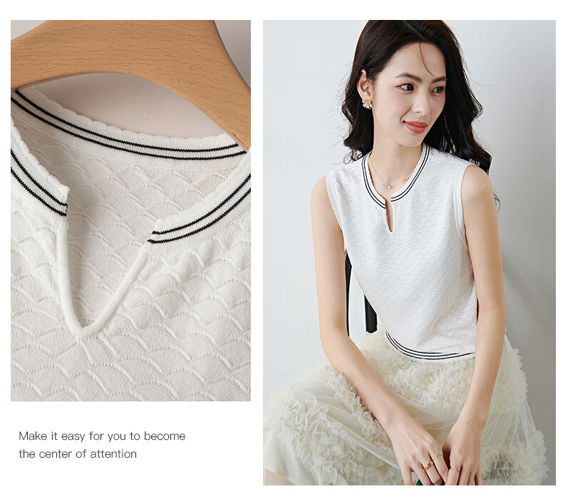 晚白【新品】2026年春款时尚撞色V领无袖上衣舒适内搭外穿针织背心女 米白色 L