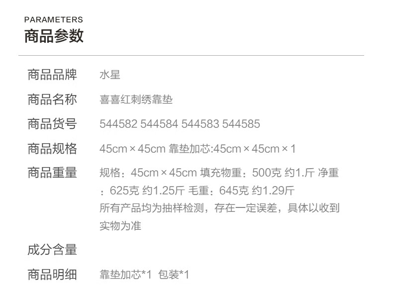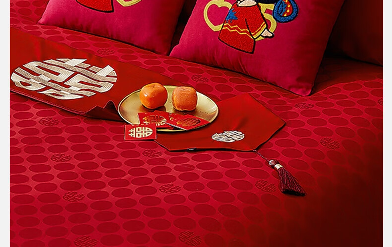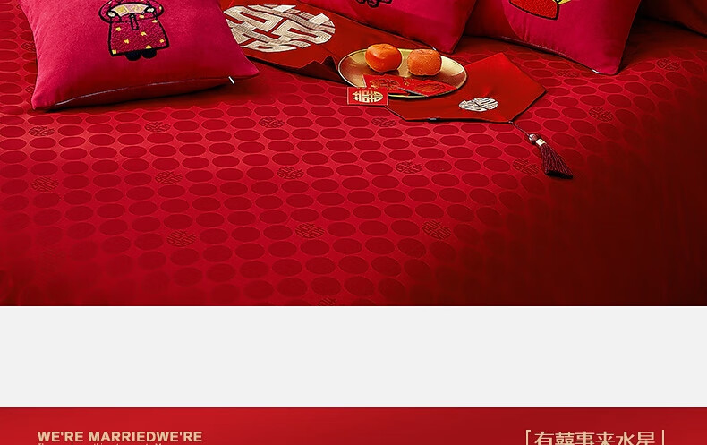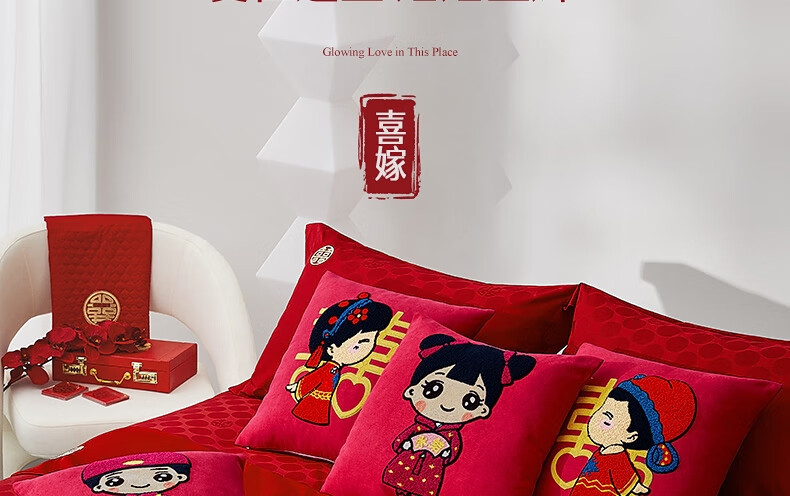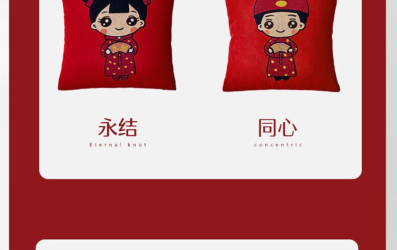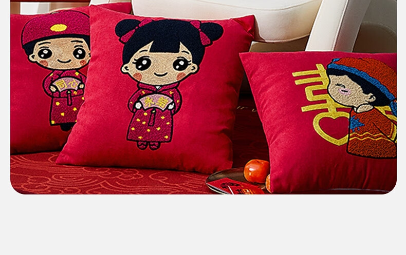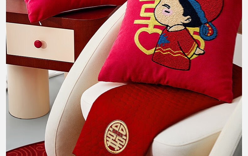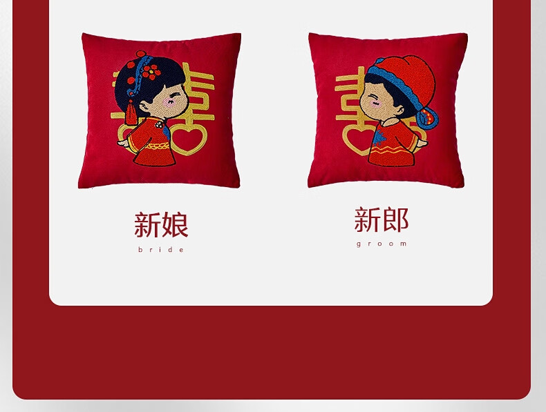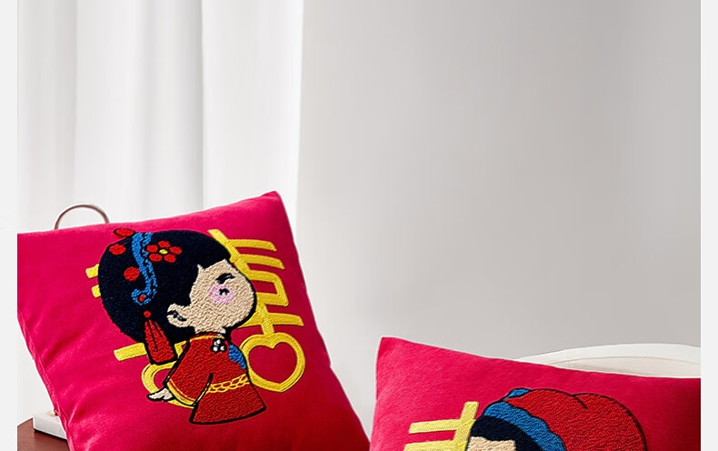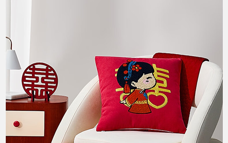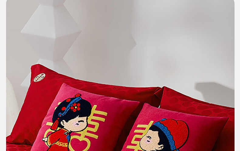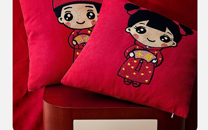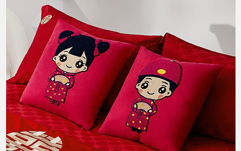 水星家纺结婚抱枕办公室午睡沙发床头卡通靠垫 大红婚庆刺绣靠垫【专享】 婚庆抱枕-刺绣新娘单只45×45cm