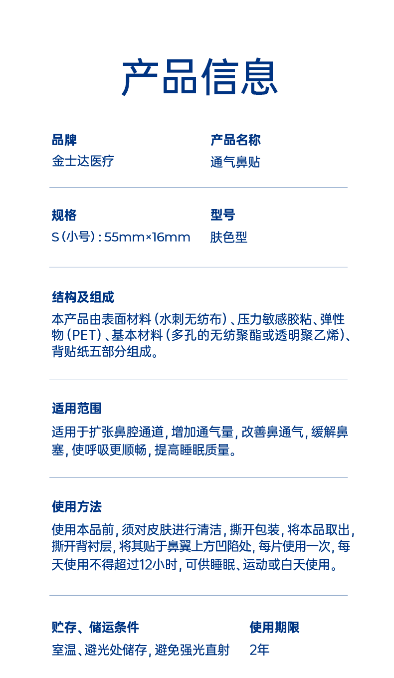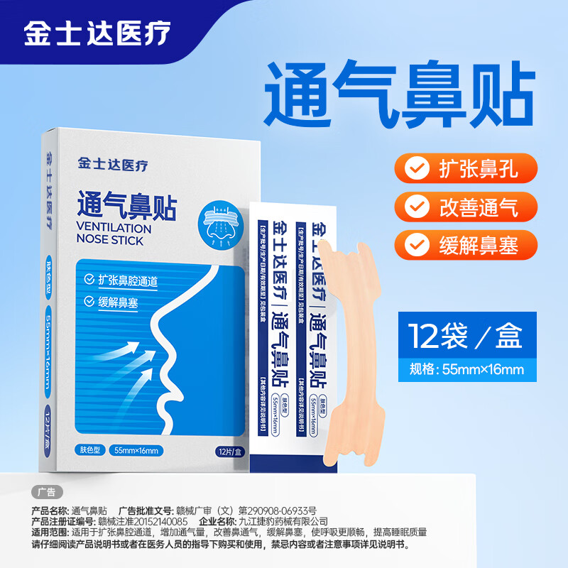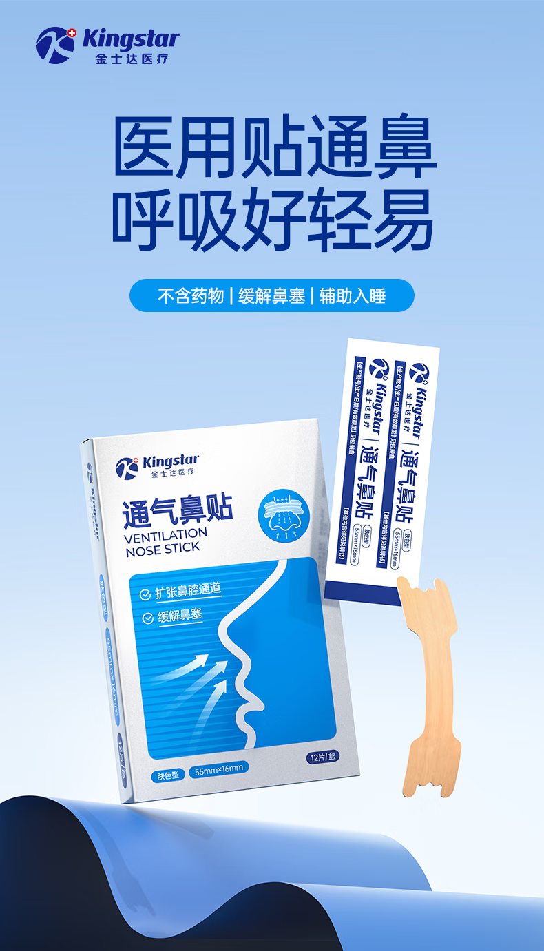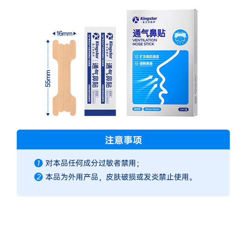 金士达通气鼻贴医用鼻炎贴打呼噜通气止鼾 便携提神 流鼻涕鼻通 通气鼻贴1盒12片