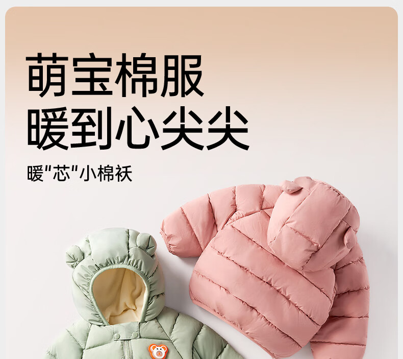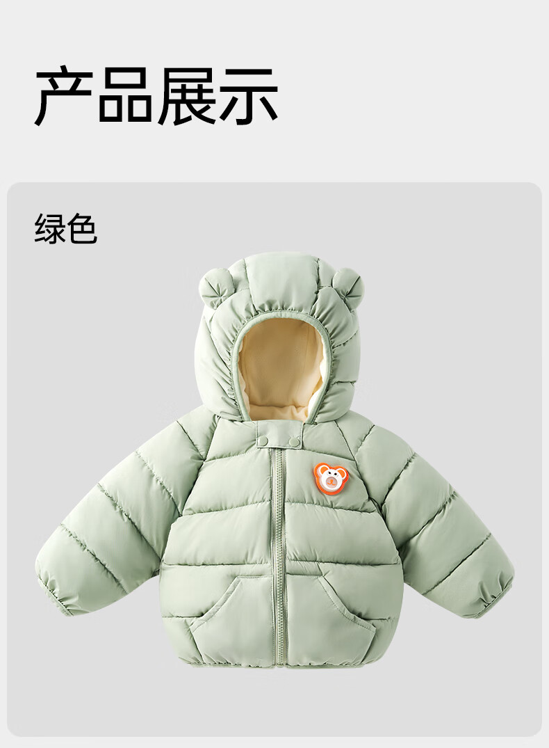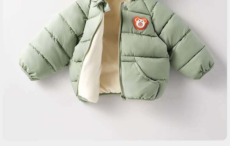 欧孕(OUYUN)宝宝棉服2025新款冬季儿童加绒加厚夹棉保暖棉袄男童女童棉衣外套 绿色 90 cm