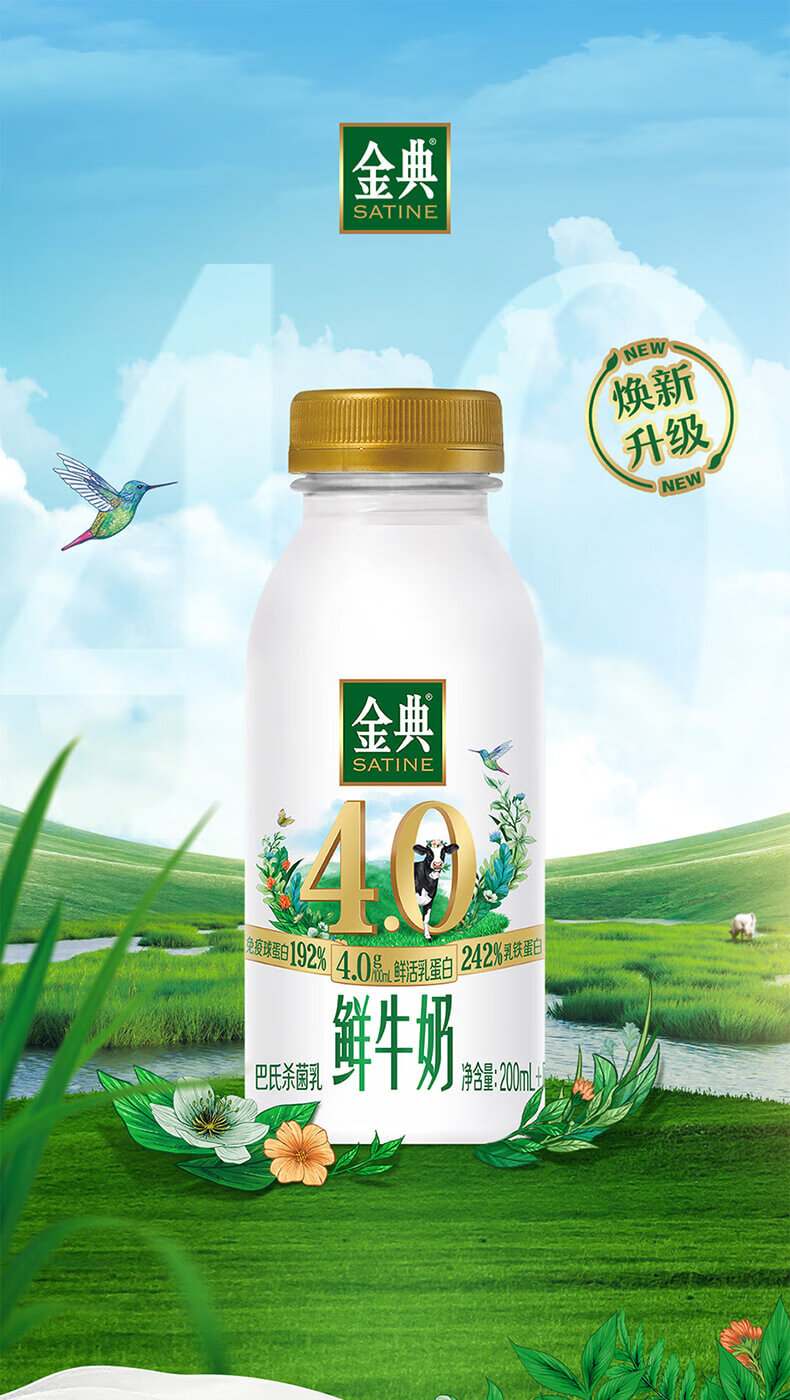 伊利金典鲜牛奶4.0g鲜活乳蛋白235ml*4瓶定制装巴氏杀菌低温鲜牛奶