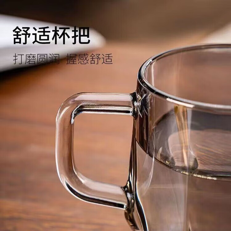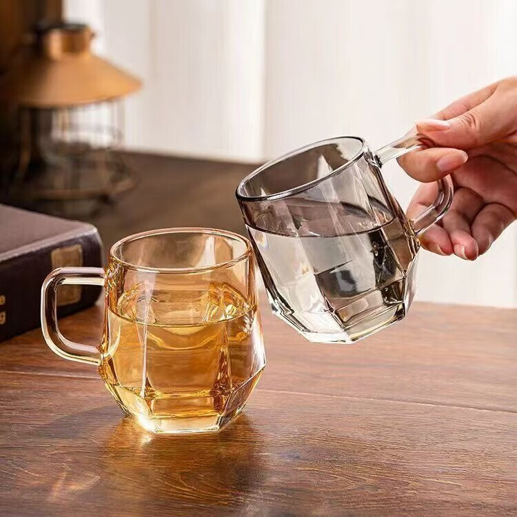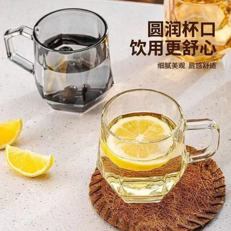 简漾钻石玻璃杯把手客厅喝水水杯牛奶家用饮料创意杯子咖啡杯果汁轻奢 透明六角把杯 两只装