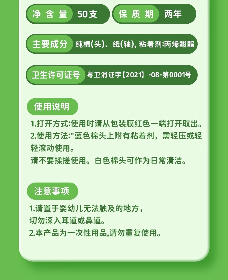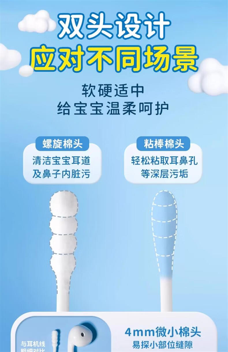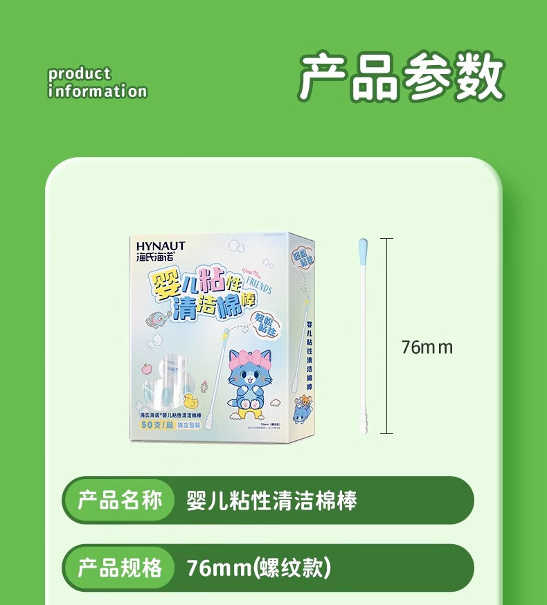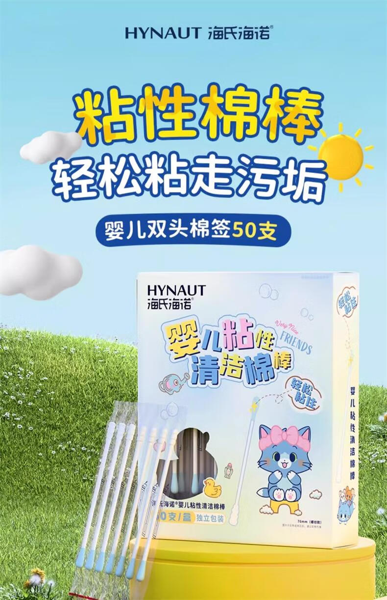 海氏海诺婴儿粘性清洁棉签粘耳棒儿童粘性掏耳勺掏耳朵神器50支*2盒100支