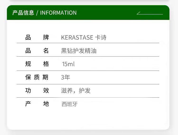 卡诗(KERASTASE)新黑钻钥源香氛护发油持久留香滋养柔顺亮泽15ml 【临期清仓】