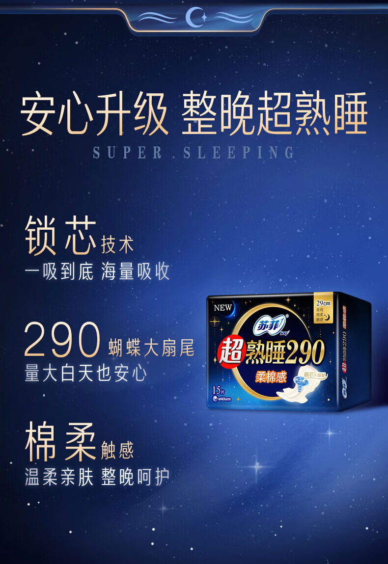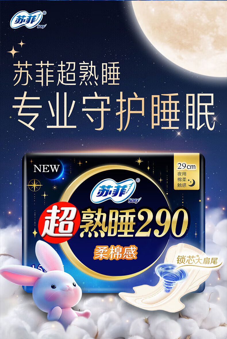 苏菲卫生巾夜用290mm姨妈巾量大加长量多整箱套装批发 日夜组合47片+裸感 250mm 2片