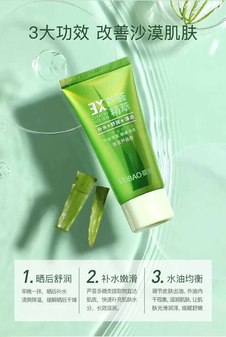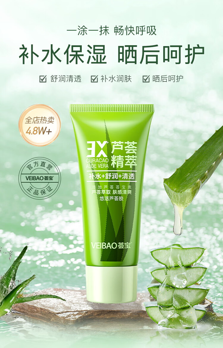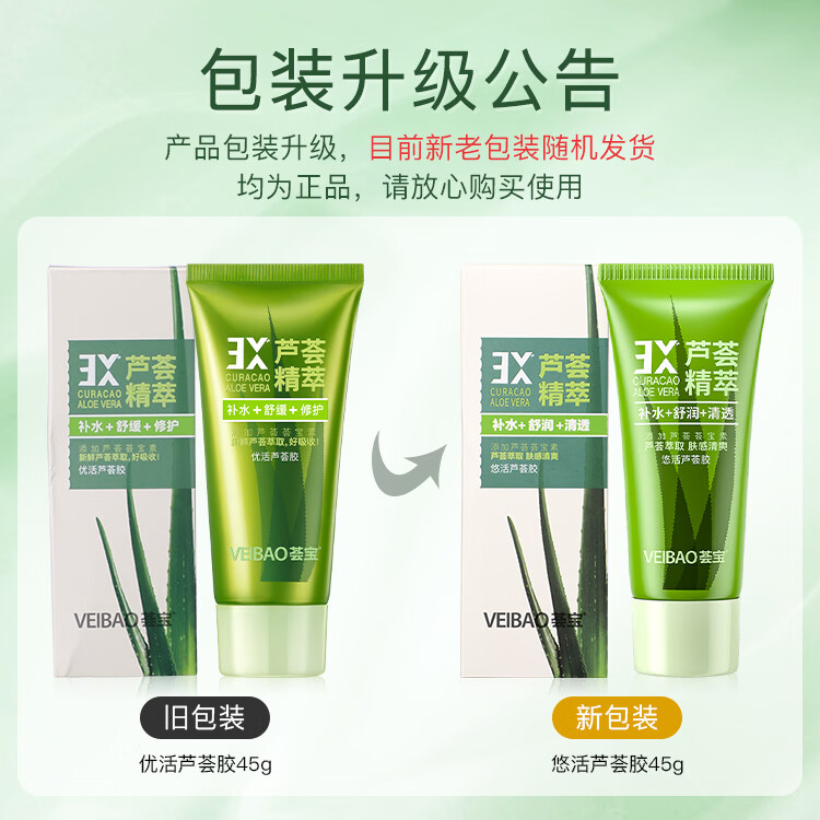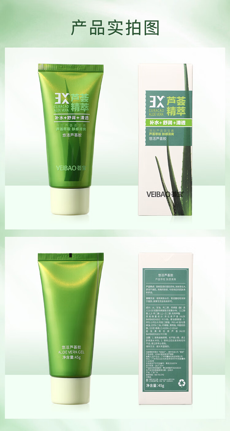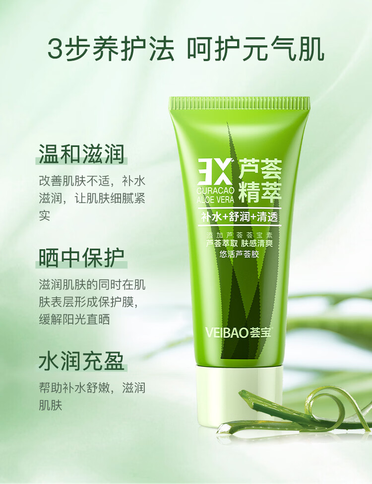 荟宝官方悠活芦荟凝胶保湿补水芦荟胶男女换季敏感晒后护理面部护肤 3支装(划算价)