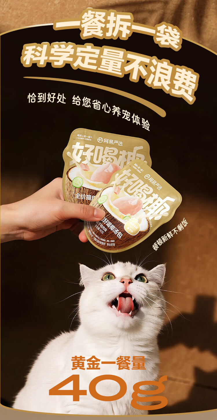网易严选全价主食汤包猫粮伴侣零食补水餐盒湿 主食汤包 猫用椰汤包 全价猫用好喝椰汤包 40g*1袋